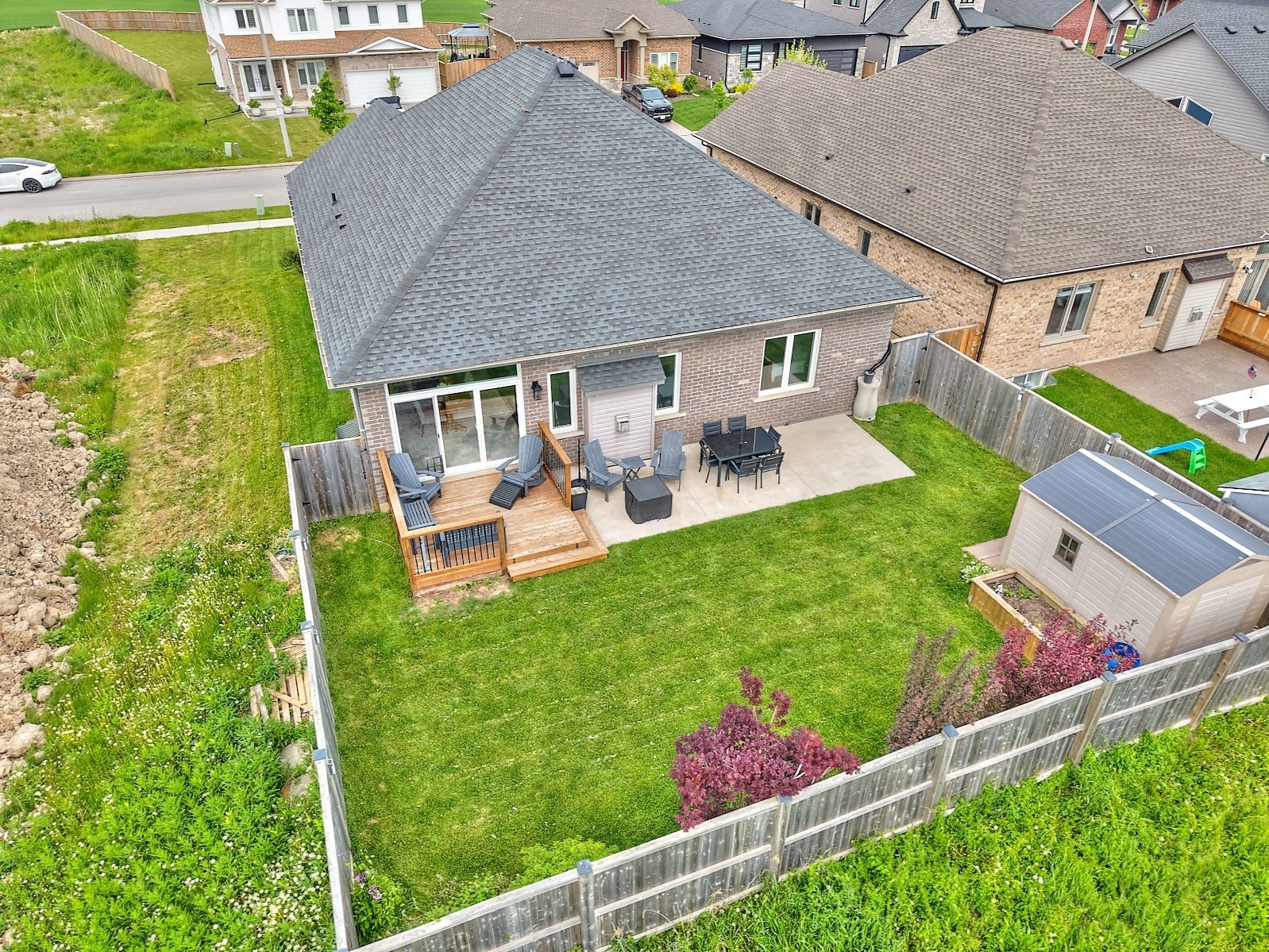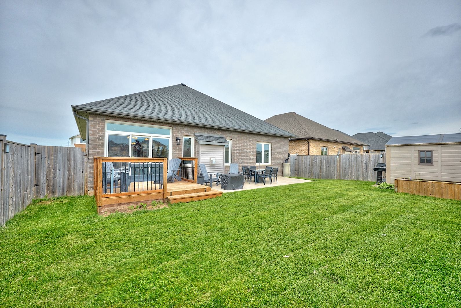 As delightful as its name, 5 cinnamon street is sure to be the bungalow of your dreams! Built by reputable marken homes in 2018 and located in beautiful rolling meadows, this property is definitely going to impress. Situated on a desirable lot with a 51-foot frontage and equipped with five bedrooms and three full washrooms, there is little left to be desired here. From the moment you step in, take note of the layout that flows seamlessly, making you feel right at home. To the right of the entrance is where you will find the home's first bedroom and full bath - the ideal positioning for guests or working from home. The main living space is open concept and filled with natural light. Blending the living, dining and kitchen into one central area, this is truly the heart of the home and the space where many cherished family memories will be made. Featuring a stunning vaulted ceiling, gas fireplace and gorgeous selections, this space has wow-factor written all over it! Sliding glass doors off the dining room lead to a fully fenced backyard where a deck and adjacent patio create the perfect little escape for sunny brunches or quiet evenings under the stars. The oversized windows throughout the home keep the feeling bright and airy throughout. Tucked around the corner from the main living area is the laundry room that provides direct access to the garage, making everyday chores feel easy. Two additional bedrooms, including the primary suite round off the main level of this home. Complete with a large walk-in closet and a spa-like ensuite, the primary retreat is sure to please the most discerning of buyers. Downstairs, the finished basement adds ample additional finished living space with two bedrooms, a substantial recreation room that currently doubles as a home gym and chill zone, along with a cute little hobby corner or reading nook. Additionally, there is unfinished storage space - the perfect balance for families on the go. Come see what all the fuss is about!