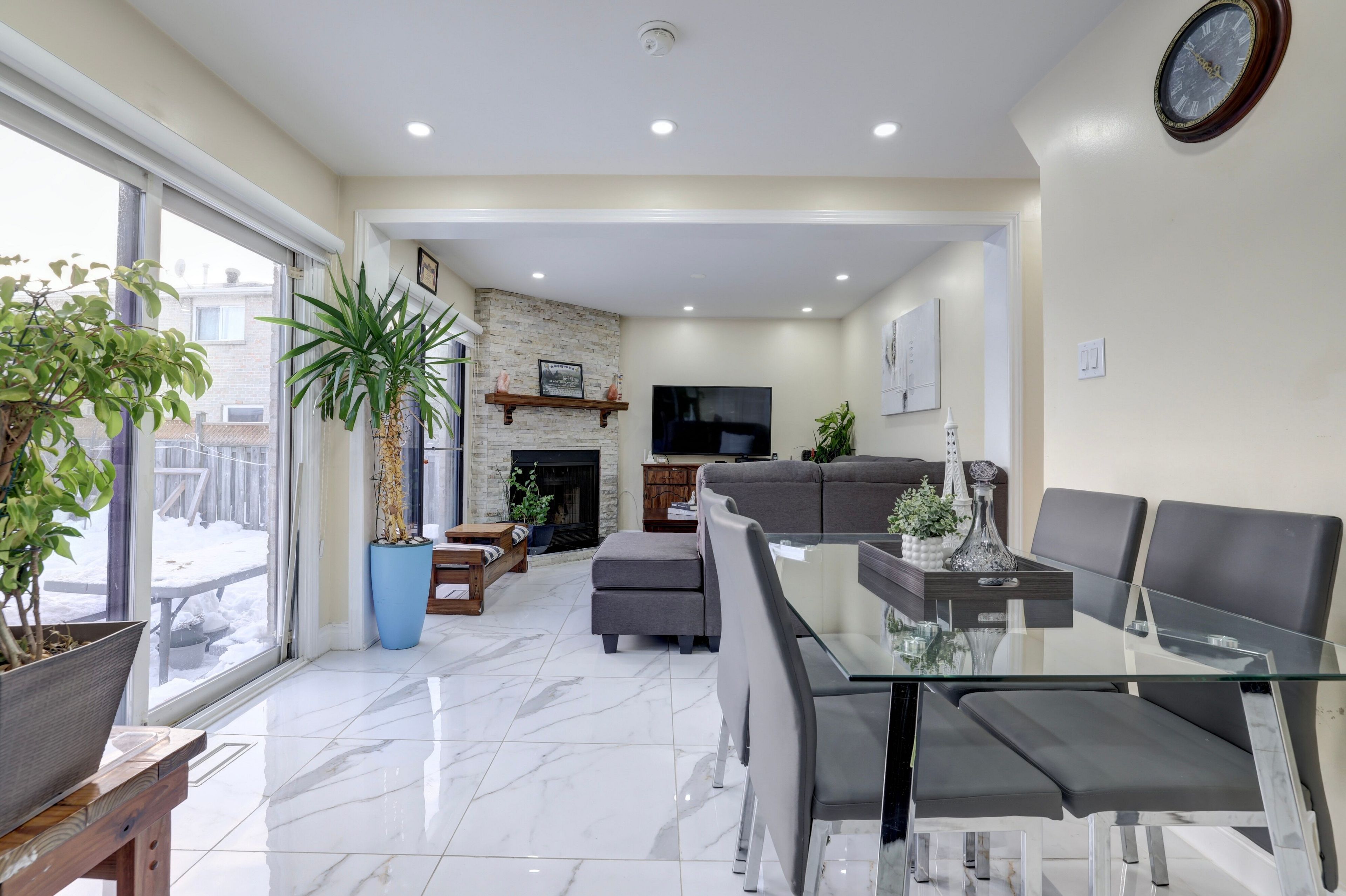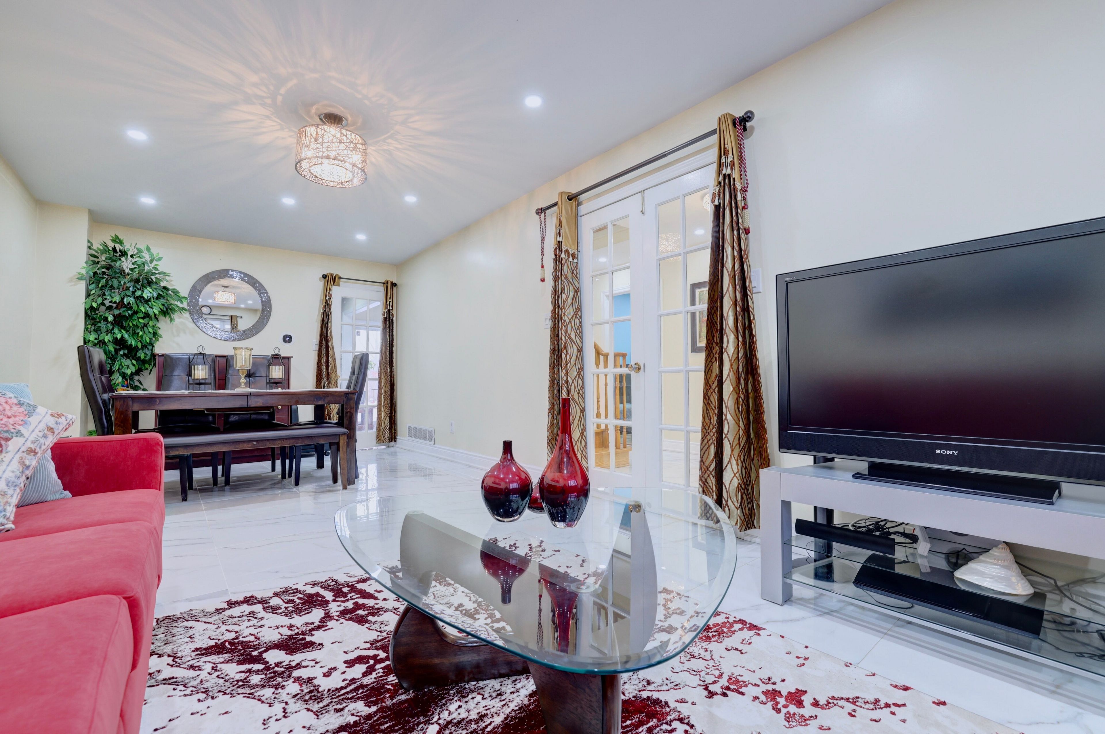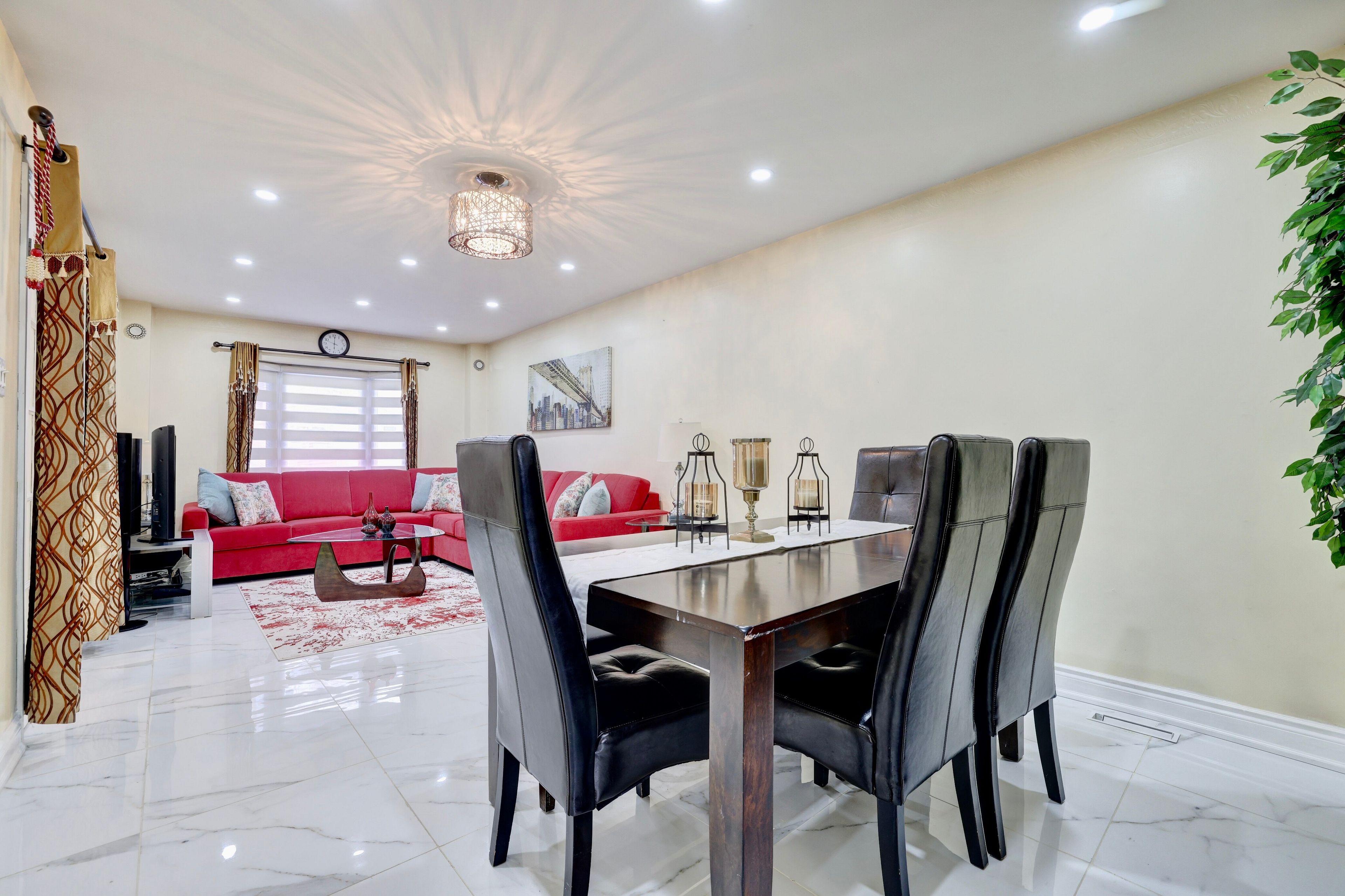 • Large living and dining areas are bright and inviting with natural light.