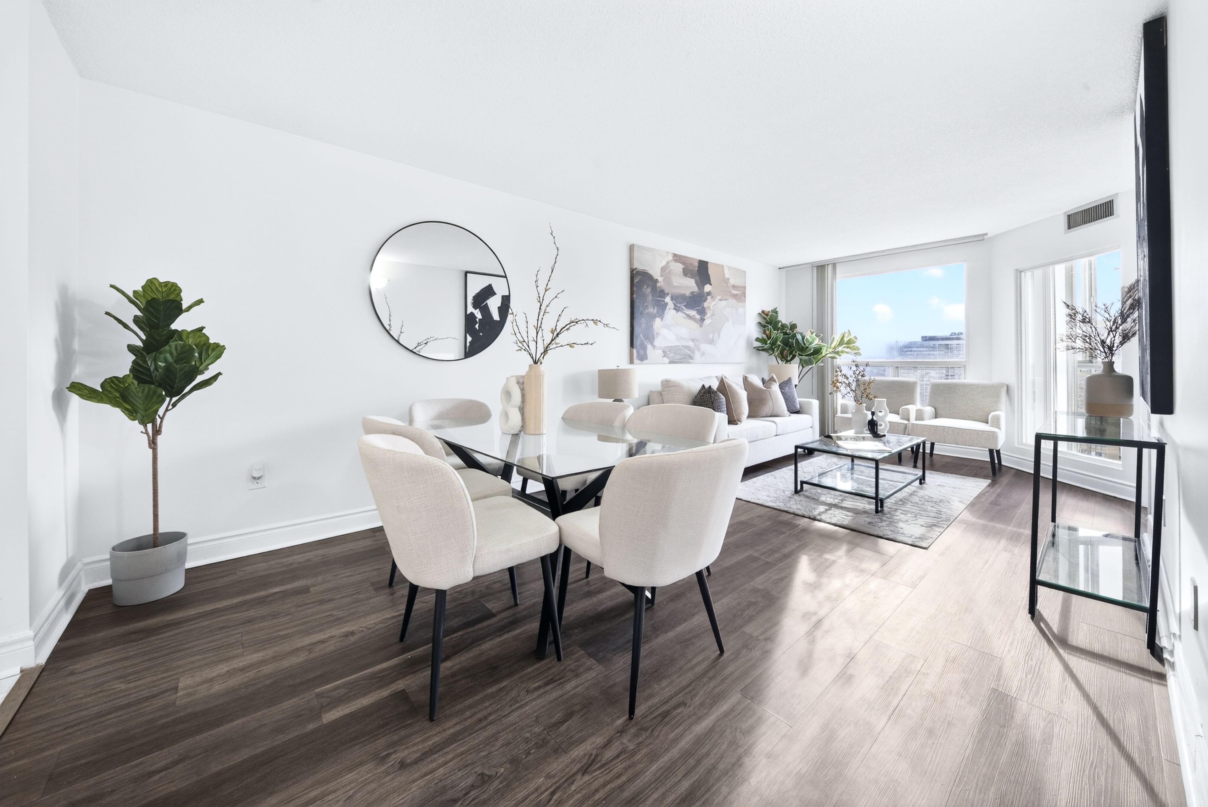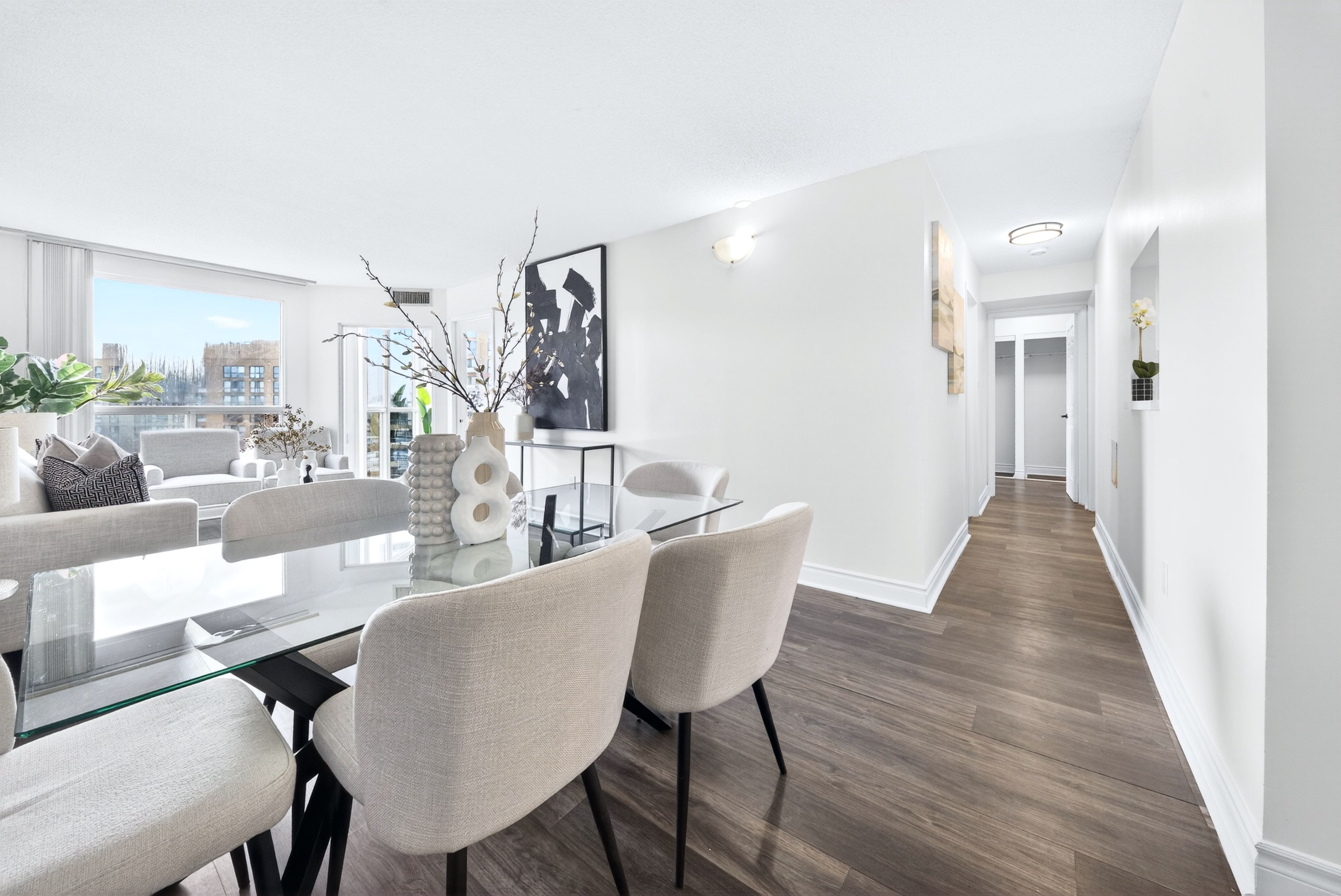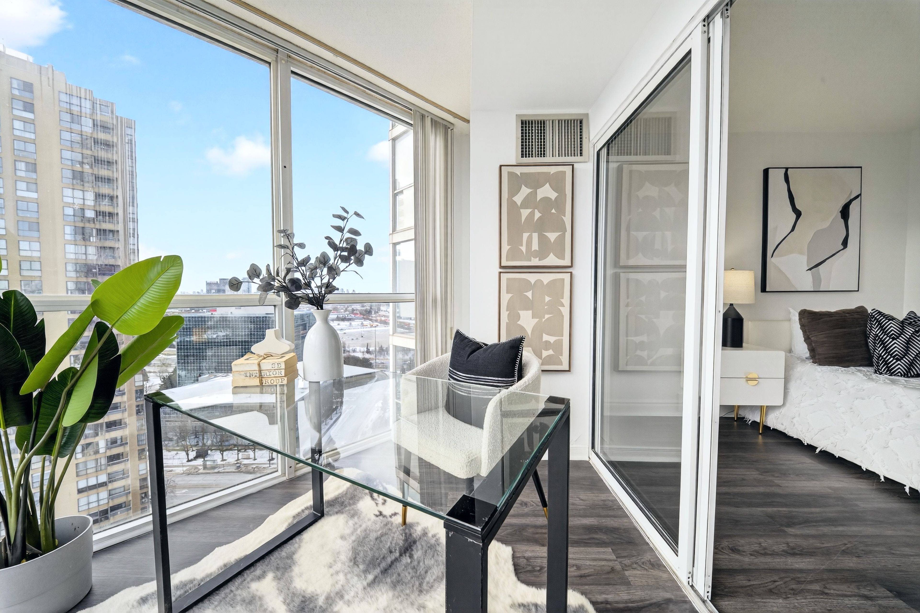 Experience elevated living in unit 2002 at 5 concorde place, a high-floor residence offering beautiful skyline views and an abundance of natural light. This well-maintained suite features a thoughtfully designed layout with spacious principal rooms, a generous living and dining area ideal for entertaining, and expansive windows that showcase the cityscape. The separate, newly updated kitchen features modern cabinetry and ample counter space, combining functionality with refined style. A sun-filled den with stunning skyline views provides the perfect space for a home office, study area, or a peaceful retreat. The newly renovated bathroom adds a contemporary touch. The bedroom(s) offer a serene escape, while the solarium and den is ideal for unwinding and enjoying panoramic city views. Includes one parking space for added convenience. This elegant suite blends comfort and versatility-ideal for discerning end-users or investors. The building has recently refreshed its corridors with modern carpet and elegant wallpaper, creating a sleek, upscale feel and is just minutes to parks, aga khan museum, easy access to downtown toronto, ttc and lrt stations, shops at don mills, dvp, and flemingdon park golf course, etc. Residents enjoy first-class amenities including 24-hour concierge resort-style amenities which include a gym and pool, hot tub, dry and steam saunas, tennis and squash courts, video room, library, pool tables, table tennis, darts, guest suites, plenty of underground visitor parking, and scenic biking and walking trails. This bright, spacious, move-in-ready suite offers comfort, lifestyle, and unbeatable value. Come see it today before it's gone!