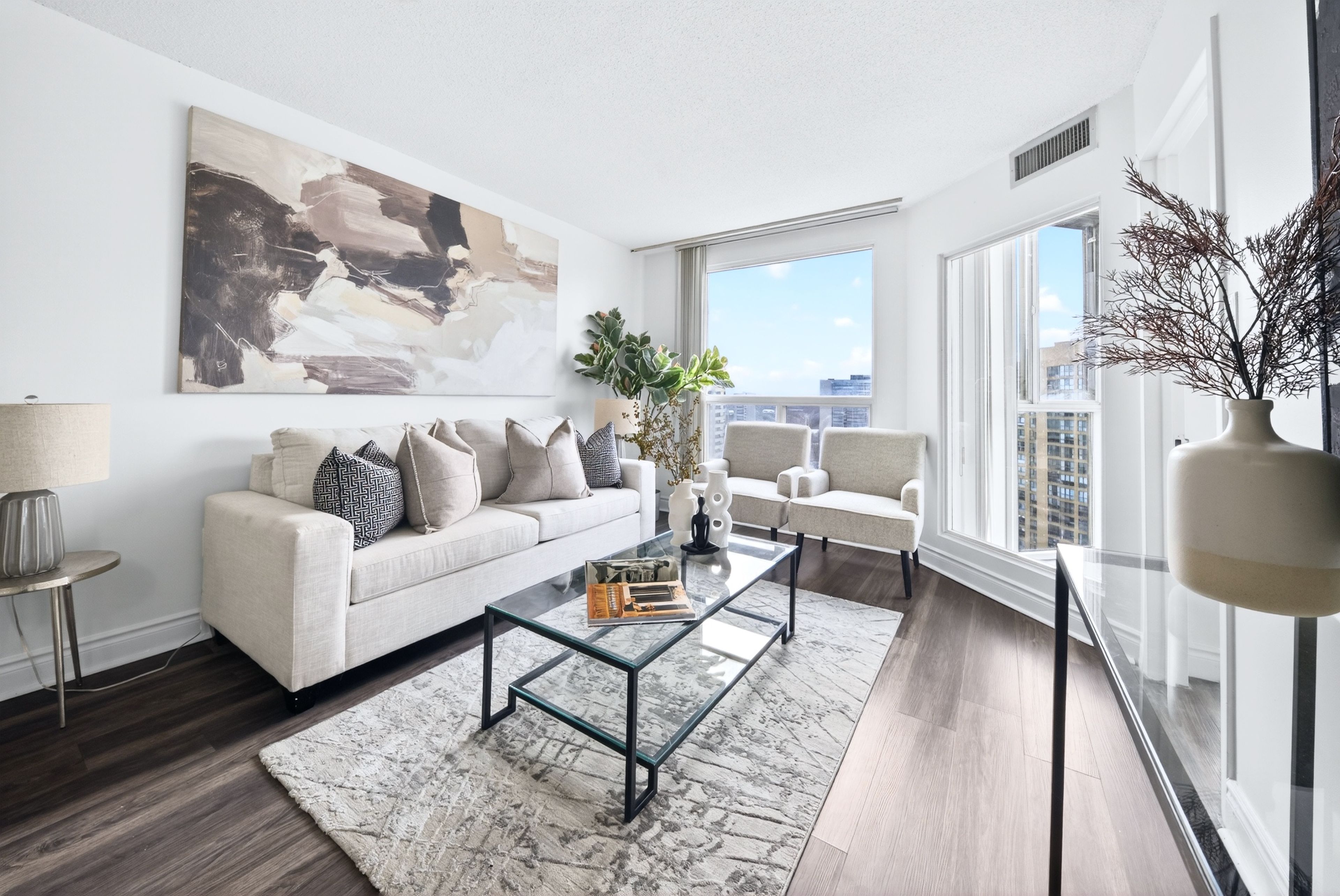 • High-floor unit with stunning skyline views and plenty of natural light.