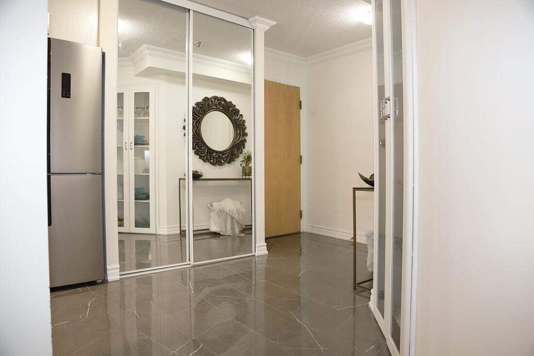 Nestled within the highly coveted bandbury area of toronto, this 2-bedroom, 2-bathroom condo epitomizes elegance and modern living. Immaculately maintained, this spacious unit boasts a plethora of upgrades that are sure to captivate any discerning buyer. Upon entry, you'regreeted by a stunning modern kitchen that serves as the heart of the home. Adorned with sleek quartz countertops and a stylish backsplash,this culinary haven is as functional as it is beautiful. The addition of a striking pantry and newer cabinets not only elevates the aesthetic appealbut also enhances storage and organization. Throughout the condo, luxurious laminate flooring adds a touch of sophistication while providingdurability and ease of maintenance. The updated bathrooms exude a spa-like ambiance, featuring contemporary fixtures and finishes thatpromise relaxation and rejuvenation. Attention to detail is evident in every corner, with crown molding adding an air of refinement to the livingspaces. In essence, this condo embodies the epitome of modern luxury living, offering a harmonious blend of style, comfort, and functionality. With its extensive upgrades and impeccable condition, this property presents a rare opportunity to indulge in the ultimate urban lifestyle in oneof toronto's most sought-after neighborhoods.
