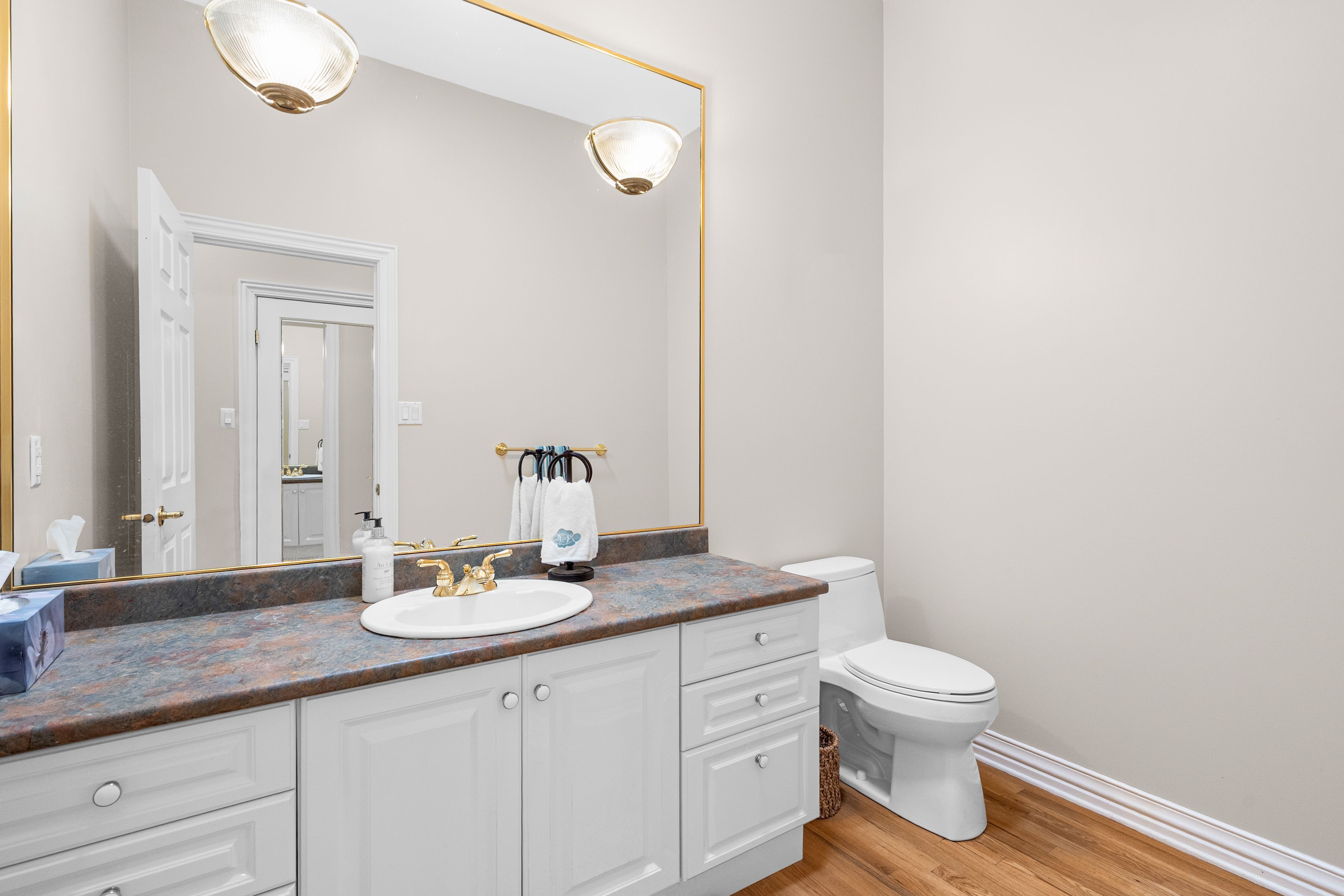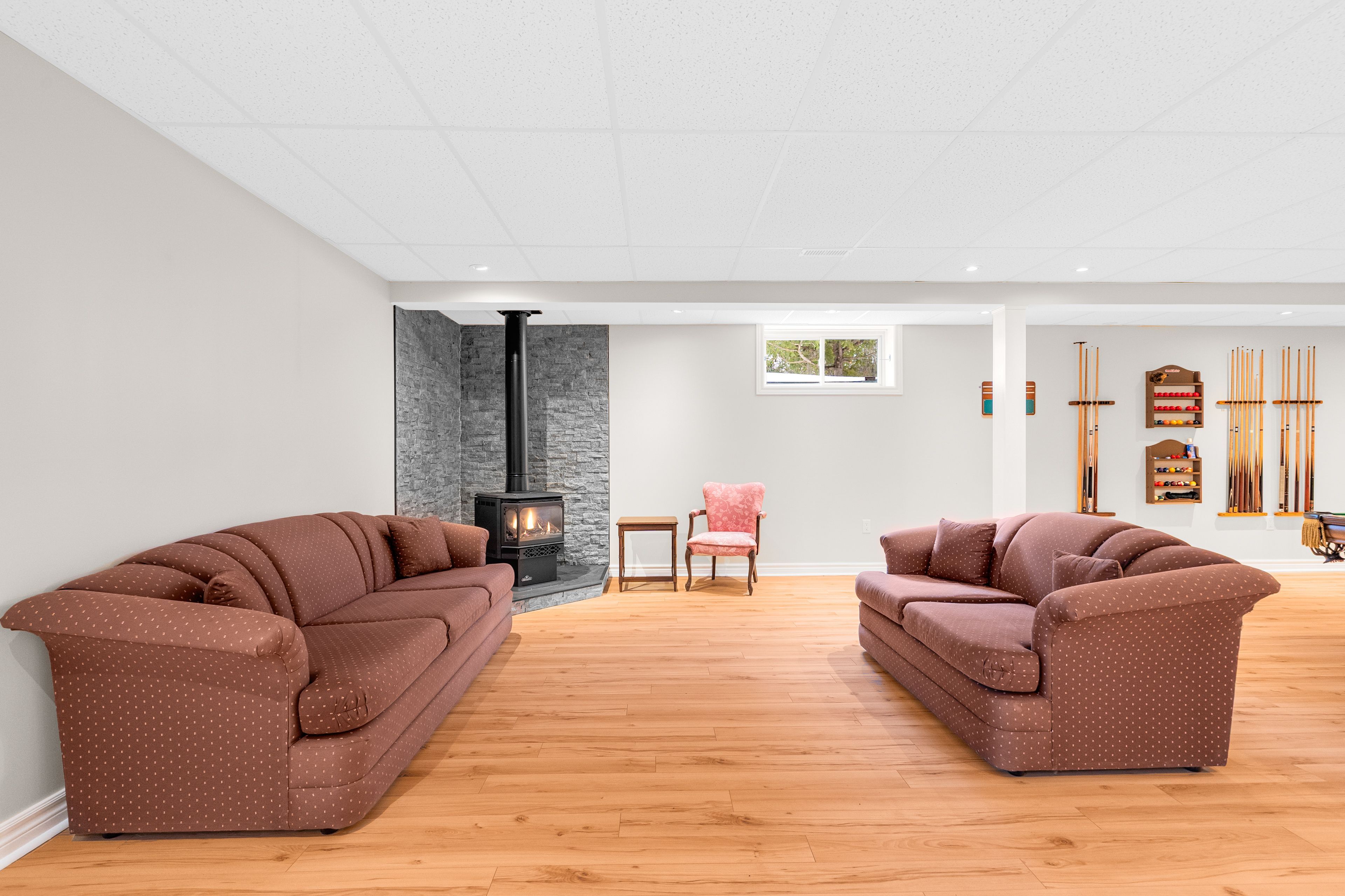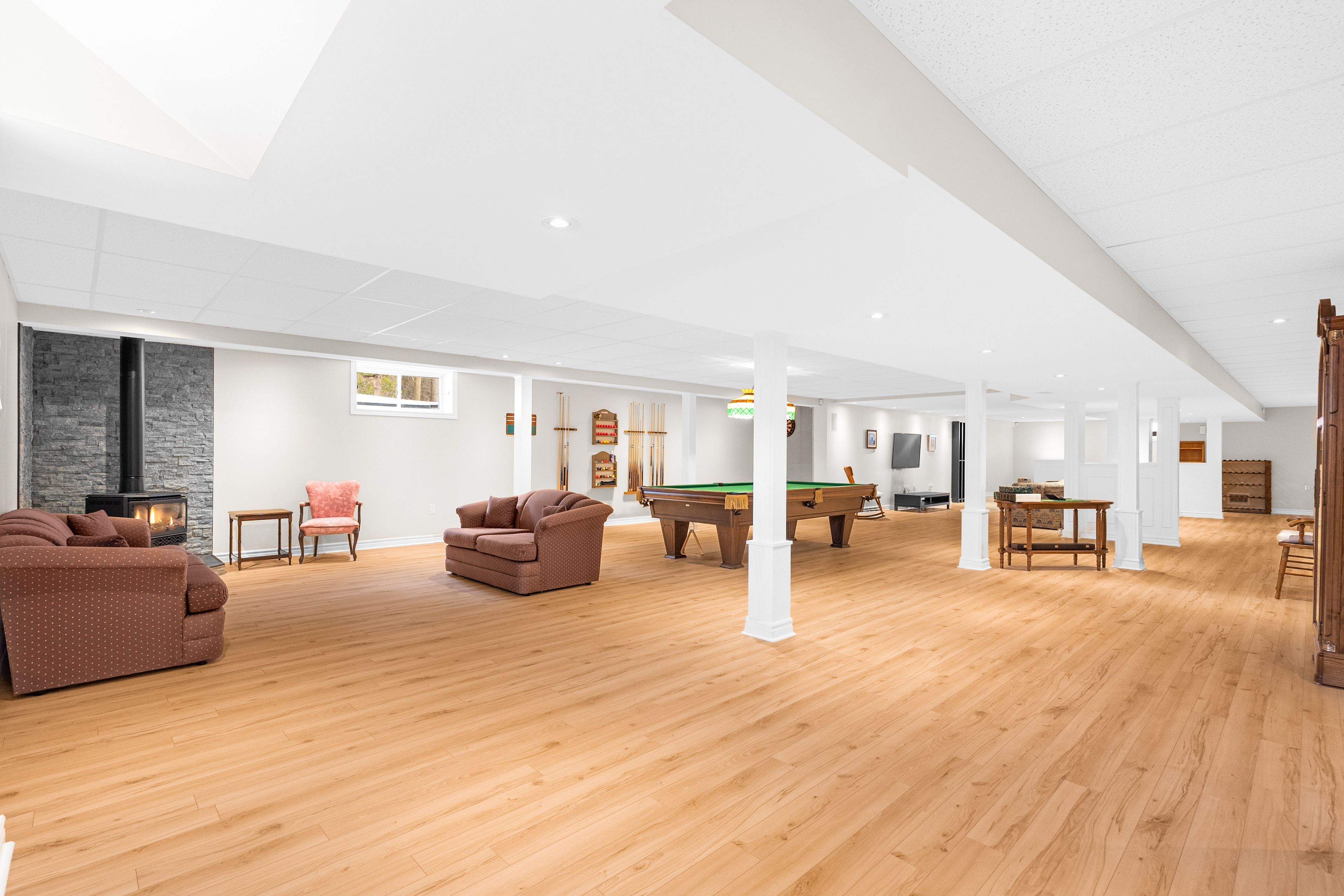 • Finished lower level offers flexibility for various uses, including a gym or media room.