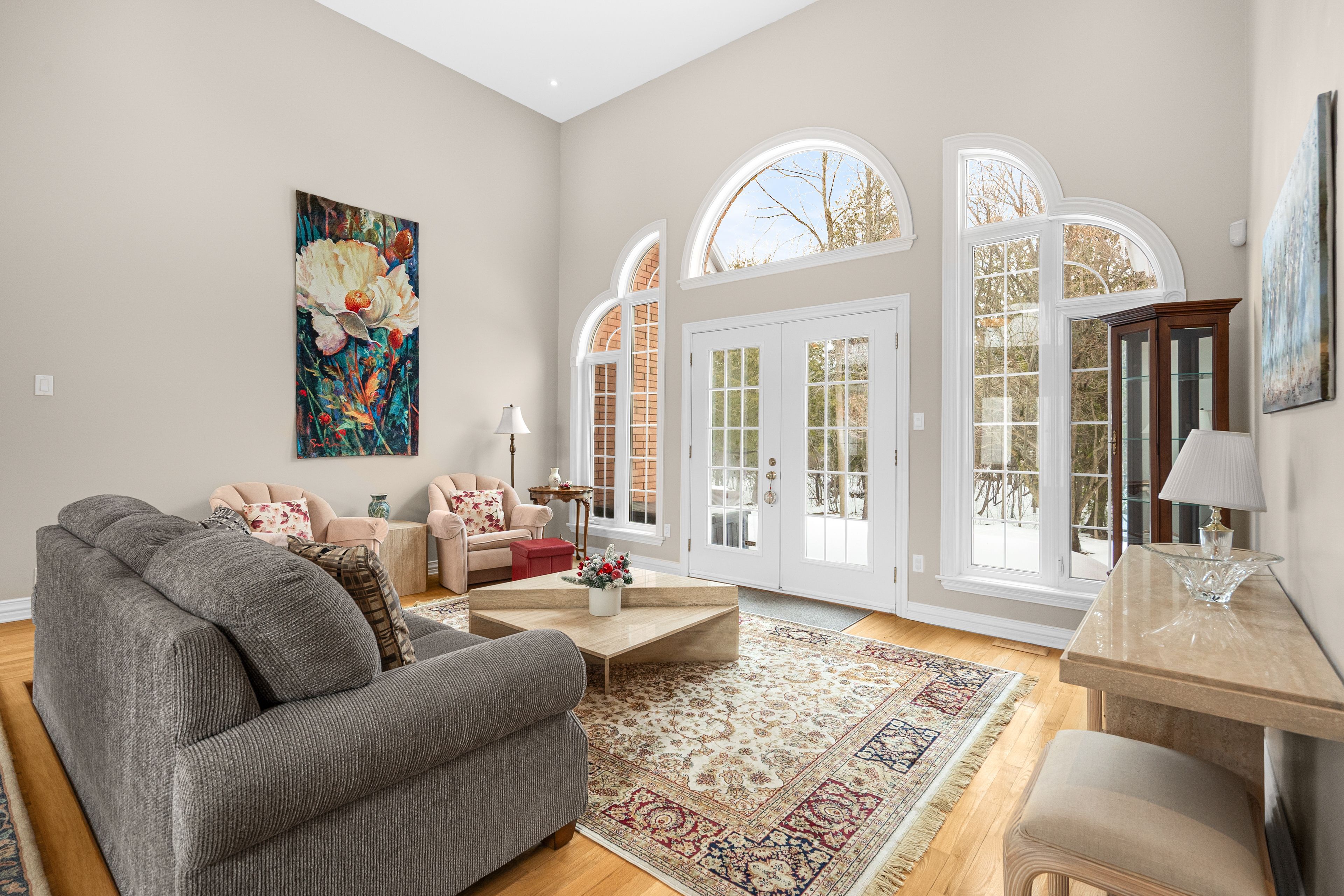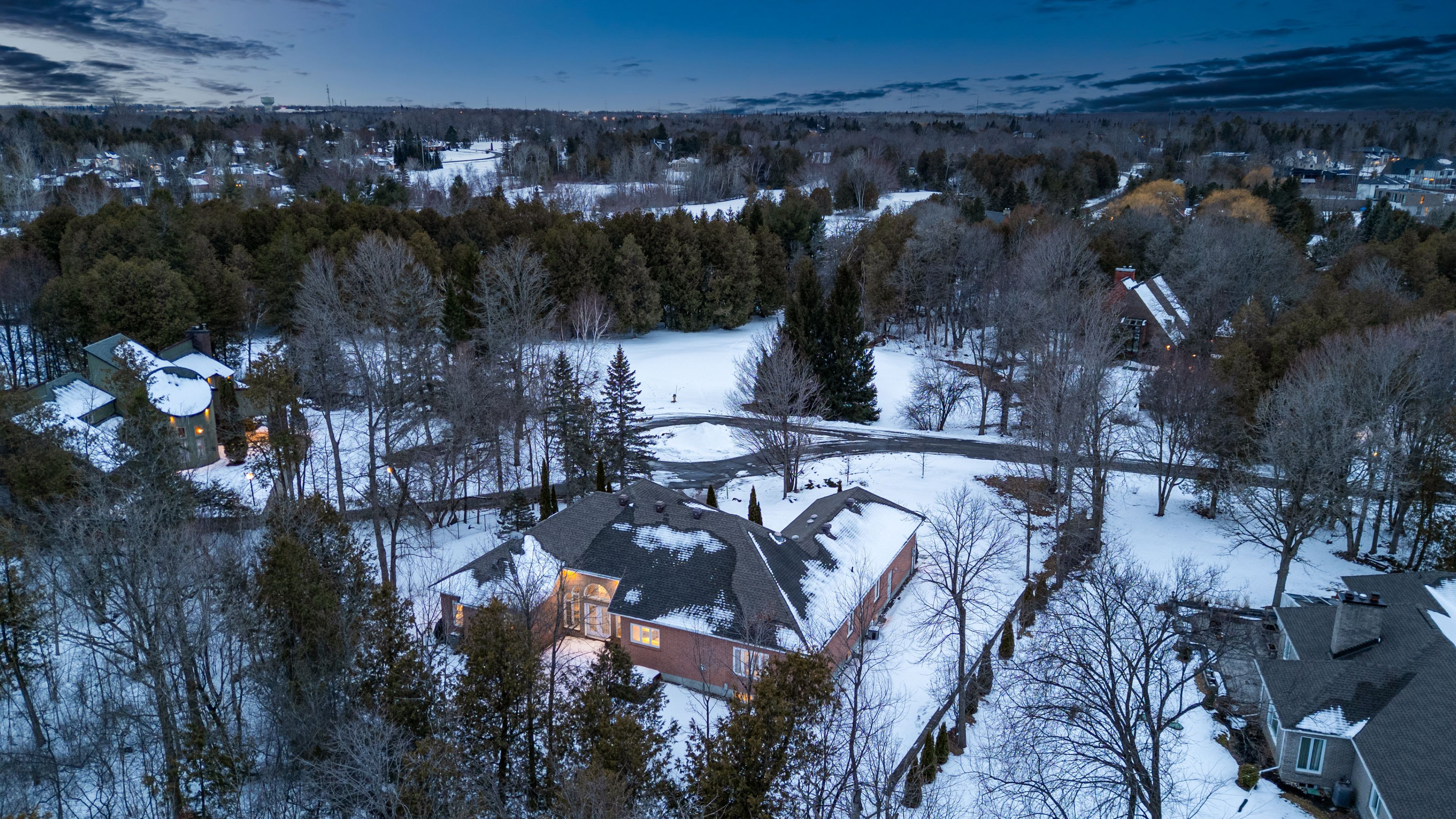 Discover serene living at 5 countryside green, a custom-designed bungalow where luxury meets exceptional privacy. Perfectly situated on a quiet cul-de-sac of only six homes, this property offers breathtaking front views of the cedarhill golf course's first fairway and backs onto a forested buffer with no rear neighbours. With nearly 5,000 sq. Ft. Of finished space on a near-acre lot, this home is ideal for those seeking a rural estate lifestyle with "in-the-city" convenience. The interior is defined by a sense of scale and light, featuring soaring 16-foot ceilings, sun tunnel skylights, and rich oak hardwoods throughout the entire main level. The expansive living room flows seamlessly into a formal dining area and a dedicated den. A chef's kitchen serves as the heart of the home, complete with granite countertops, a canopy hood, built-in ovens, and a large central island with an integrated cooktop. Bathed in natural light from southern exposure windows that wrap around the south wing of the home, the adjacent breakfast nook and family room, which features one of three gas fireplaces, offer peaceful, unobstructed views of the tree-lined sideyard and forested surroundings. The primary suite is a true retreat, featuring dual walk-in closets and a five-piece ensuite with a soaker tub and glass-enclosed shower. Two additional main-floor bedrooms provide excellent flexibility, connected by a practical jack-and-jill bathroom. The finished lower level expands the home's potential with a massive open-concept layout, a high-end wet bar, a full bath, and a second laundry area-ideal for a multi-generational suite, home gym, or media hub. Outside, the property is framed by mature trees ensuring total privacy, featuring a fenced side yard and expansive wrap-around interlocked patio spaces. Residents enjoy rapid access to the 416, hunt club, and fallowfield, placing the rcmp headquarters, queensway carleton hospital, and the amenities of barrhaven and kanata just minutes away.