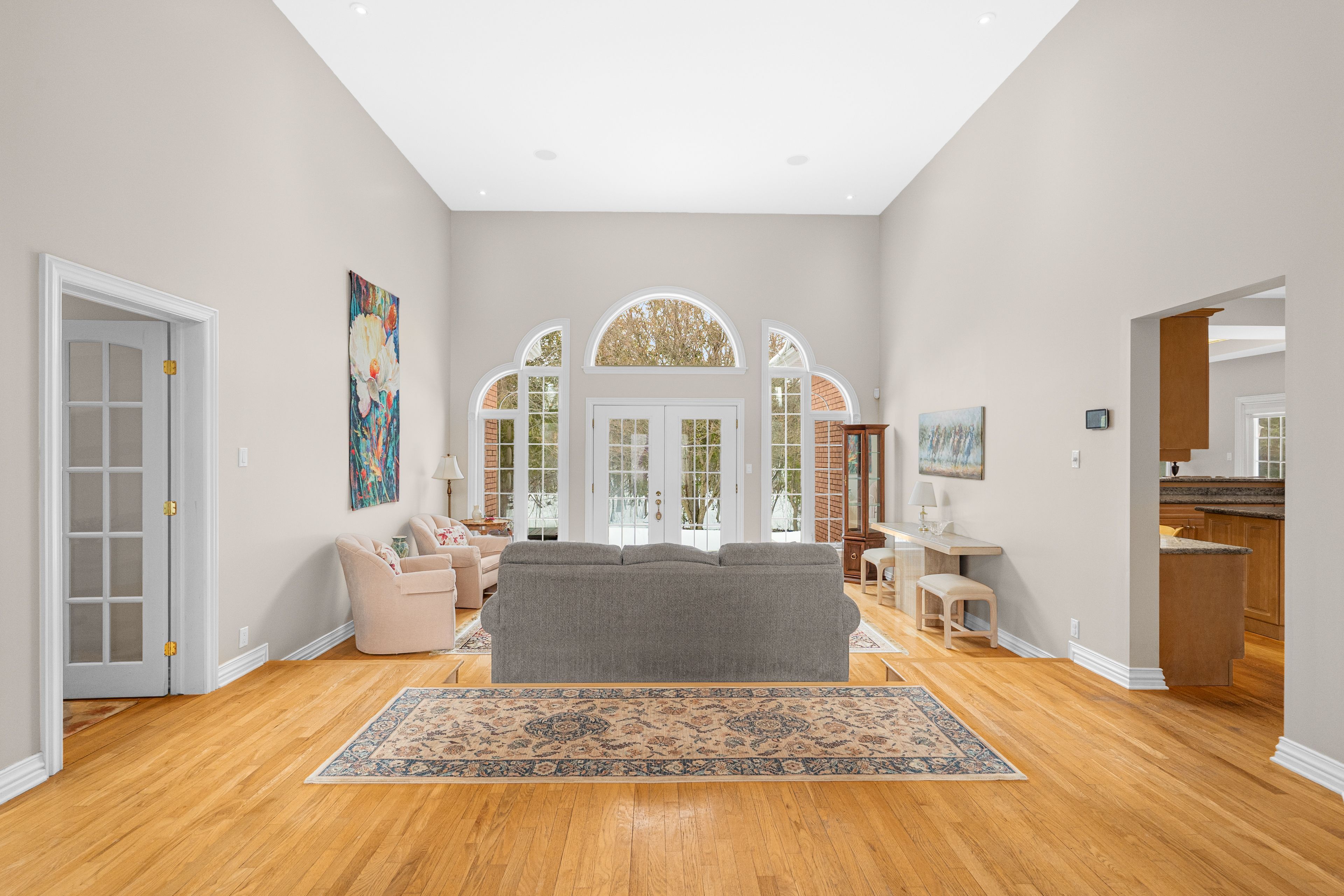 • Spacious interior with 16-foot ceilings and abundant natural light throughout.
