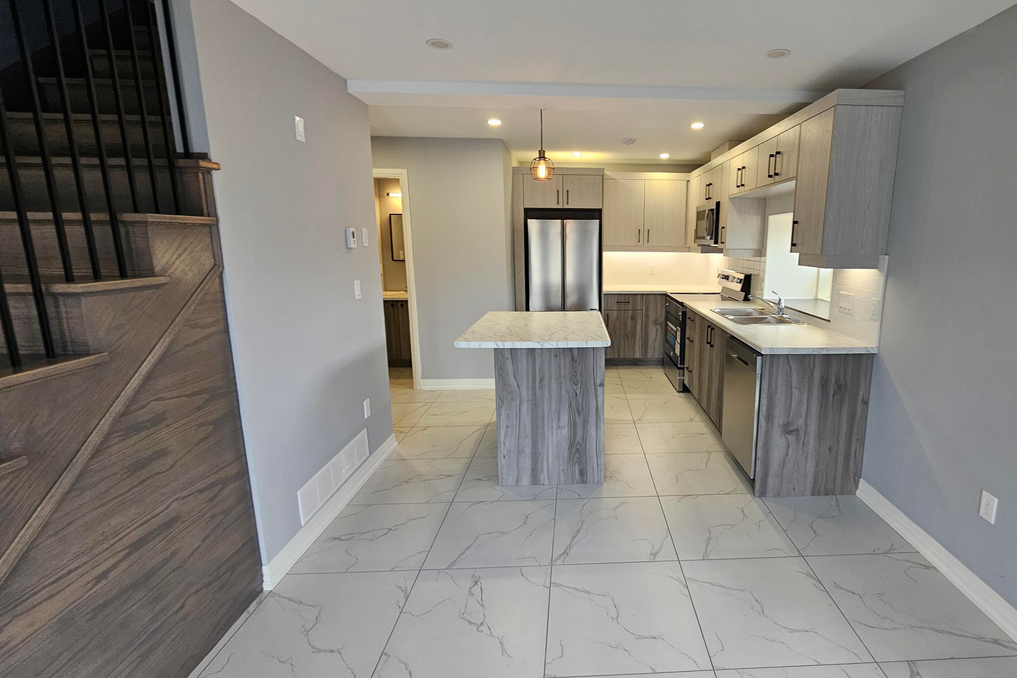 Step inside this new, modern detached home tucked into a quiet thorold neighbourhood, where bright, open living spaces welcome you from the moment you enter. The main floor features a light-filled living area with large windows, pot lights, and glass garden doors that open directly to a covered concrete patio and private side yard, creating an easy indoor-outdoor flow. The living space is open to a contemporary kitchen, ideal for everyday living and entertaining, and is complemented by a convenient 2-piece powder room. A dark oak staircase with a sleek, open railing leads to the second level, offering two generously sized bedrooms and a stylish 4-piece bathroom. Additional highlights include in-suite laundry, an independent forced-air gas hvac system with central air, and a private hydro panel. Outside, enjoy a double concrete driveway plus ample street parking for visitors. Rent is $2,500 all-inclusive.