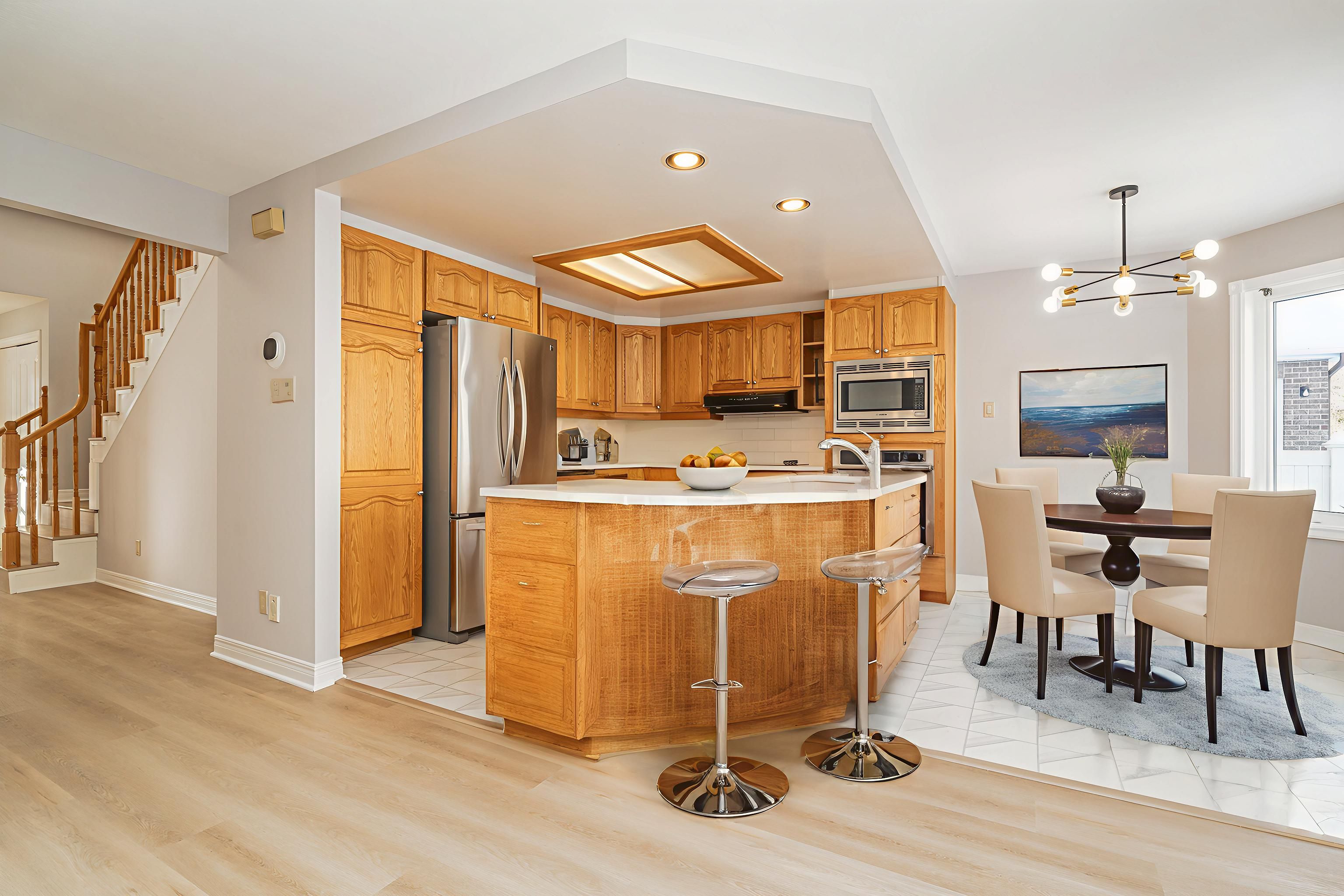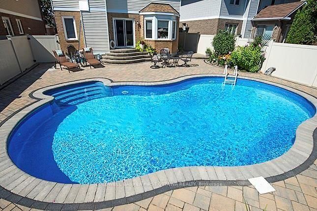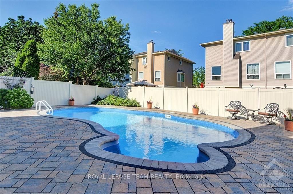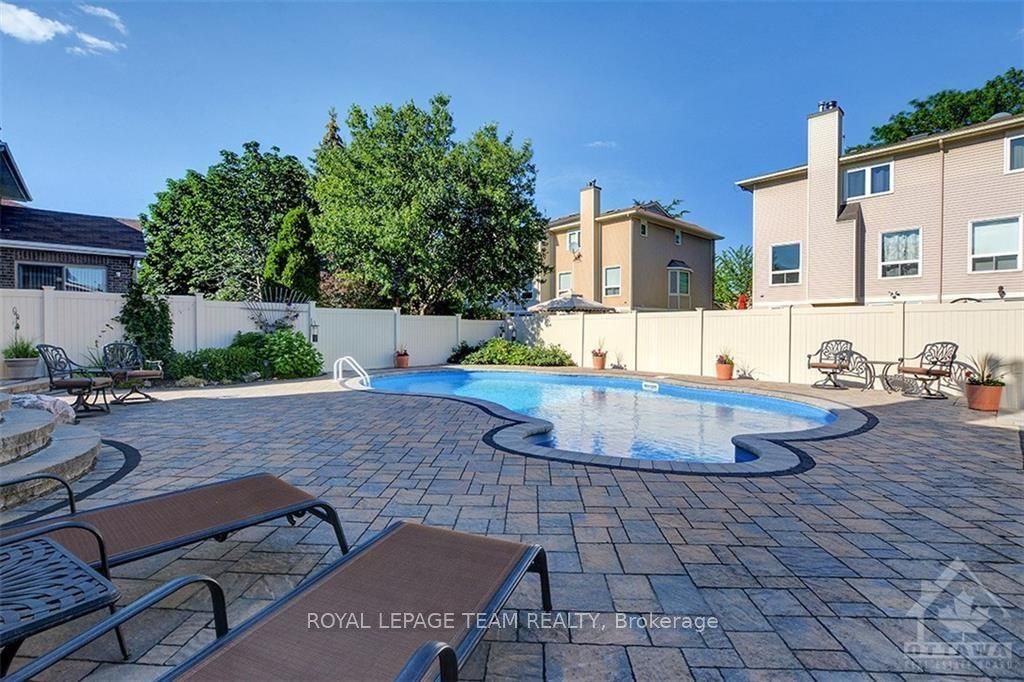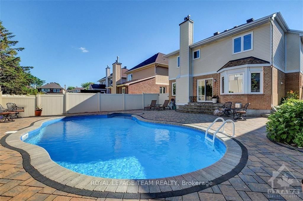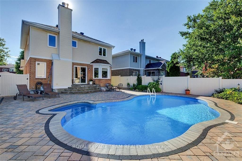 Welcome to this beautiful minto built home with a double car garage, nestled on a quiet crescent in the heart of prestigious centrepointe on a fully fenced 42' x 108' lot, just steps from centrepointe park. This sun filled two storey property offers a timeless and functional layout featuring 3 spacious bedrooms, 4 bathrooms, main floor laundry with a convenient side door and fully finished basement, beautifully renovated interior throughout. The inviting foyer is very functional, while the kitchen showcases oak cabinetry, a central island, and an eat in area open to the family room with new laminate flooring and a cozy wood burning fireplace. Patio doors lead to a private backyard oasis complete with an in ground saltwater pool, custom interlock patio and walkways, professionally landscaped grounds, perennial gardens, and refined night lighting, perfect for entertaining or unwinding all summer long. The second level offers a spacious primary bedroom with an ensuite featuring a whirlpool tub, separate shower, and walk-in closet, along with two additional well sized bedrooms. The finished lower level adds exceptional versatility with a spacious rec room with the 2nd fireplace, hobby or office space, and an additional powder room, ideal for teens or an in law suite. Additional highlights include a 16' wide double garage with double driveway and an interlock front entrance with illuminated steps. Ideally located minutes to algonquin college, highway 417, college square, and the future baseline lrt station, this move in ready home seamlessly blends traditional elegance, modern comfort, and an unbeatable location, centrepointe living at its best. Some photos are virtually staged, and 24 hours irrevocable is required on all offers.