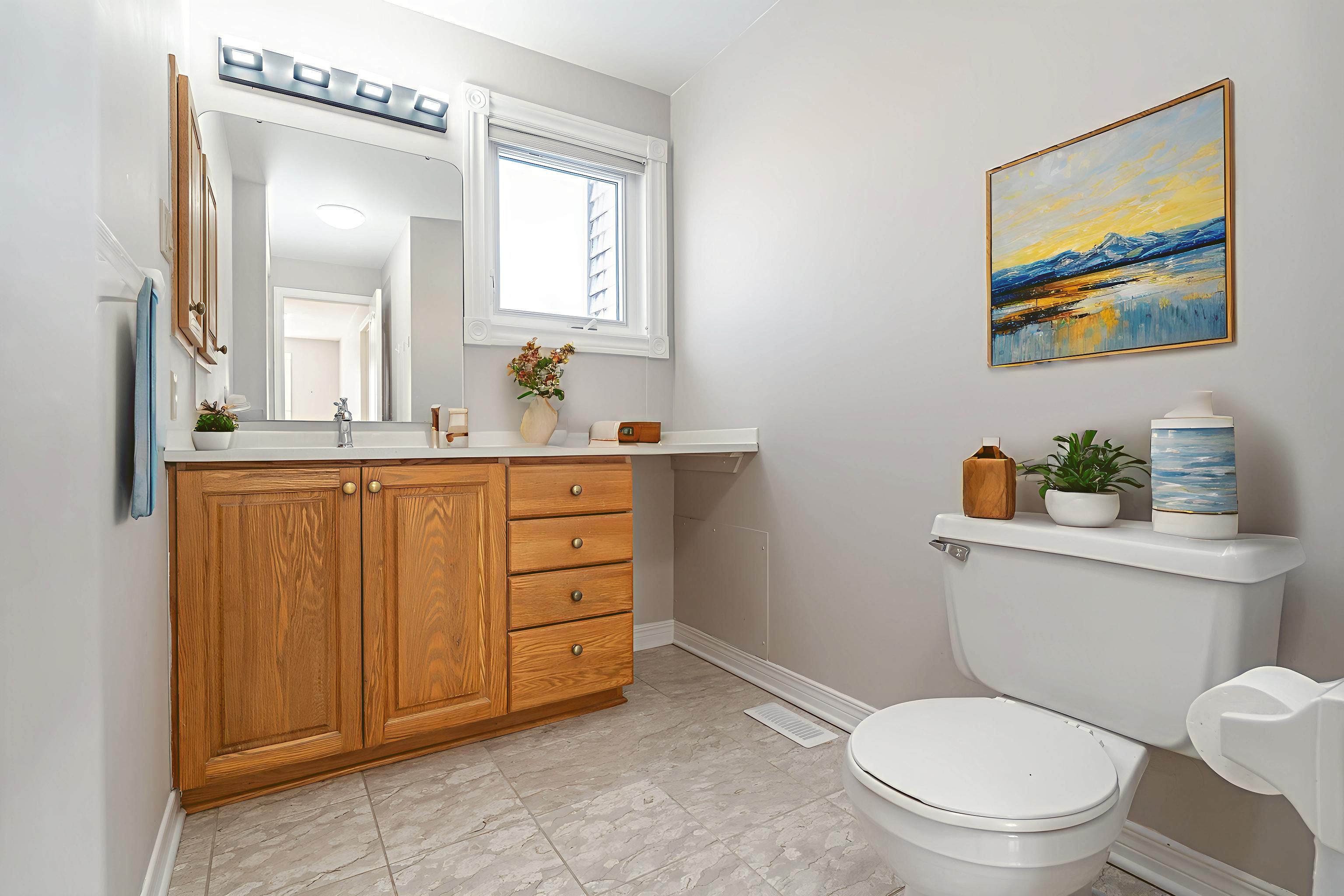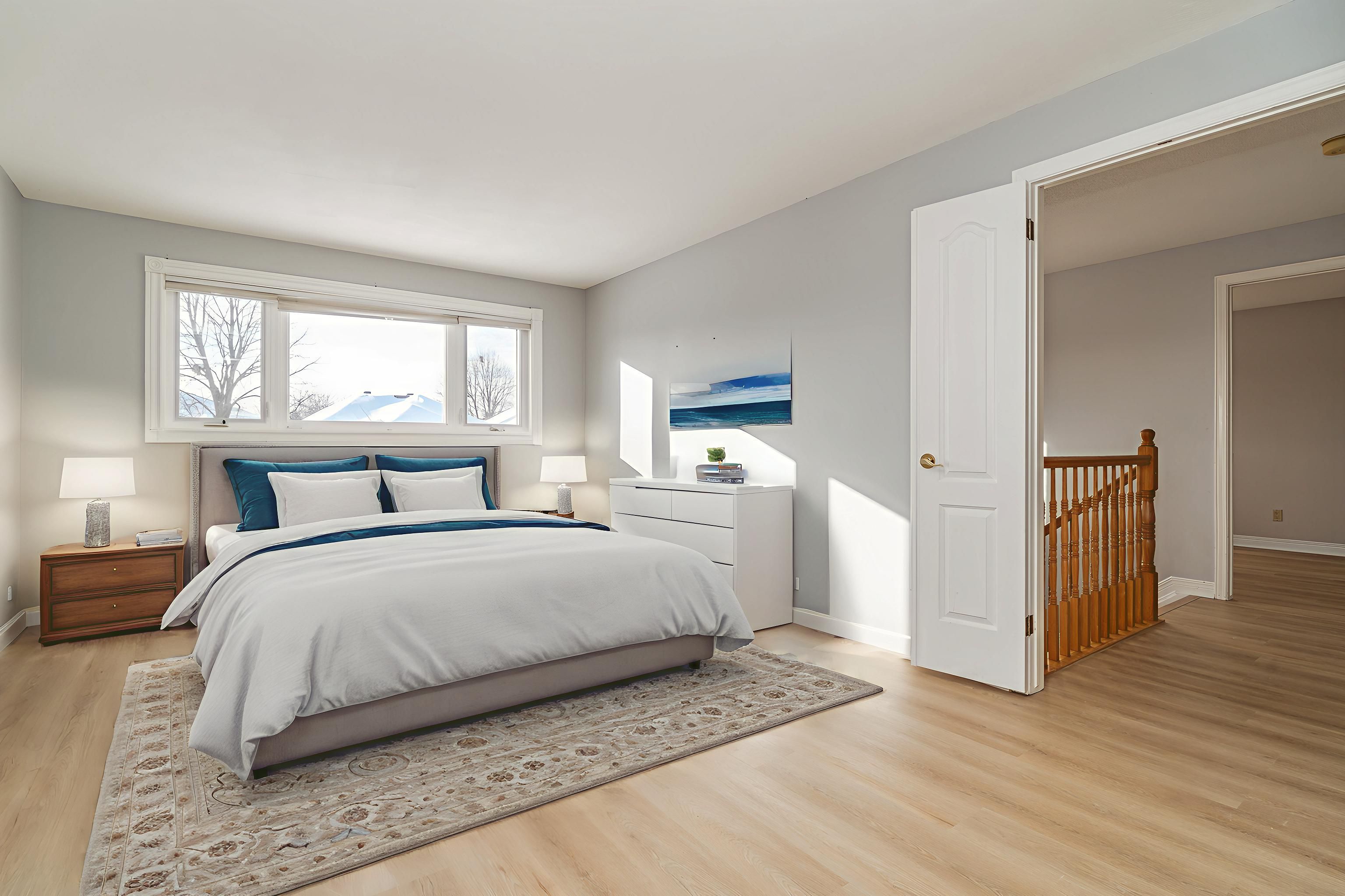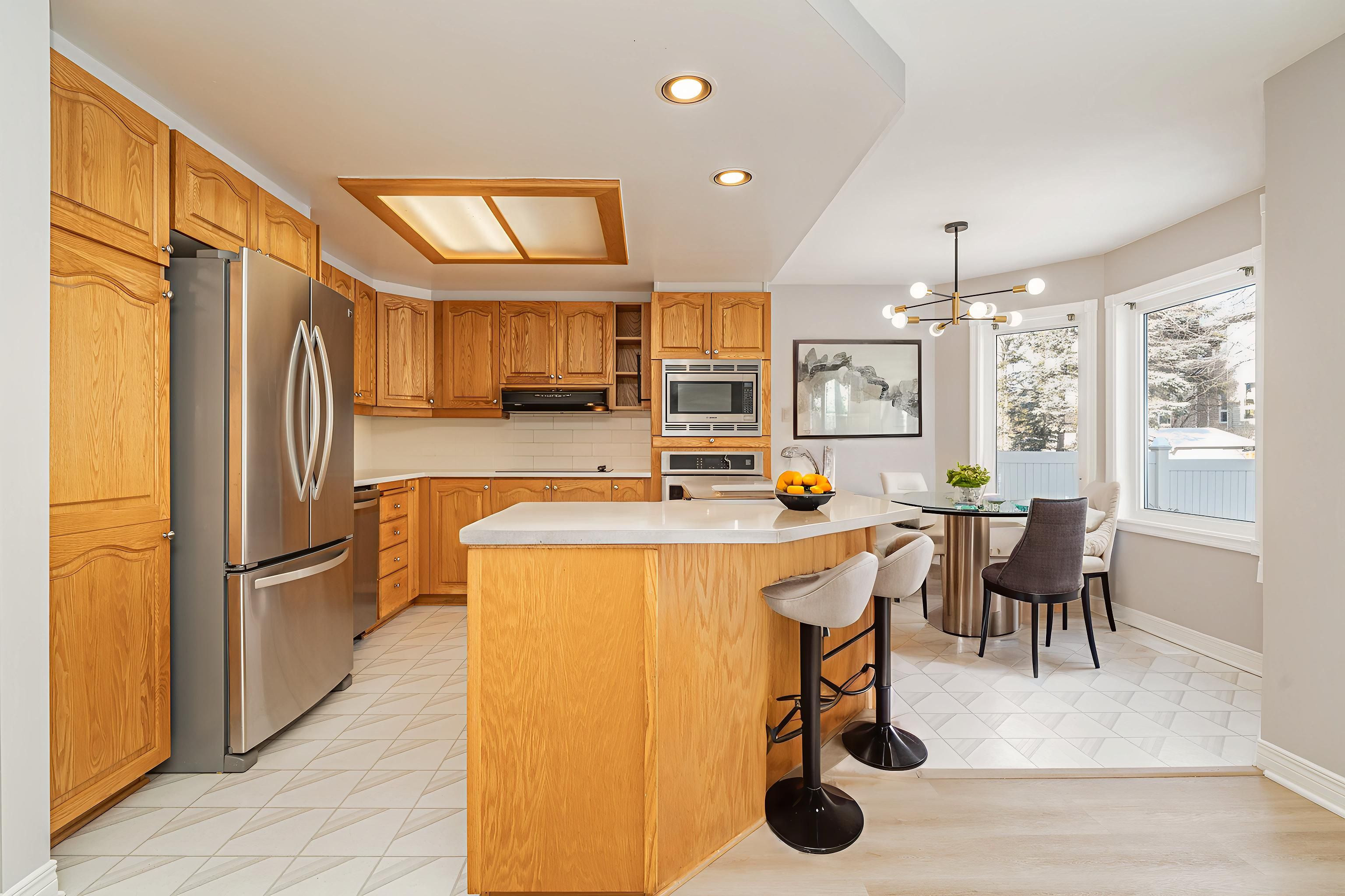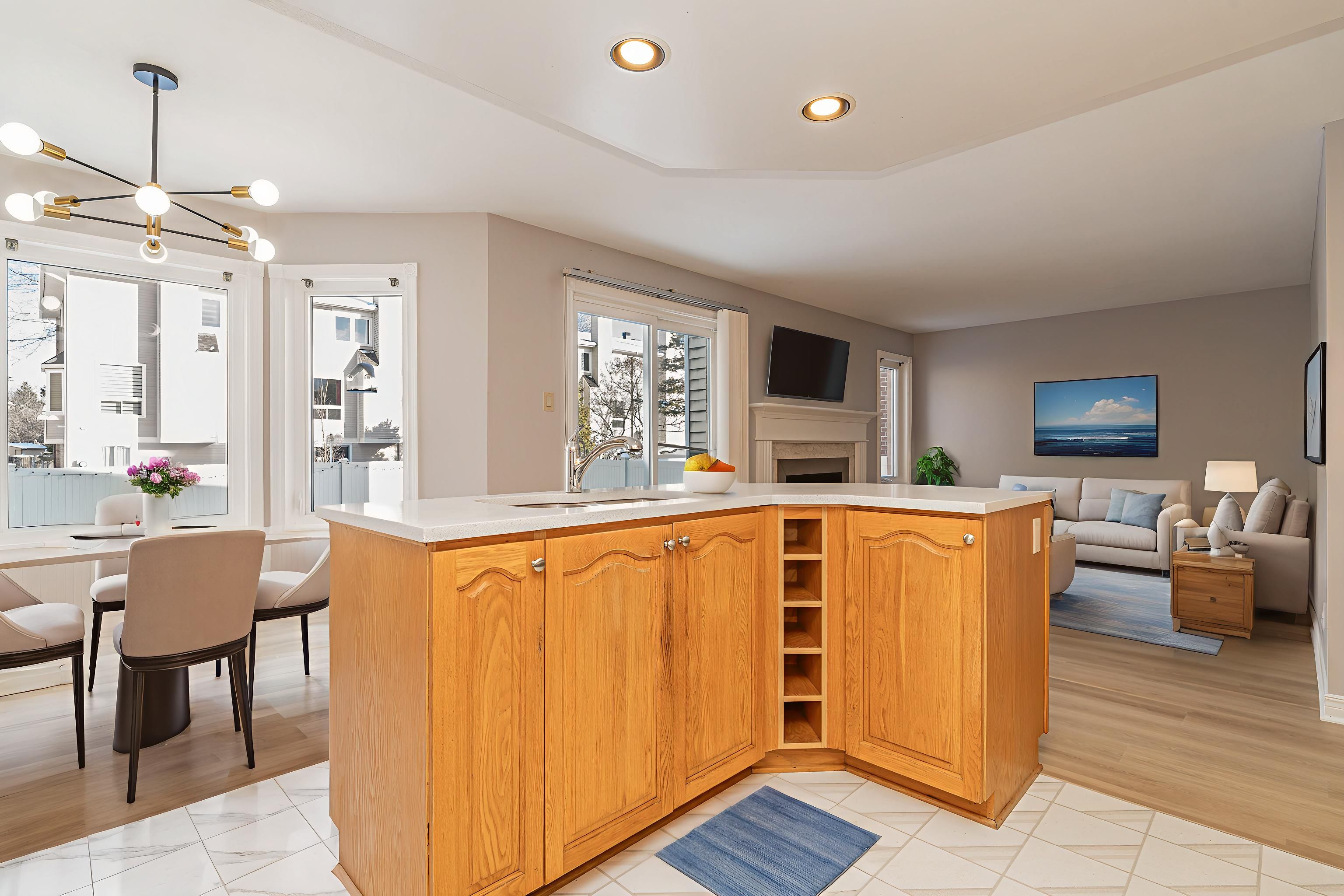Welcome to this beautiful minto built home with a double car garage, nestled on a quiet crescent in the heart of prestigious centrepointe on a fully fenced 42' x 108' lot, just steps from centrepointe park. This sun filled two storey property offers a timeless and functional layout featuring 3 spacious bedrooms, 4 bathrooms, main floor laundry with a convenient side door and fully finished basement, beautifully renovated interior throughout. The inviting foyer is very functional, while the kitchen showcases oak cabinetry, a central island, and an eat in area open to the family room with new laminate flooring and a cozy wood burning fireplace. Patio doors lead to a private backyard oasis complete with an in ground saltwater pool, custom interlock patio and walkways, professionally landscaped grounds, perennial gardens, and refined night lighting, perfect for entertaining or unwinding all summer long. The second level offers a spacious primary bedroom with an ensuite featuring a whirlpool tub, separate shower, and walk-in closet, along with two additional well sized bedrooms. The finished lower level adds exceptional versatility with a spacious rec room with the 2nd fireplace, hobby or office space, and an additional powder room, ideal for teens or an in law suite. Additional highlights include a 16' wide double garage with double driveway and an interlock front entrance with illuminated steps. Ideally located minutes to algonquin college, highway 417, college square, and the future baseline lrt station, this move in ready home seamlessly blends traditional elegance, modern comfort, and an unbeatable location, centrepointe living at its best. Some photos are virtually staged, and 24 hours irrevocable is required on all offers.