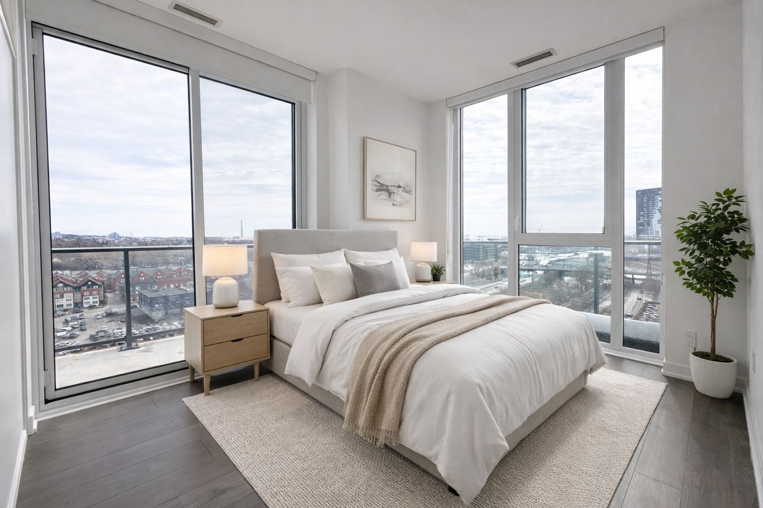 Welcome to east harbour - contemporary city living at its finest! Step into this stunning 3-bedroom, 2-bathroom corner suite offering bright, open-concept living with floor-to-ceiling windows that fill the space with natural light. Designed with style and comfort in mind, this unit features sleek matte black fixtures, soft-close cabinetry, and modern finishes throughout. Modern built-in appliances and in-suite laundry. The integrated broccolini smart home system allows you to control lighting, temperature, and secure keyless entry directly from your smartphone, making everyday living seamless and efficient. Ideally situated just 2 minutes from the dvp and 5 minutes to the gardiner expressway. Conveniently located steps from 24-hour ttc transit, you're only a 10-minute ride to the eaton centre and tmu, and less than 15 minutes to sickkids hospital, st. Michael's hospital, and mount sinai-perfect for professionals, students, and healthcare workers. Residents enjoy access to premium amenities, including a rooftop pool with breathtaking city views, a state-of-the-art 5,000 sq. Ft. Fitness centre, 24-hour concierge service, and beautifully designed common areas. Experience elevated urban living in one of the city's most connected and exciting communities.