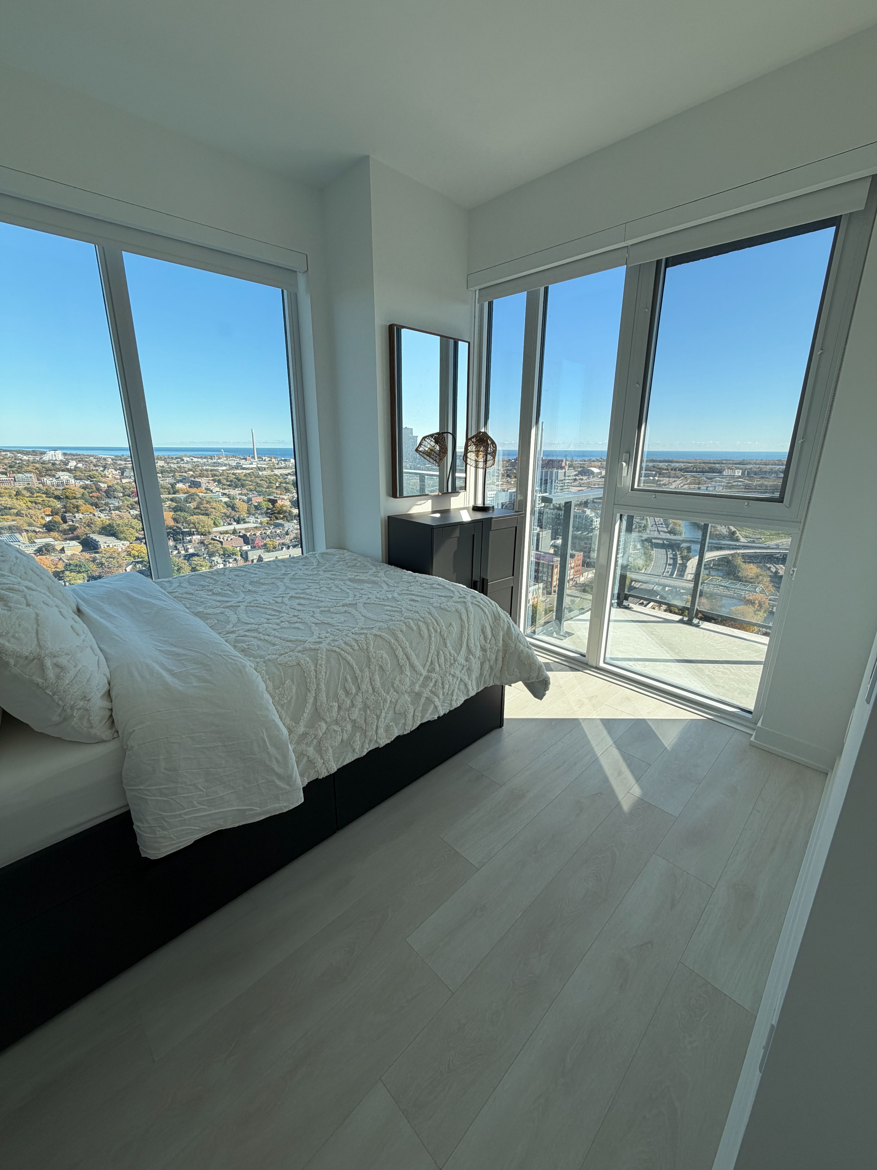 Contemporary furnished condo at river & fifth by broccolini - in the heart of toronto's emerging downtown east, where the pulse of the city meets the calm of the river, discover a new kind of urban living. A harmonious fusion of nature and design, these refined condominium residences blur the boundaries between indoors and out - offering serenity within the rhythm of downtown life. The future is downtown east. Fully furnished, move-in ready sun-filled corner unit with unobstructed south facing views, flooded with natural light. Elegant, modern interior contemporary kitchen featuring premium appliances and finishes spacious bedrooms with ample storage includes 1 locker & 1 parking space for convenience. Top notch building amenities include rooftop terrace with pool, cabanas, firepit, and outdoor dining area, sports lounge with wet bar, state-of-the-art fitness centre with cardio, weights, aerobics, and boxing zones, business centre, guest suites for visitors, 24-hour concierge and secure building access. Well situated near dundas & queen east - close to dvp, transit, dinning & more! 94 walk score.
