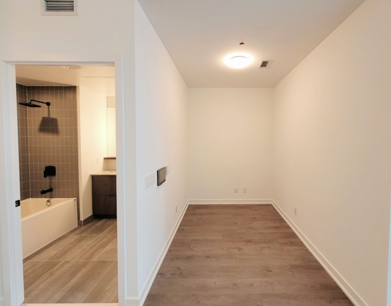Located in the sought-after corktown neighborhood, this south-facing one-bedroom plus den unit is designed for modern, convenient downtown living. The sun-filled, open-concept living area features floor-to-ceiling windows. The kitchen boasts quartz countertops and premium appliances. The den is perfectly sized for a second bedroom or home office. The primary bedroom offers south exposure and a walk-in closet. Minutes from ttc street car route. Direct access to the bayview extension, easy access the dvp, gardiner expressway and highway 401. Close to toronto general hospital, tmu, george brown college, and jimmie simpson recreation centre, distillery district.