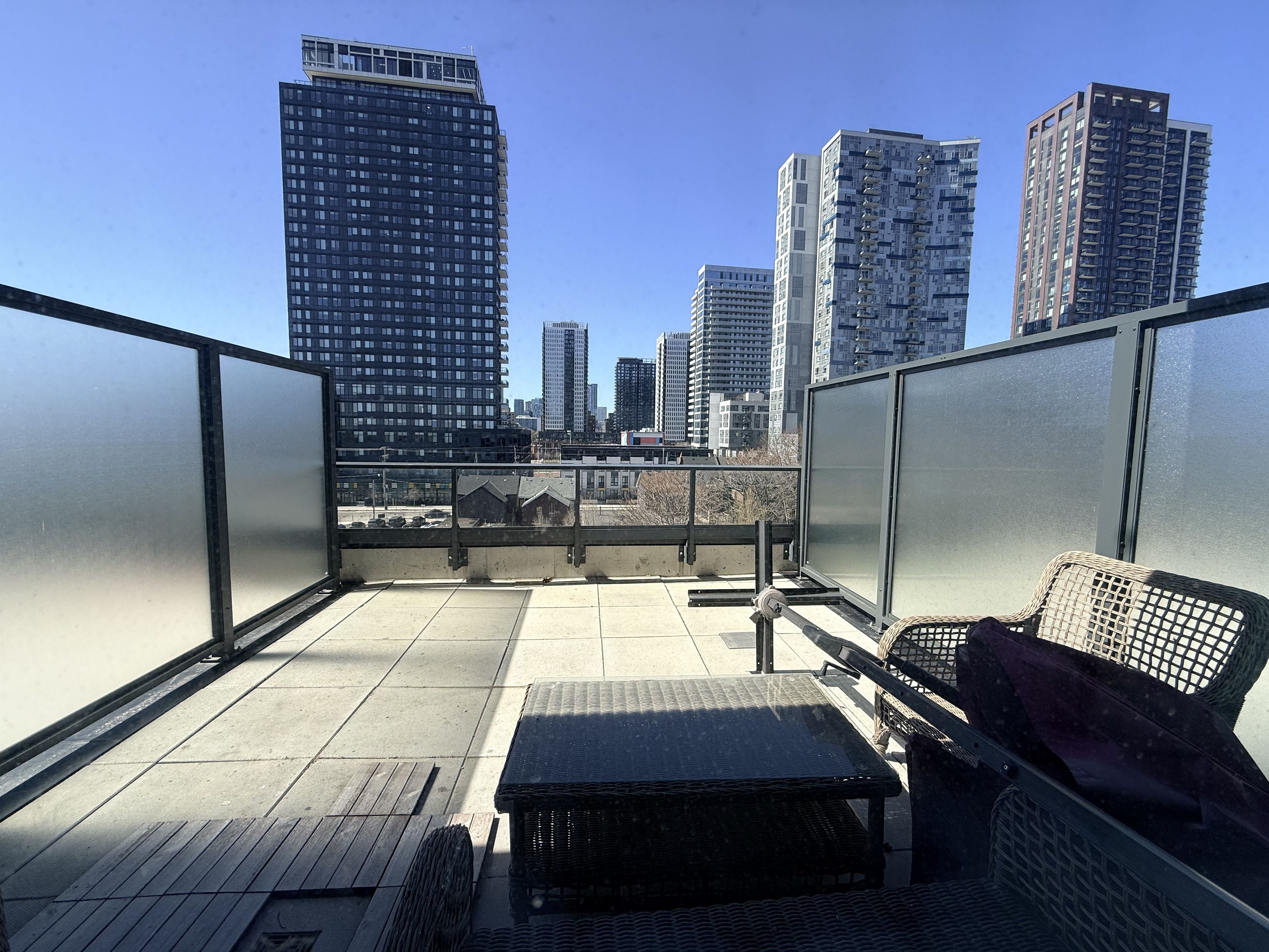 Two-year-old lifestyle condo featuring high-end and modern interior design! This 649-square- foot unit + 176 sqft terrace! Offers a bright open-concept layout with floor-to-ceiling windows, featuring 1 bedroom + den and 2 full bathrooms. The primary bedroom includes an ensuite. The den can easily function as a second bedroom or a home office. Premium matte black appliances, and smart home integration. The building offers resort-style amenities, including 24/7 concierge service, a coworking space, a sports lounge, a gym, and a rooftop outdoor pool with incredible city views-the only condo in the area offering this feature. Perfectly located just a 2-minute walk from ttc access, with easy connections to the don valley parkway, gardiner expressway, and the historic distillery district. It provides an ideal blend of luxury, convenience and urban lifestyle for families and professionals.