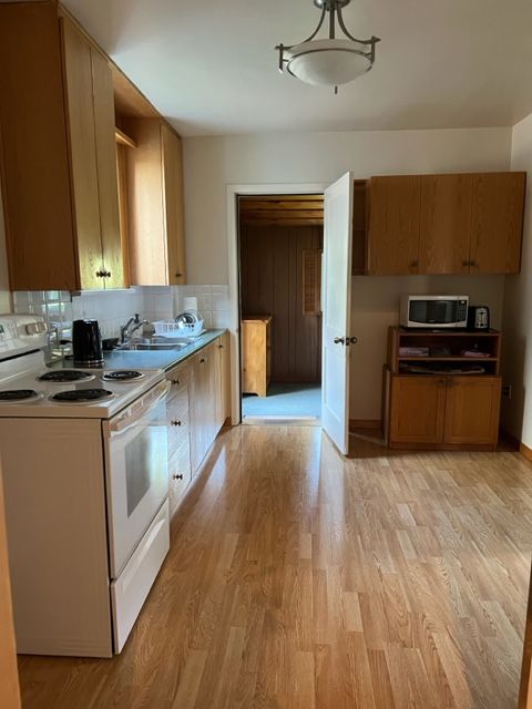 • Large eat-in kitchen with access to the yard, great for gatherings.