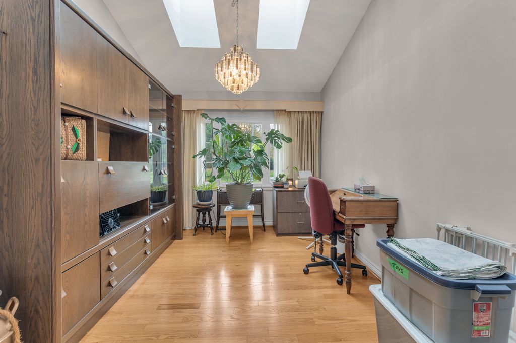 • Convenient main floor laundry and dedicated office nook with skylights.