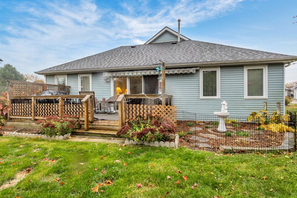 All the space you need with nobody behind you!!! You won't want to miss your chance to see this spacious, affordable and tastefully decorated hickory hills home. Upon entry, you will be greeted by a large eat-in kitchen with plenty of of counter space, newer appliances, recently upgraded flooring and connects to a dedicated dining room. Enjoy a bright living room that walks out through sliding doors to an over-sized deck with retractable awning that overlooks the large neighbouring green space. The main level also boasts two large bedrooms with ample closet space, 2. 5 bathrooms including a handy 3pc ensuite, large main bath and 2pc for company. Other highlights: main floor laundry, large walk in pantry, indoor mudroom connection to garage as well as a neat nook with skylights that could serve as bright and functional office working area. Under the unit is a large, lit utility and crawl space with poured concrete floor that provides a ton of dry storage potential. This home enjoys a larger main floor plan than most models, limited exposure to neighbours and direct access to green space! 5 dereham drive is a must-see and is located mere steps from the hickory hills' community centre, walking path leading to the kinsmen bridge and tillsonburg's coveted downtown core. There is a one time association fee of $2,000 and corresponding annual due of $655 payable to the hickory hills association. Don't let this opportunity pass you by!