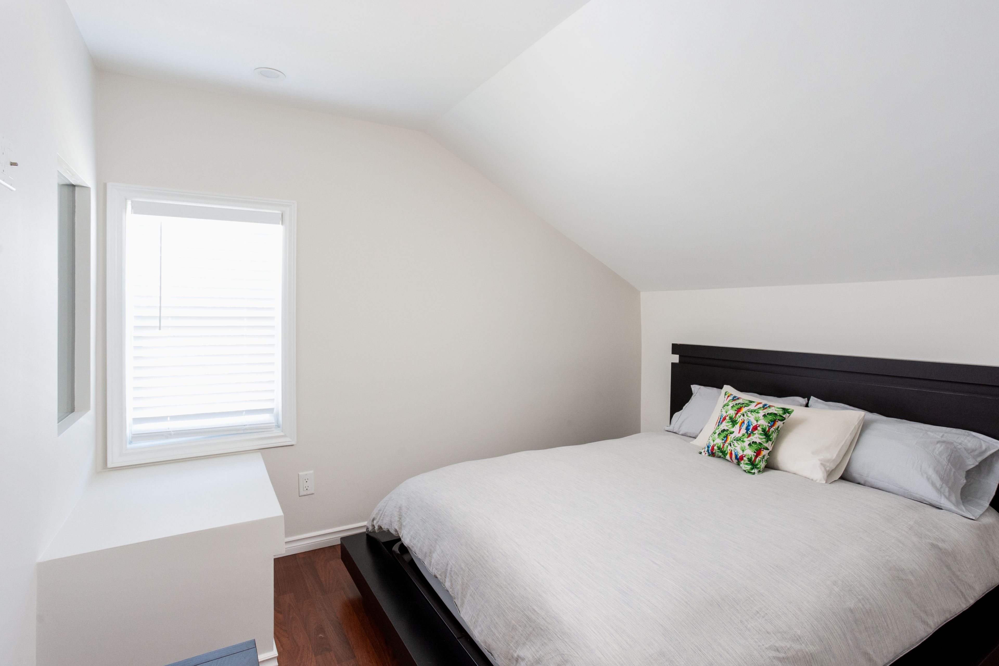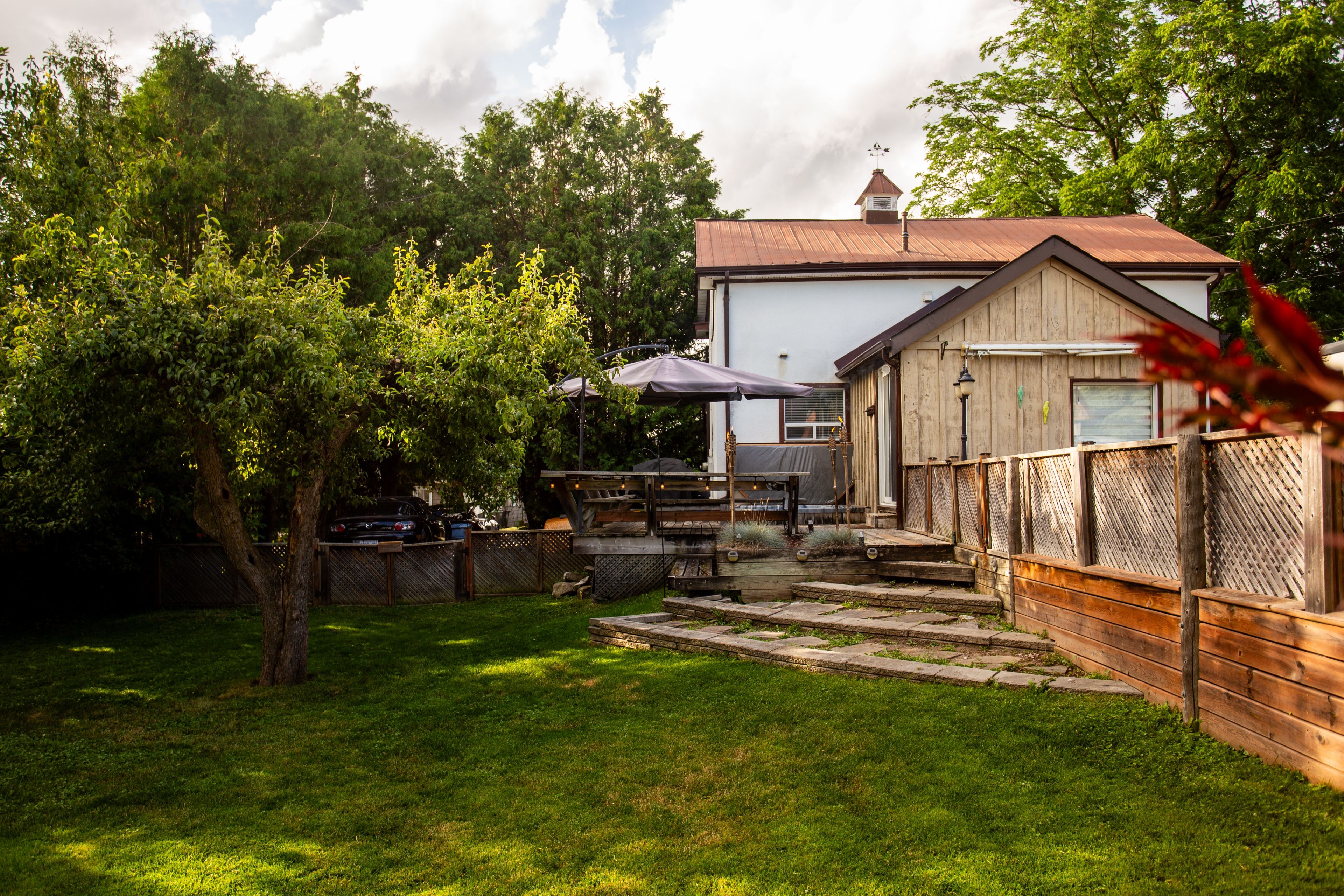 One-of-a-kind beauty in a prime locationideally situated just minutes from hwy 400, this exceptional home offers convenient access to schools, a library, recreation centre, parks with outdoor water features, restaurants, an outlet mall, and local shops. Step into your own private backyard oasis, featuring three expansive decks that wrap around the home-perfect for entertaining or relaxing. The beautifully landscaped yard is surrounded by mature cedars, highlighted by a stunning japanese maple and a unique pear tree. Enjoy evenings by the fire pit or unwind in the hot tub. Additional outdoor features include a spacious shed and a dedicated firewood/garden shelter, providing ample storage for all your landscaping needs. Plenty of parking adds to the home's functionality. This charming 1. 5 storey home has been thoughtfully upgraded with modern wiring, enhanced insulation, air conditioning, and central vacuum. The main floor showcases a beautifully renovated kitchen with high-end appliances, a stylish four-piece bathroom, and refinished original flooring throughout, along with generous storage space. The second floor offers three comfortable bedrooms and a well-appointed three-piece bathroom. A standout feature is the fully renovated workshop, complete with its own air conditioning, pellet stove, loft overlooking the space, and two separate entrances-an ideal setup for hobbyists, creatives, or potential home-based business use. A truly unique property that must be seen to be fully appreciated.