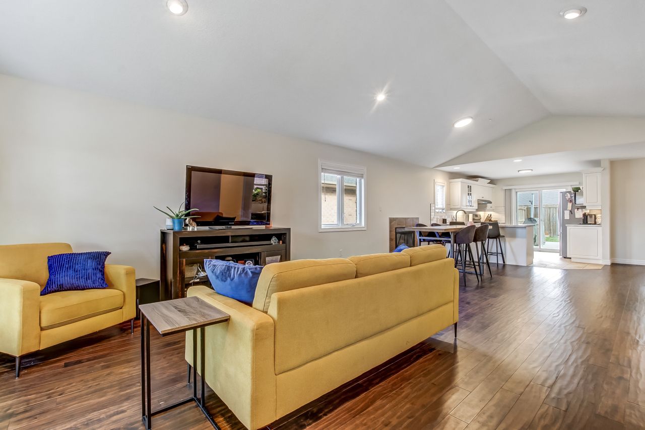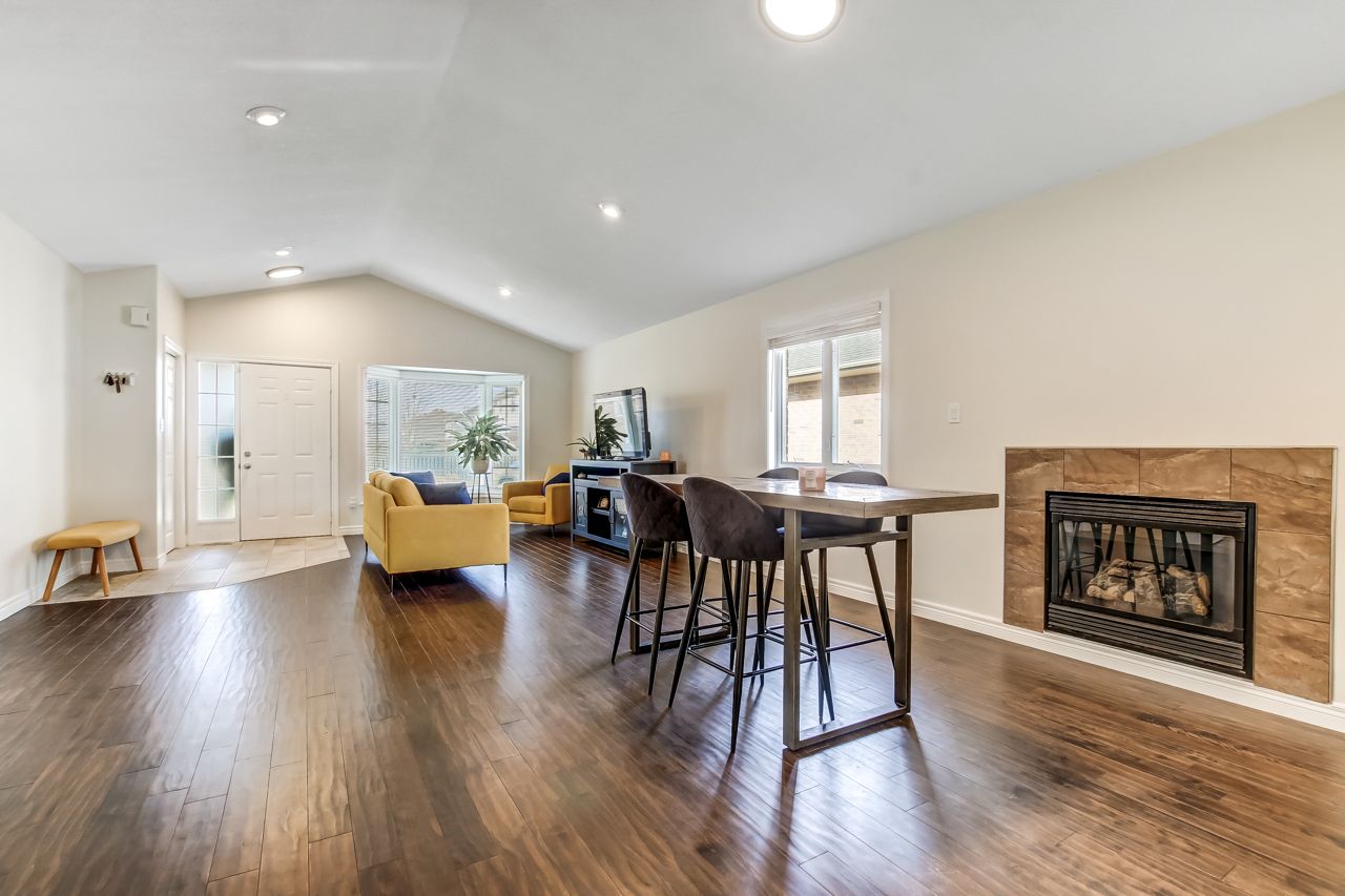Welcome to 5 faith blvd., a warm and inviting brick bungalow tucked into a quiet south-side st. Thomas neighbourhood-just steps from st. Joseph's secondary school and the fanshawe college campus. From the moment you arrive, the covered front porch and tidy curb appeal set the tone for a home that's been truly cared for and enjoyed. Inside, cathedral ceilings and a bright open-concept layout create an immediate sense of space. Sunlight pours through the large bay window, filling the living and dining area with natural warmth, while the gas fireplace adds cozy charm. The kitchen overlooks it all-perfect for staying connected while cooking-and features a breakfast bar and pantry for added convenience. The main floor offers a spacious primary bedroom, a versatile second bedroom or office, a 3-piece bath, and easy inside access to the attached 1-car garage. Downstairs, the fully finished lower level expands your living space with a generous family room ideal for movie nights or gatherings, a third bedroom, a den perfect for a home office or hobby space, and another 3-piece bath. A combined laundry and utility area adds convenience, with ample storage found throughout the home. Step into the fully fenced backyard and discover your private retreat: a recently updated covered deck with a gas bbq hookup, perfect for outdoor dining, a garden shed for additional organization, and a relaxing hot tub to unwind under the night sky. Fresh paint and updated lighting throughout make this home truly move-in ready. Ideal for first-time buyers, downsizers, or anyone seeking a comfortable, well-maintained home in a fantastic location.