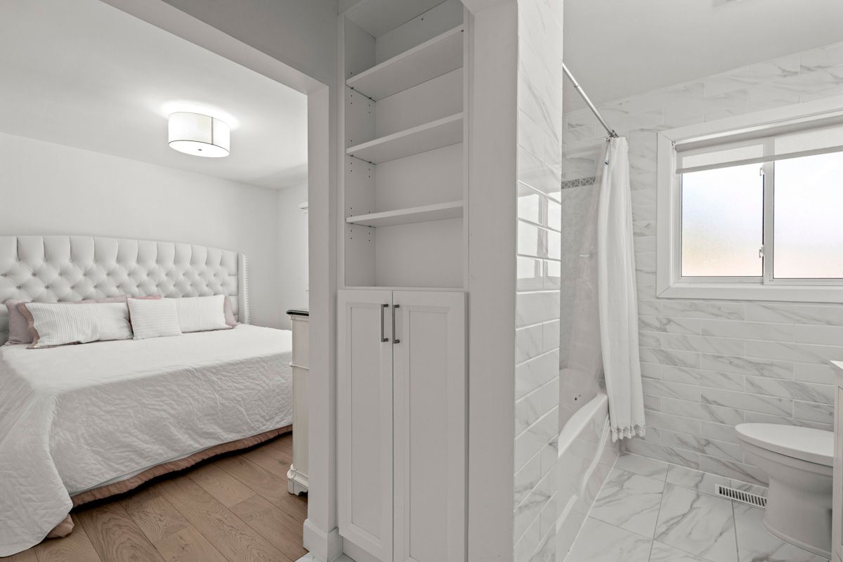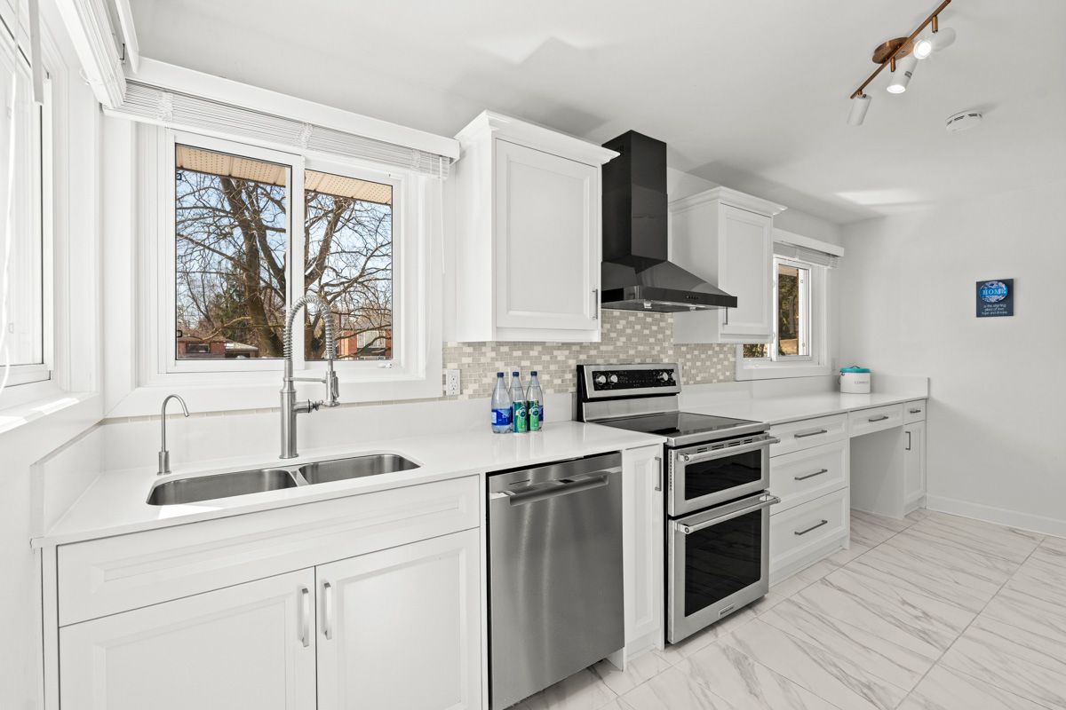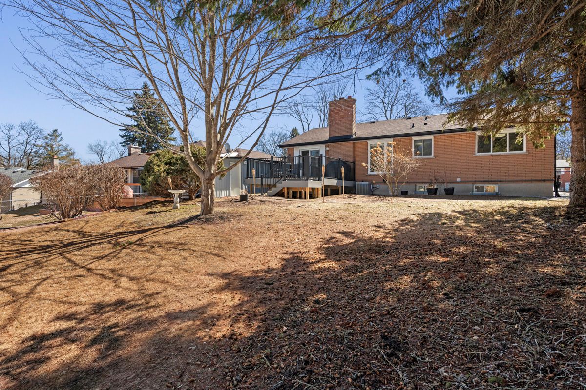 Rarely offered updated bungalow in peterborough's highly sought-after west end, set on a private 83' x 154' lot in a family-friendly neighbourhood close to schools, parks, transit, shopping, golf, hospital access, and more. This beautifully maintained 3+2 bedroom, 3 bathroom home offers exceptional curb appeal with extensive interlocking flagstone patios, retaining walls, and landscaped gardens. Inside, you'll find over $200,000 in updates completed in the past 3 years, including all new flooring, a stunning custom kitchen, updated light fixtures, and all new windows and doors. The gourmet kitchen features timeless white cabinetry, high-end stainless steel appliances, quartz countertops, and a large walk-in pantry. The bright combined living and dining area is filled with natural light and opens to a spacious composite deck, perfect for entertaining or relaxing outdoors. The cozy primary bedroom includes closet organizers and a beautifully updated 5-piece ensuite with double sinks and a custom vanity. Two front rooms are currently used as a home-based spa business and can easily function as bedrooms, a den, or office space. A separate entrance leads to the fully finished lower level with a large rec room, additional bedroom with 3-piece ensuite, office, utility room, and cold room, offering excellent flexibility for extended family, guests, or work-from-home needs. The basement has also been waterproofed for added peace of mind. The detached garage features brand new vinyl siding and new garage doors. Pride of ownership is evident throughout this clean, meticulous home. Pre-listing home inspection report available. Book your showing today and prepare to be impressed.