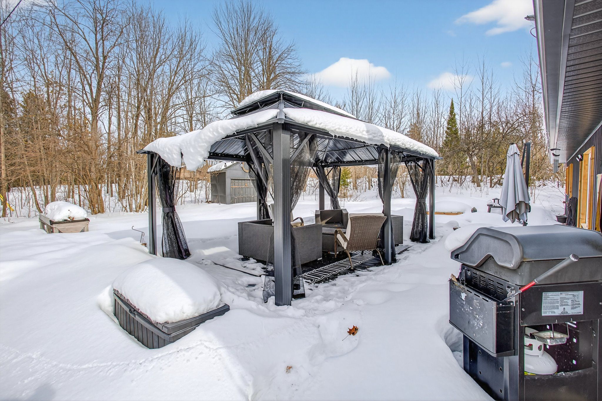 Escape the noise of the city and step into a slower, simpler way of living in the kawartha hideaway community. With deeded access - and your own dock - on buckhorn lake just across the road, your mornings can begin with coffee under the gazebo out back and your evenings with sunset cruises. As part of the renowned trent-severn waterway, you'll enjoy endless boating, excellent fishing, and access to interconnected lakes throughout the region. A community boat launch is located just down the road, and the village of buckhorn is only 11 minutes away for shopping, dining and peterborough is conveniently only a 30 min drive. Set on approximately half an acre and surrounded by mature trees, this low-maintenance property is designed for relaxed country living. The gravel driveway offers a circular drive with two entrances providing easy year-round access. This three-bedroom bungalow has been extensively refinished inside and out and is move-in ready. Step out from the kitchen or third bedroom/office to a north-facing back deck and gazebo. The open-concept kitchen and living area, anchored by a beautiful wood stove, create a warm and welcoming space for gathering. Two bathrooms offer comfort and functionality. One features a shower, toilet, and sink for everyday convenience. The second provides a more spa-like retreat with a beautiful soaker tub and generous closet space - giving you room to unwind and recharge at the end of the day. An attached garage with man-door access to the home adds everyday convenience, and three additional sheds provide ample storage for tools and recreational gear. Beyond the property line, outdoor adventure awaits with nearby trails and six foot bay golf course just minutes away. If you've been dreaming about trading traffic for trees and deadlines for dock time, this is your opportunity to embrace country calm without giving up connection.