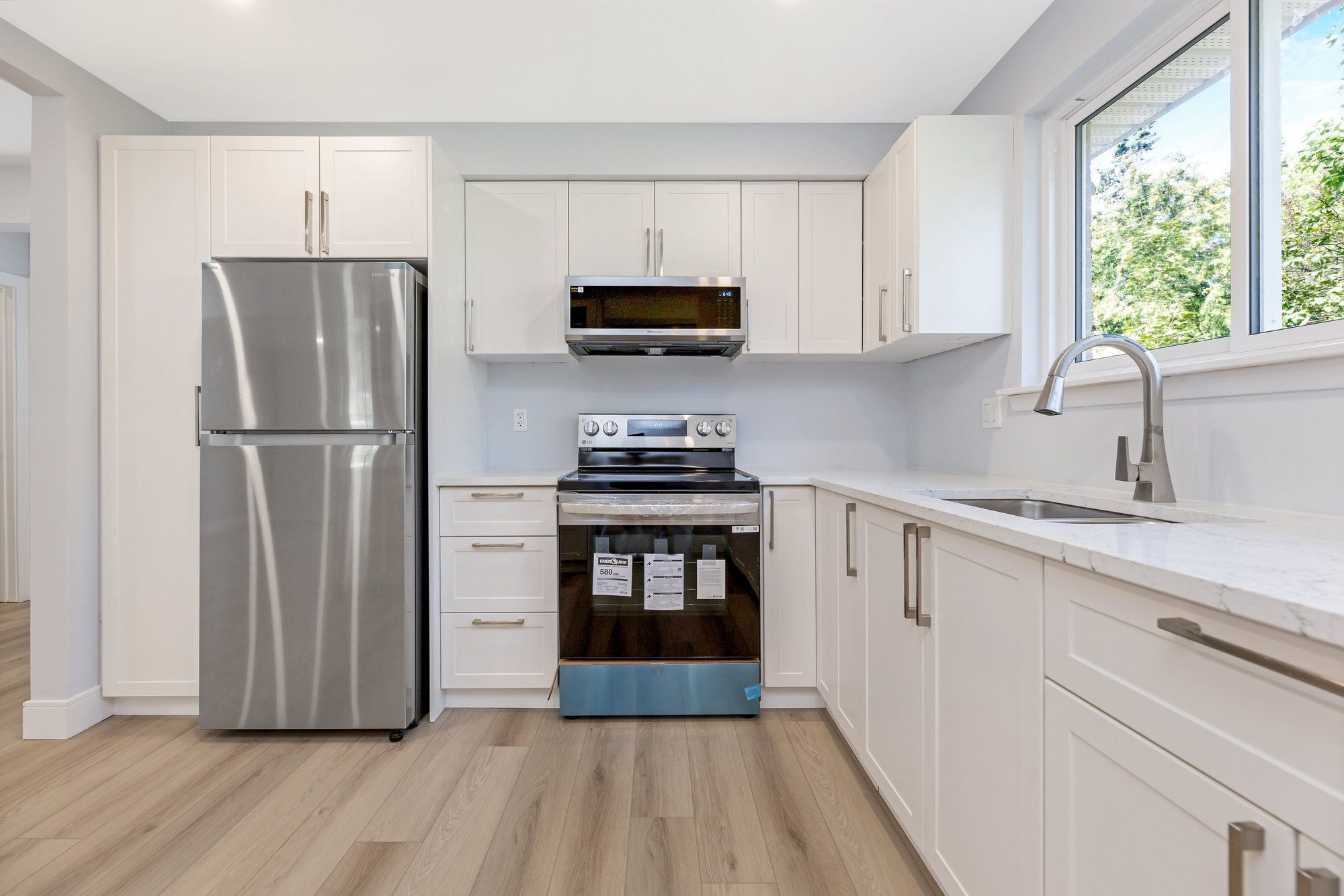Move-in ready! Make this fully renovated semi-detached the place you call home! This stunning 3-level back-split offers approximately 1,743 sq ft of living space plus approx 500 sq ft crawl space for extra storage. Recently updated from top to bottom featuring 3 bedrooms and 3 washrooms. Enjoy a brand-new never used kitchen with stainless steel appliances, fully updated bathrooms, brand new flooring and fresh paint throughout. The finished basement includes a kitchenette, 3-piece bath, and above-grade windows providing lots of natural light-perfect for extended family or guests. Updates include a new electrical panel (2025) (esa inspected), roof shingles, windows (2025), cac (2025), kitchen with quartz counters (2025), renovated bathrooms (2025), all new flooring (2025), and freshly paved driveway (2025). The two above grade floors are approx 1151 sq ft + 592 sq ft finished basement + 500 sq ft crawl space = 2,243 sq ft total useable space. This property has a large private backyard and offers ample space for gardens and outdoor enjoyment.