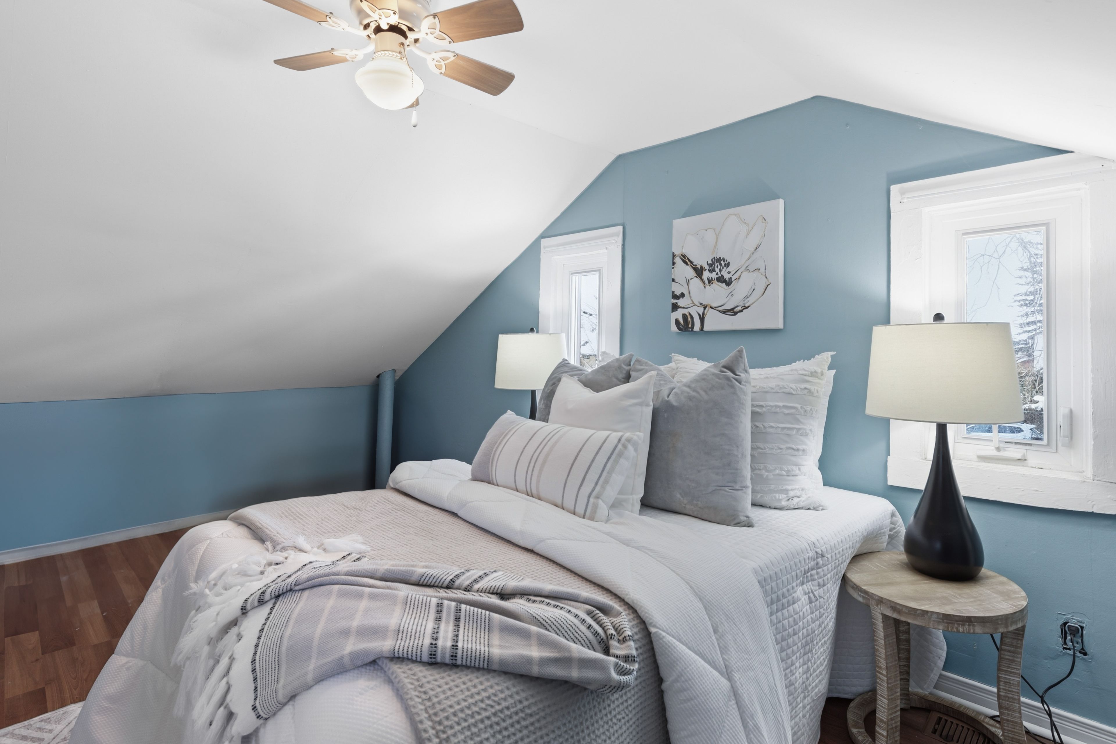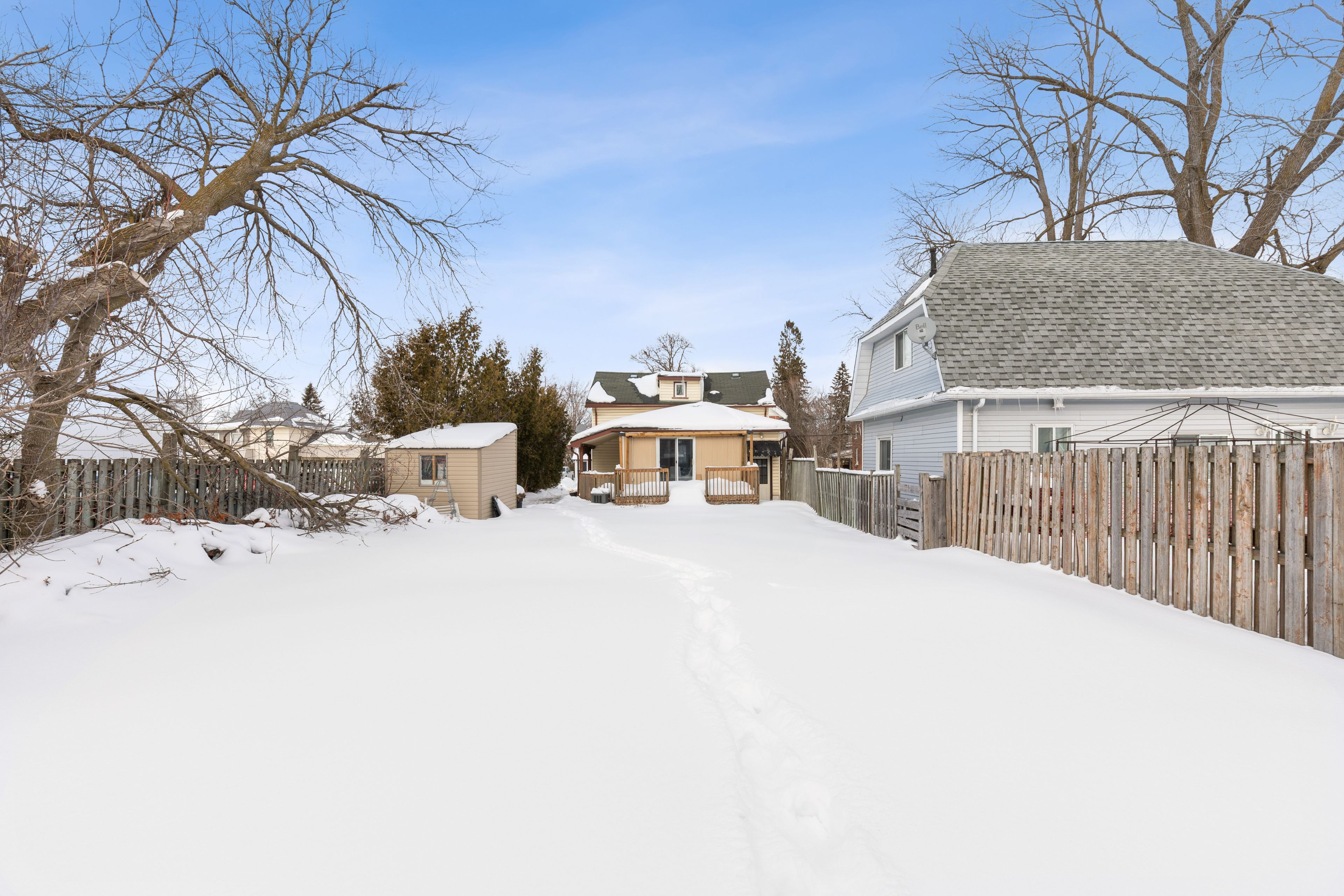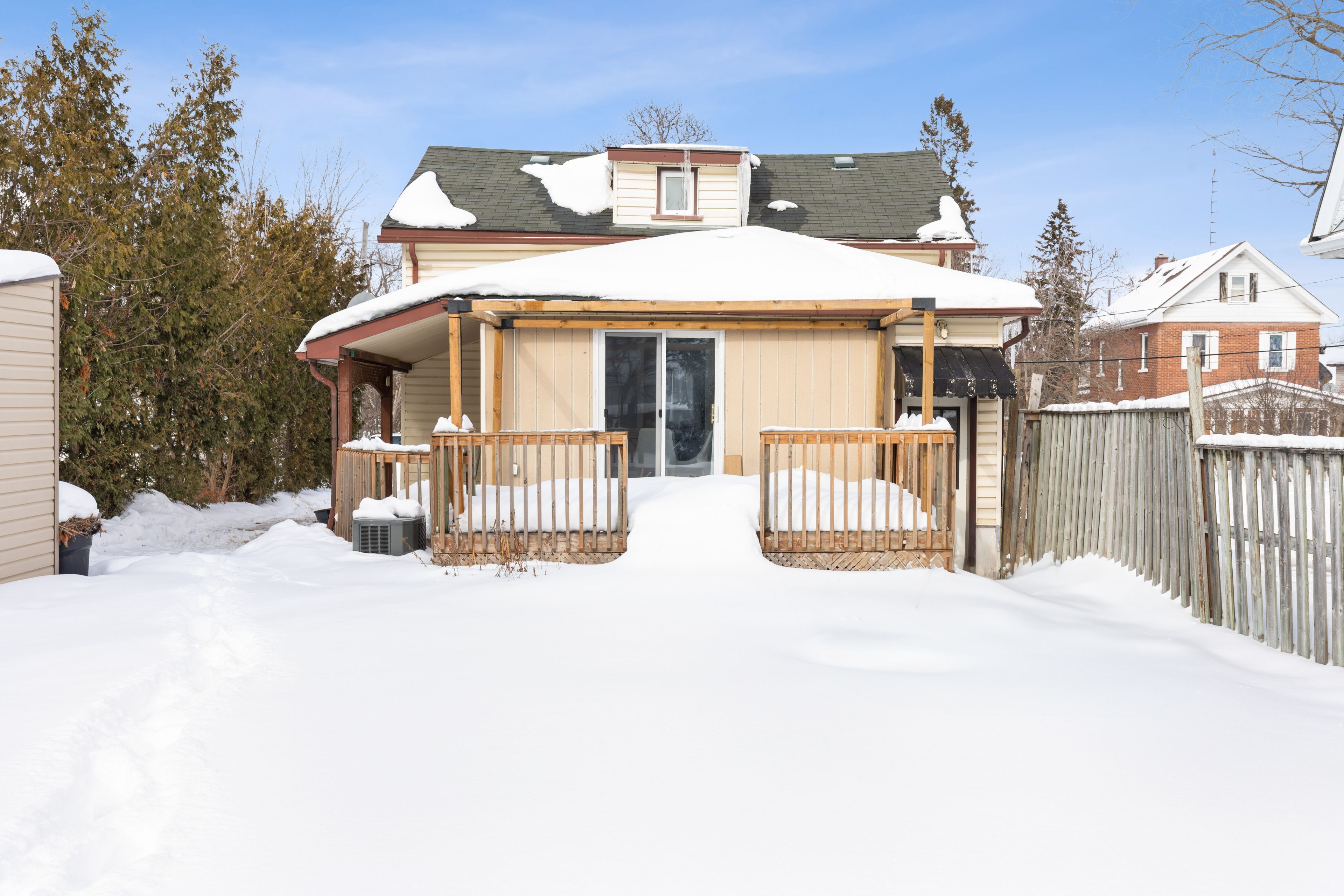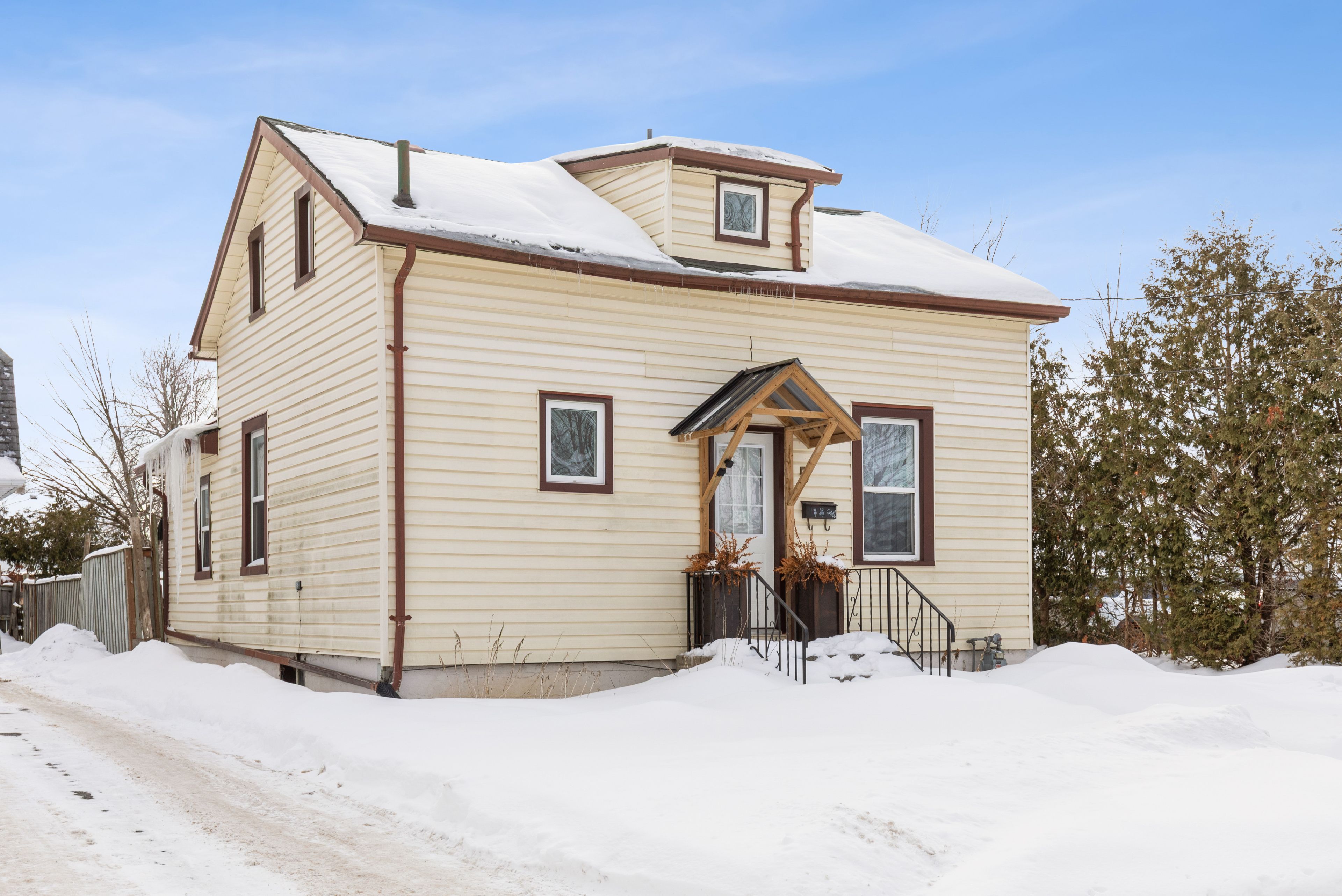 This charming century home offers excellent value for first-time buyers or savvy investors. Features include 3 bedrooms, 3 bathrooms, newer shingles, vinyl windows and siding, and parking for up to multiple vehicles. The bright eat-in kitchen overlooks the large, fully fenced backyard and offers a convenient walk-out to an updated deck, perfect for entertaining or relaxing outdoors. Main floor bedroom or office, full bath & laundry. Second floor includes bedrooms, bathroom, spacious walk-in linen closet for added storage. The lower level while featuring a lower ceiling, provides a surprising amount of living space, sink/cabinetry, and a separate walk-out to the rear yard-ideal for future potential. Covered side porch, storage shed, metal garden sheds perfect for extra storage. This home is centrally located walking to hospital, downtown shopping, schools & walking to waterfront trails. Make this your next home.