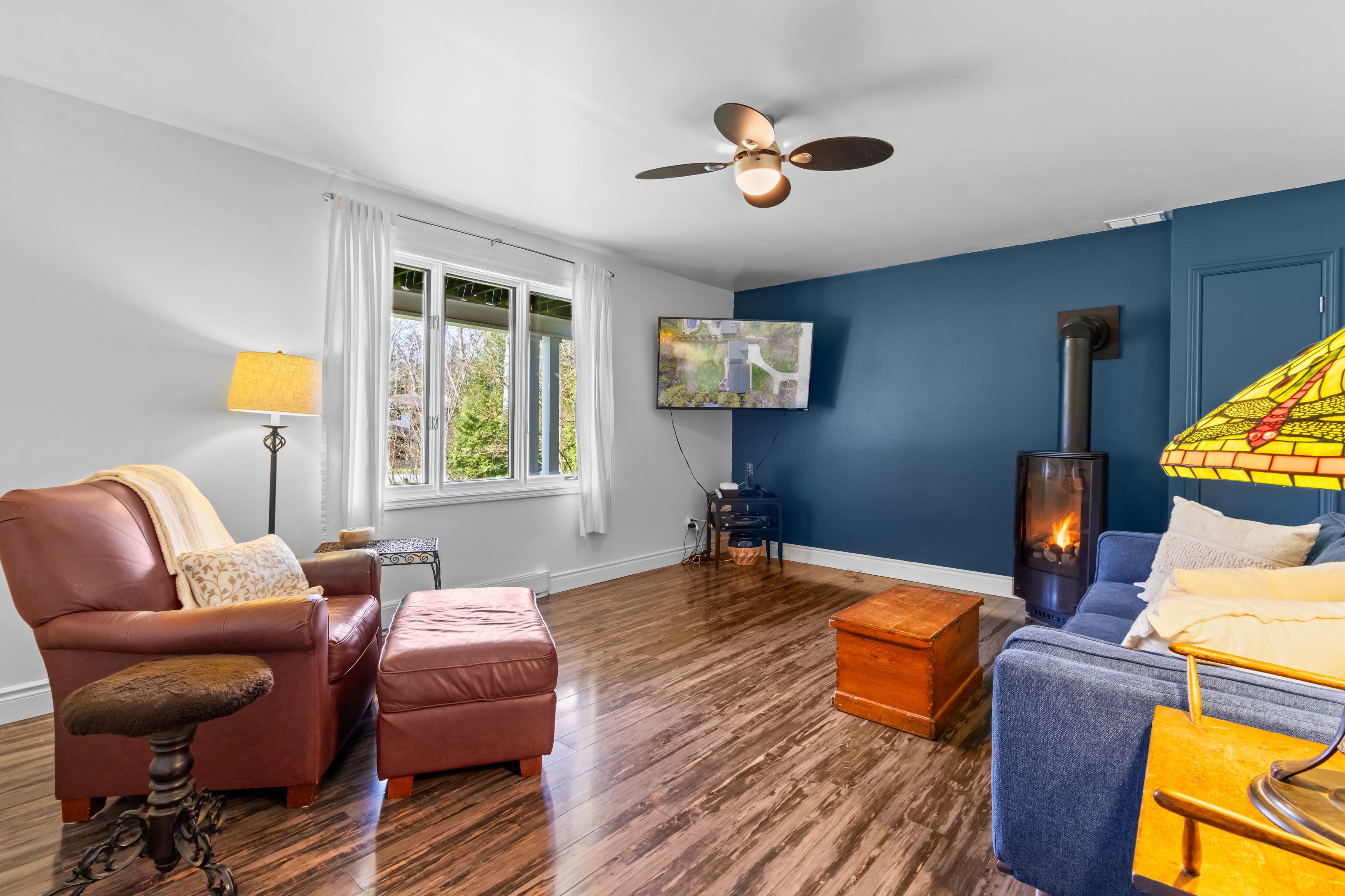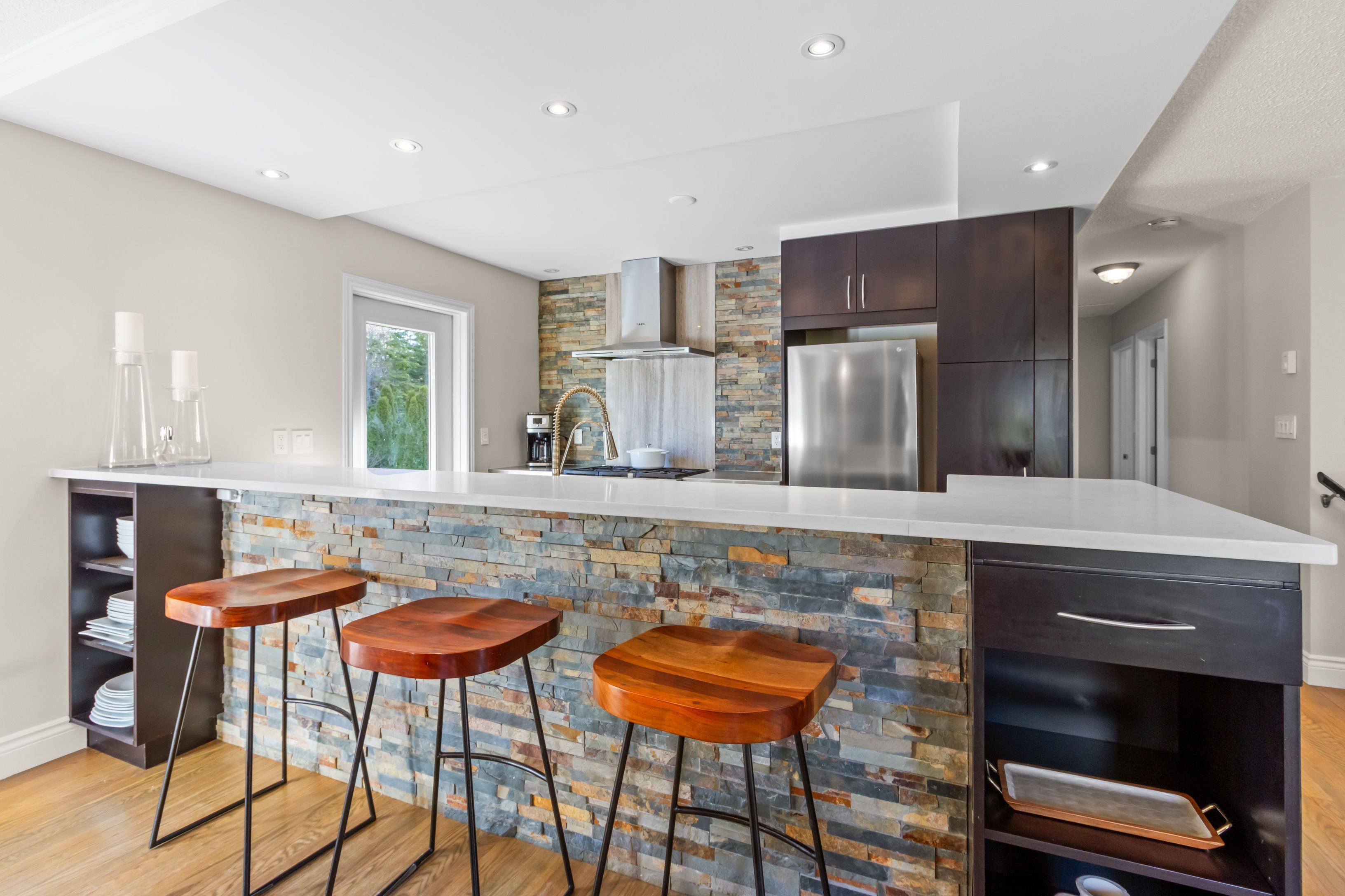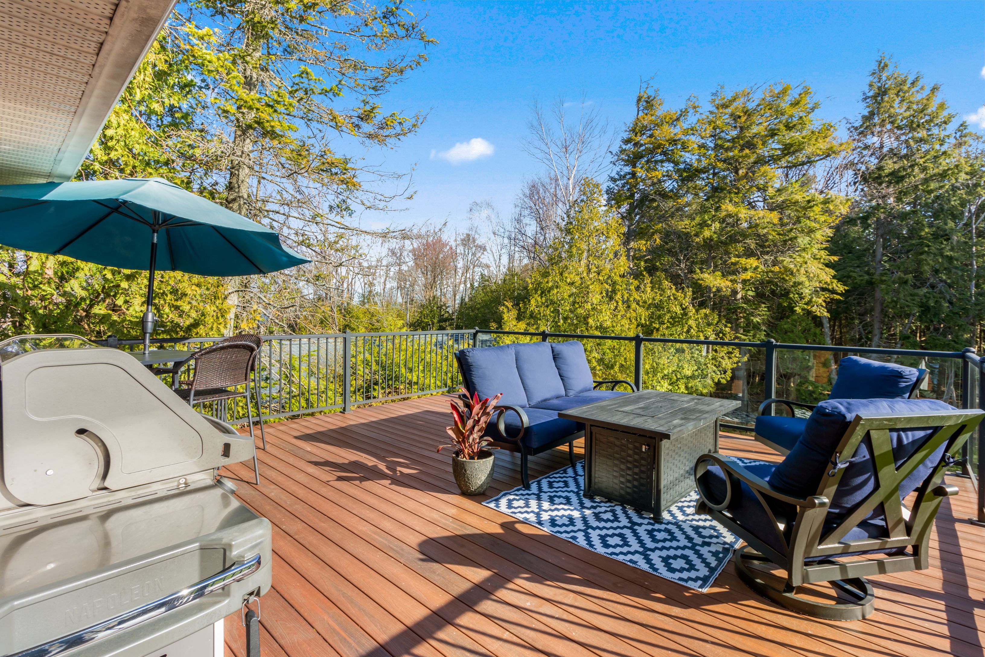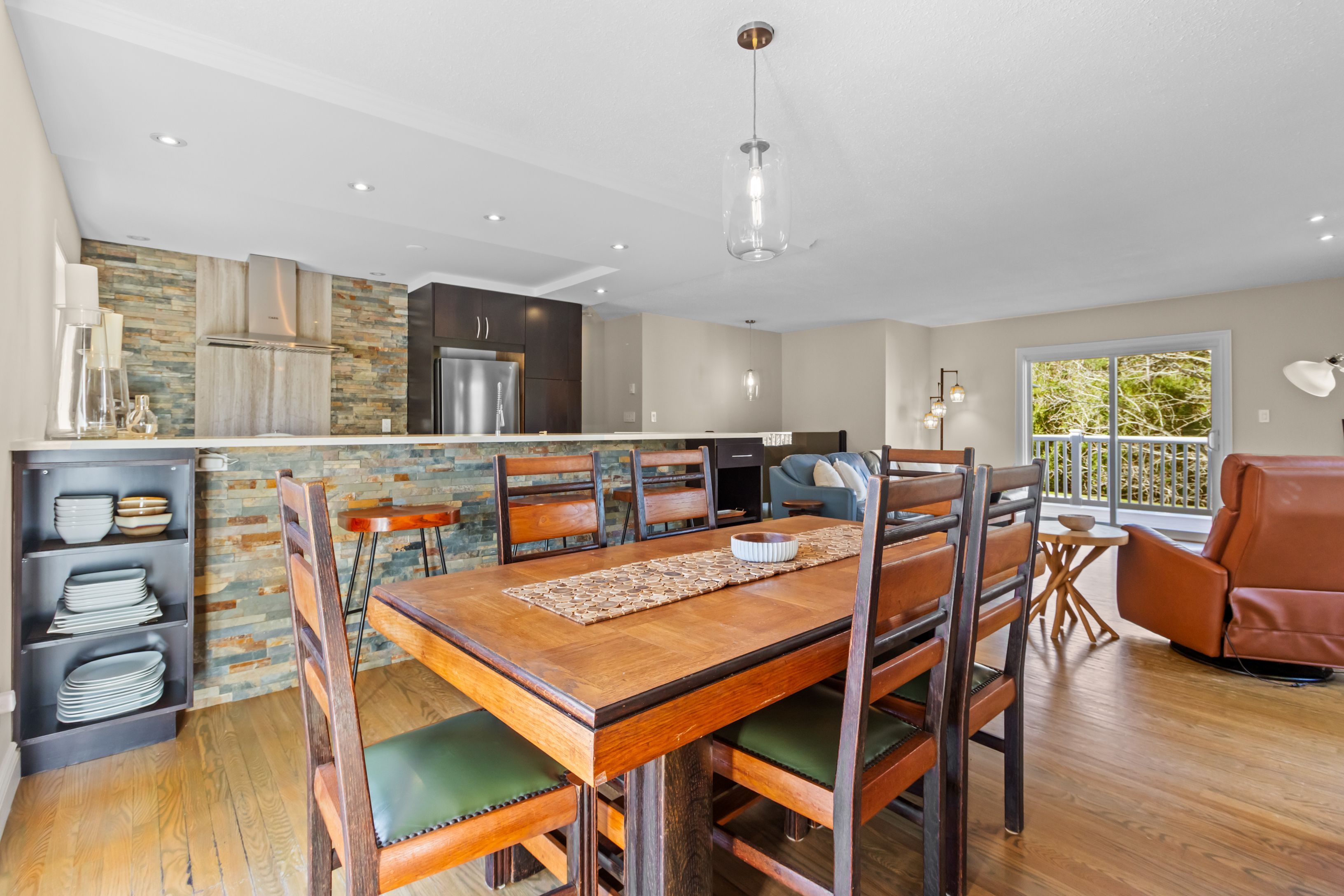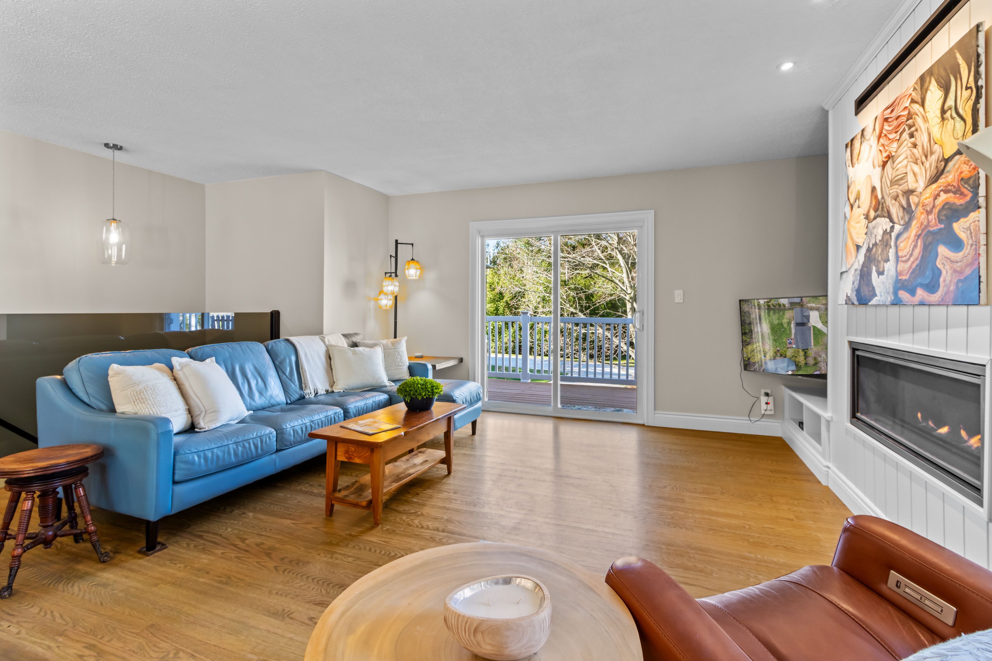 A distinctive raised bungalow in one of saugeen shores' most desirable pockets, just a short 3-minute walk to the sandy shores of gobles beach. Set on a beautifully private 100 x 215 ft lot backing onto mature trees, this property offers a rare blend of space, privacy, and lifestyle. The upper level showcases a bright, open-concept living, dining, and kitchen area designed for both everyday living and effortless entertaining. Step out to the expansive rear deck with sleek glass railings that frame the natural surroundings, along with a second elevated patio at the front of the home. The updated kitchen features rich cabinetry, quartz countertops, stainless steel appliances, and a wolf gas stove. The living room is anchored by a modern gas fireplace with shiplap detailing, while large windows throughout fill the space with natural light. This level also offers three well-sized bedrooms and a stylishly updated bathroom with double sinks and a generous walk-in shower. On the main floor, you'll find additional versatile living space including a large bedroom, a second bedroom or flex room currently used as a fitness area, and a cozy family room with a european-style gas fireplace-perfect for relaxed evenings. The thoughtfully designed bathroom combines patterned tile, classic subway tile, and wallpaper accents, creating a space that feels both timeless and refined. A functional mudroom, main floor laundry, and direct access to the oversized double garage complete this level. Above the garage, a separate approximately 650 sqft suite offers exceptional flexibility with its own kitchen, bathroom, bedroom, and living space-ideal for guests, extended family, or potential income. With over 2,900 sqft of living space, a serene treed backdrop, and port elgin downtown just minutes away, this is an opportunity to enjoy a more relaxed, coastal lifestyle in a quiet, established setting. Be sure to book your private showing today.