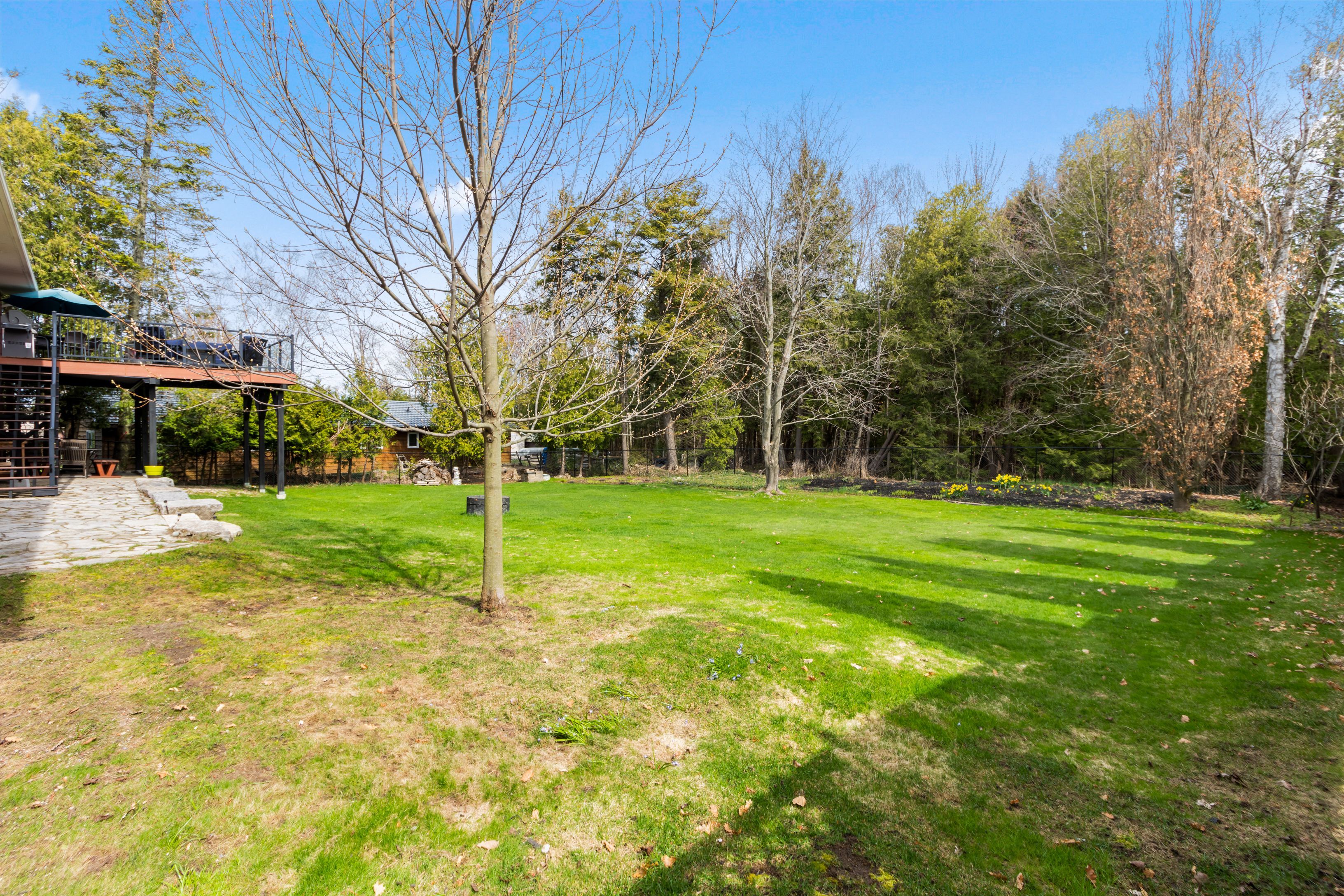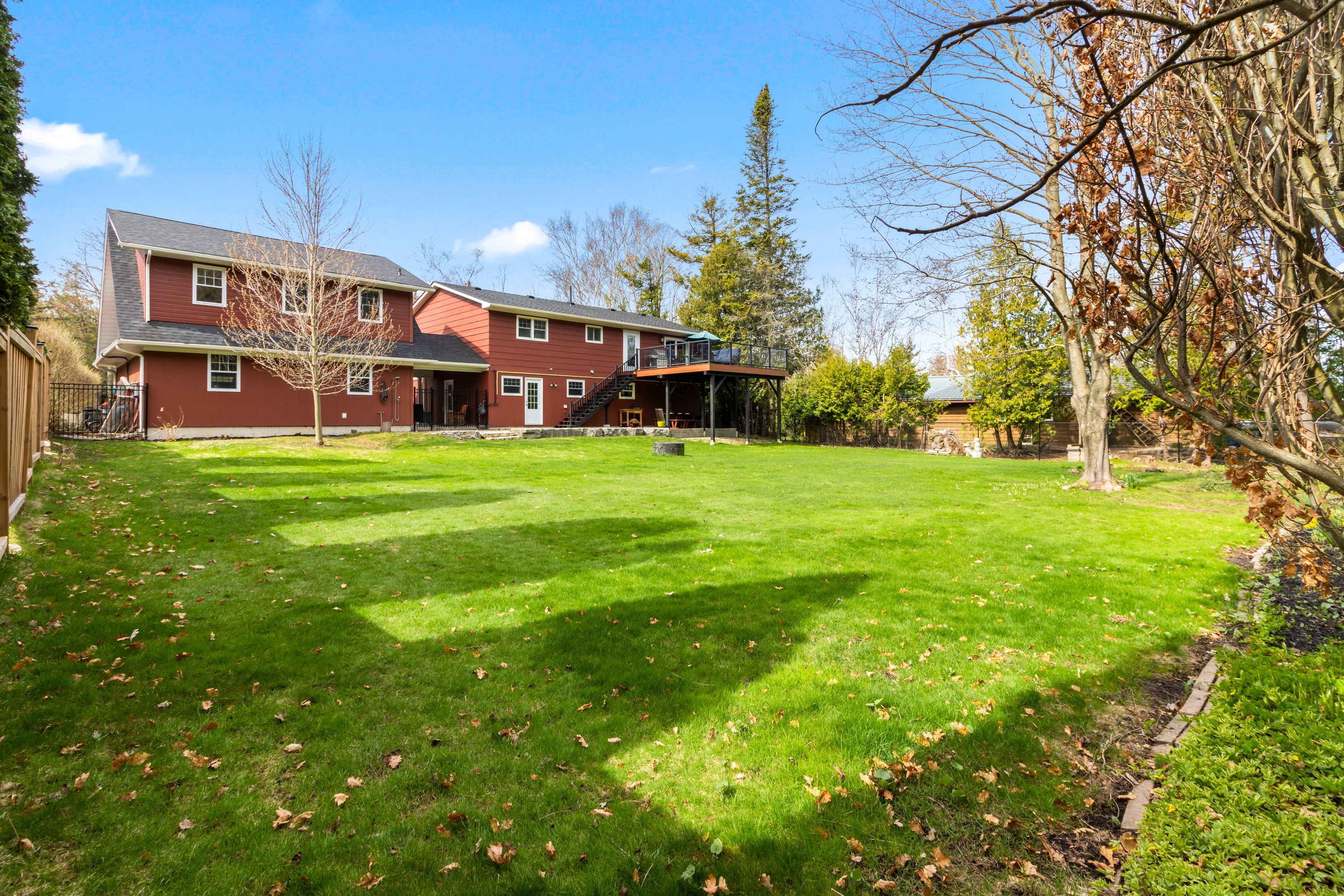 • Private 100 x 215 ft lot with mature trees for added space.