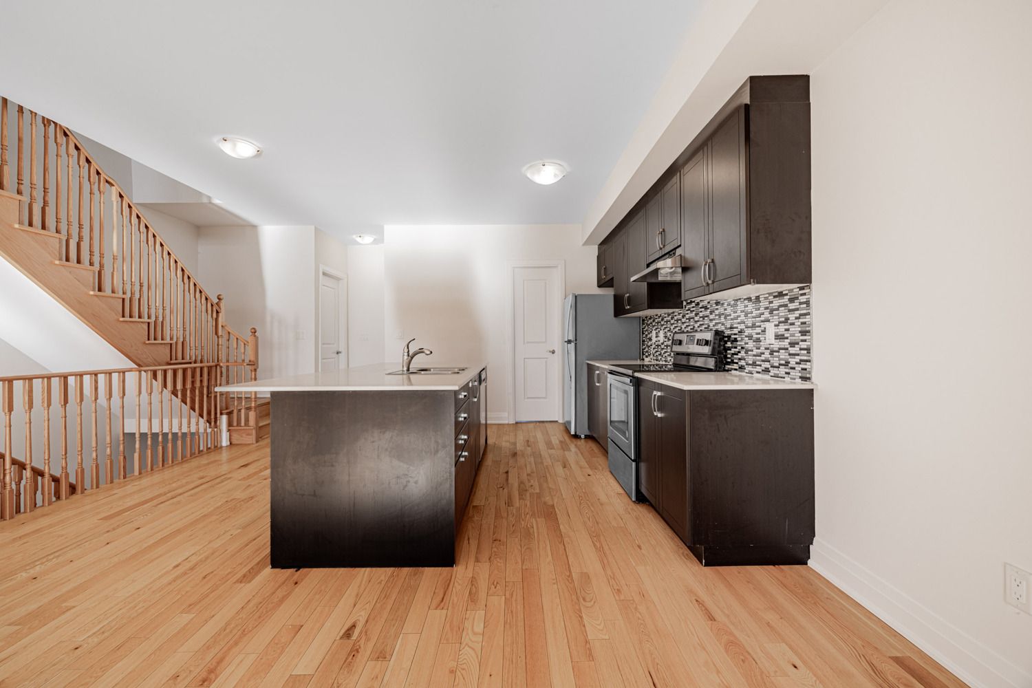 • Open-concept kitchen with quartz countertops and stainless steel appliances.
