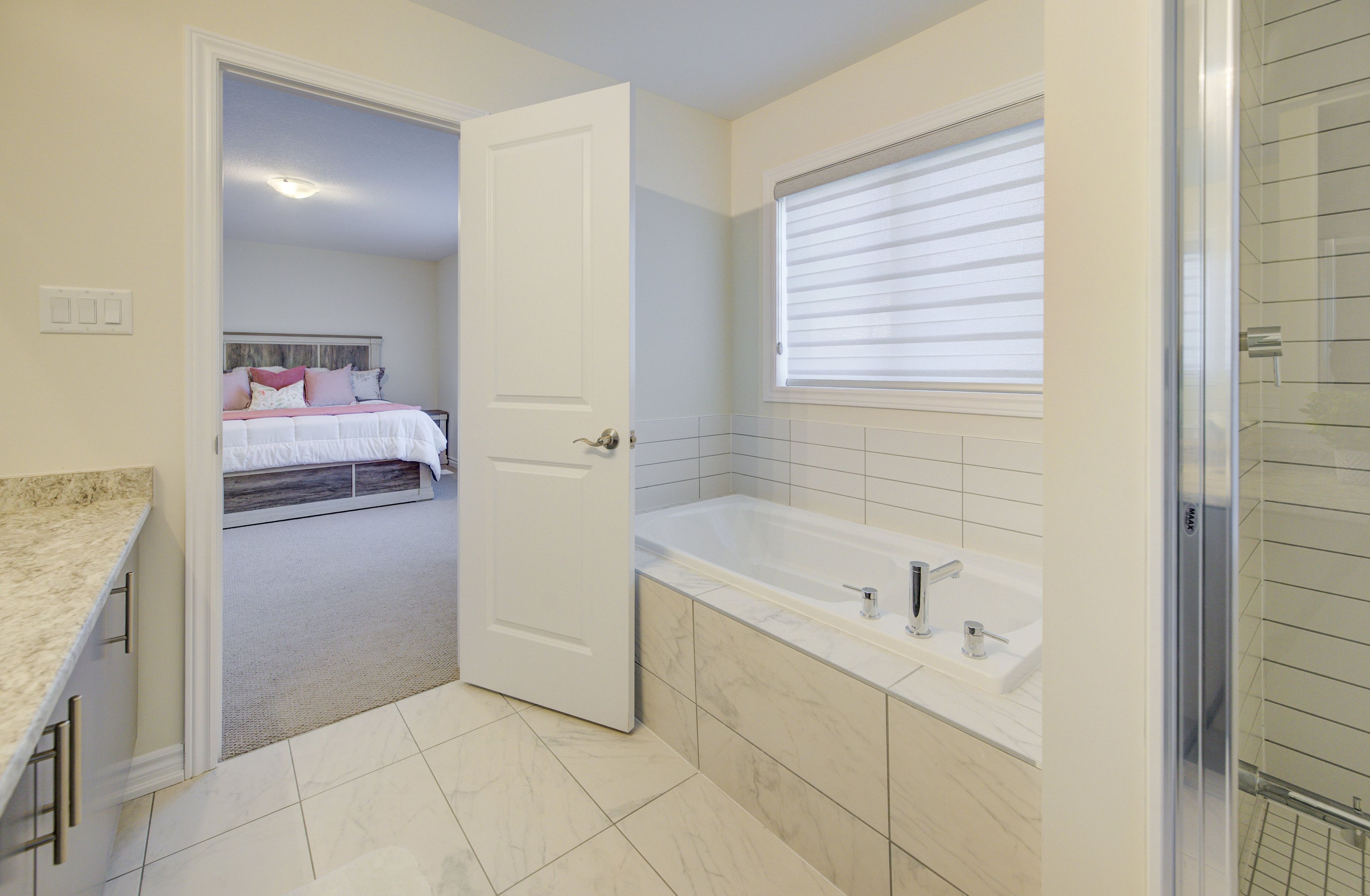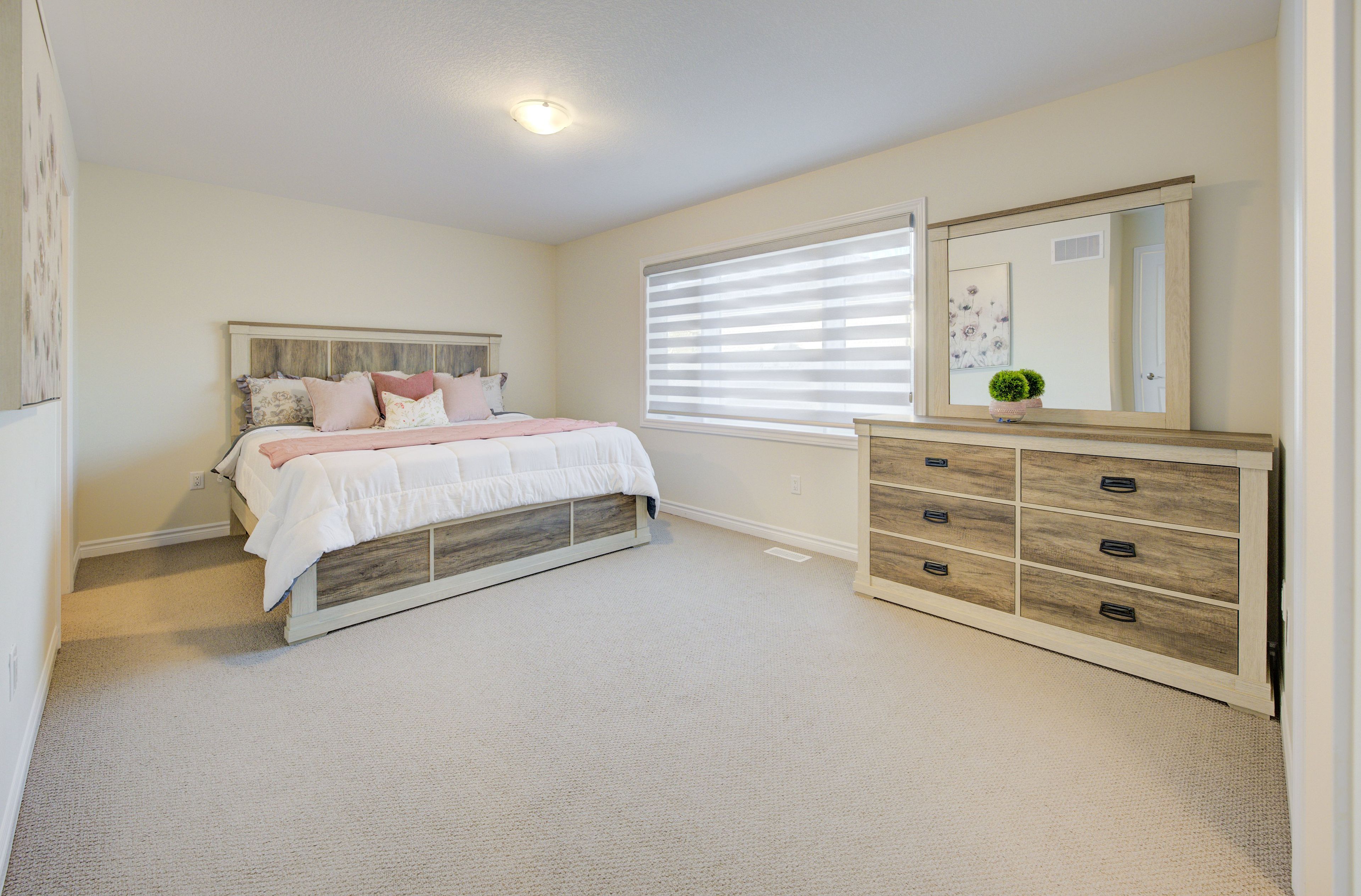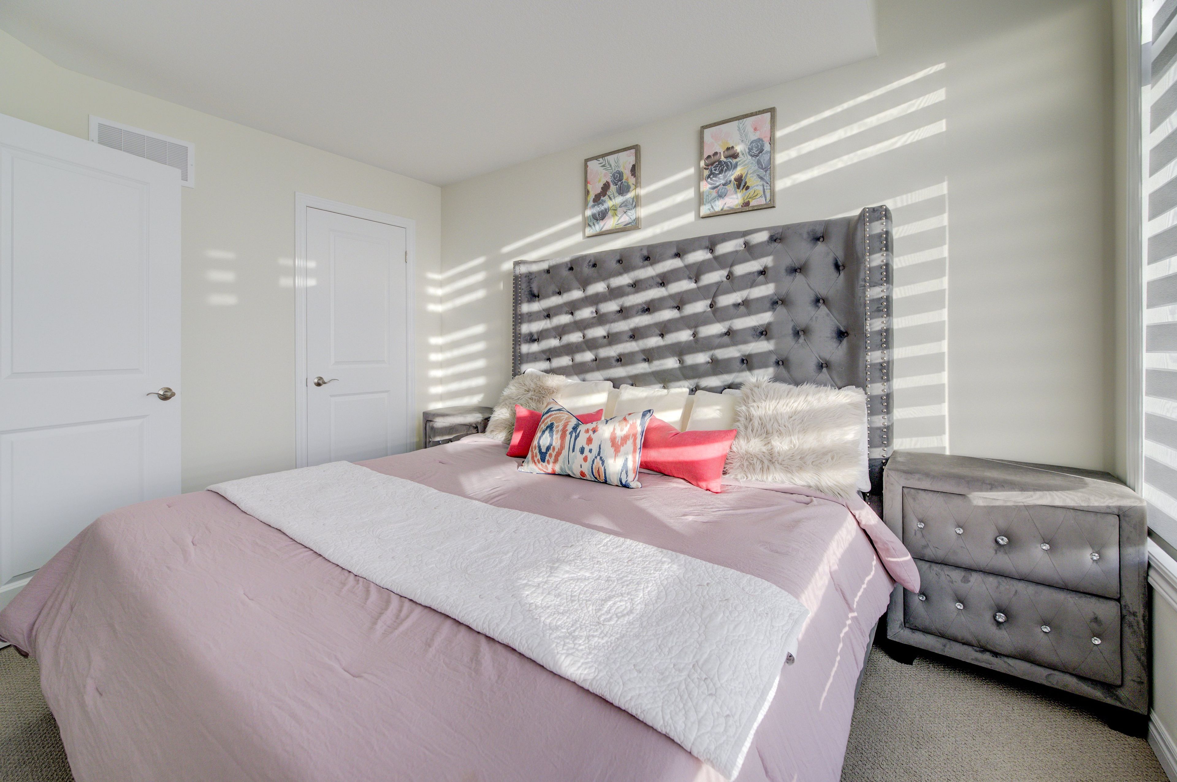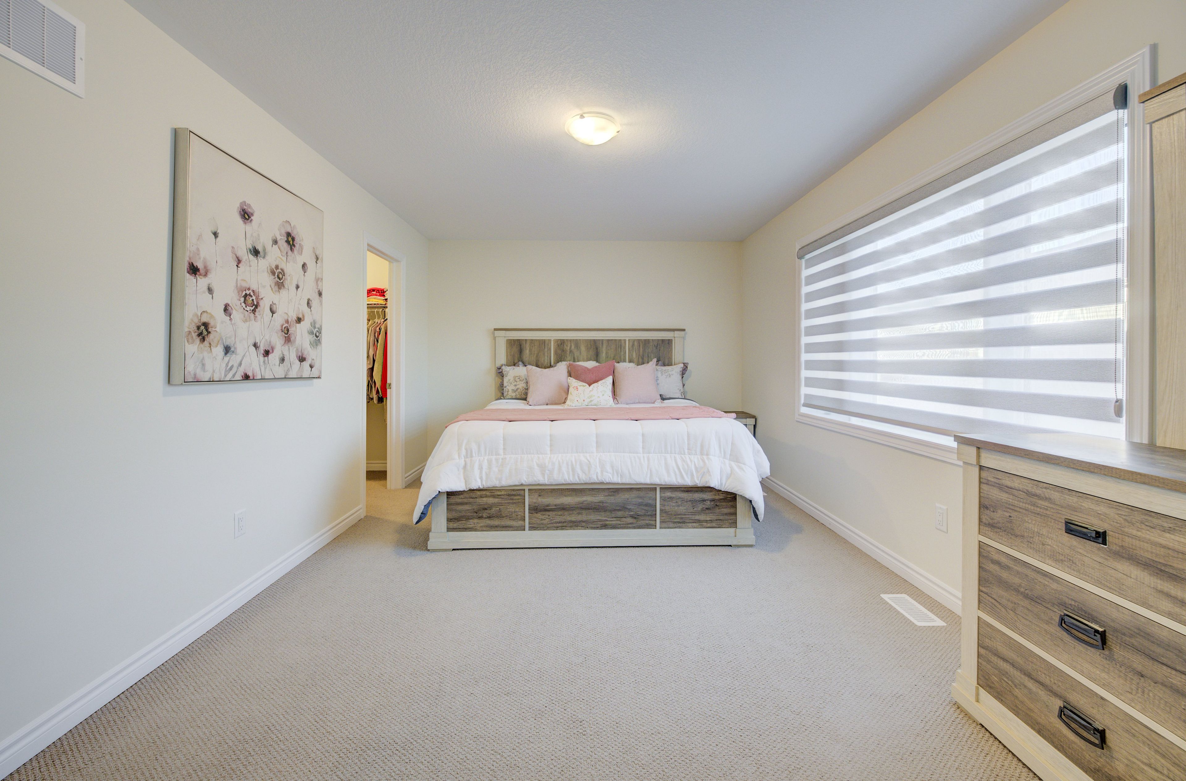 • Elegant primary bedroom with two walk-in closets and ensuite.