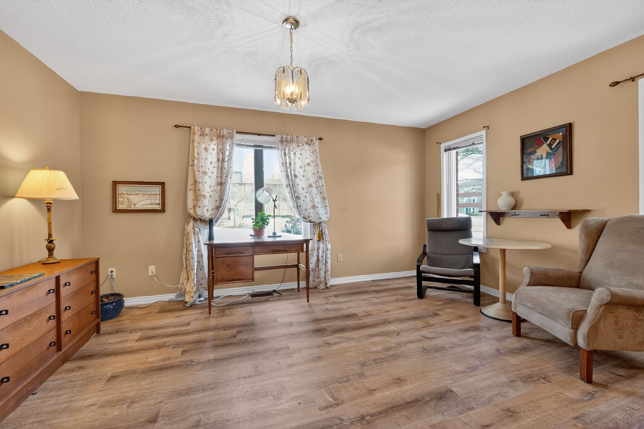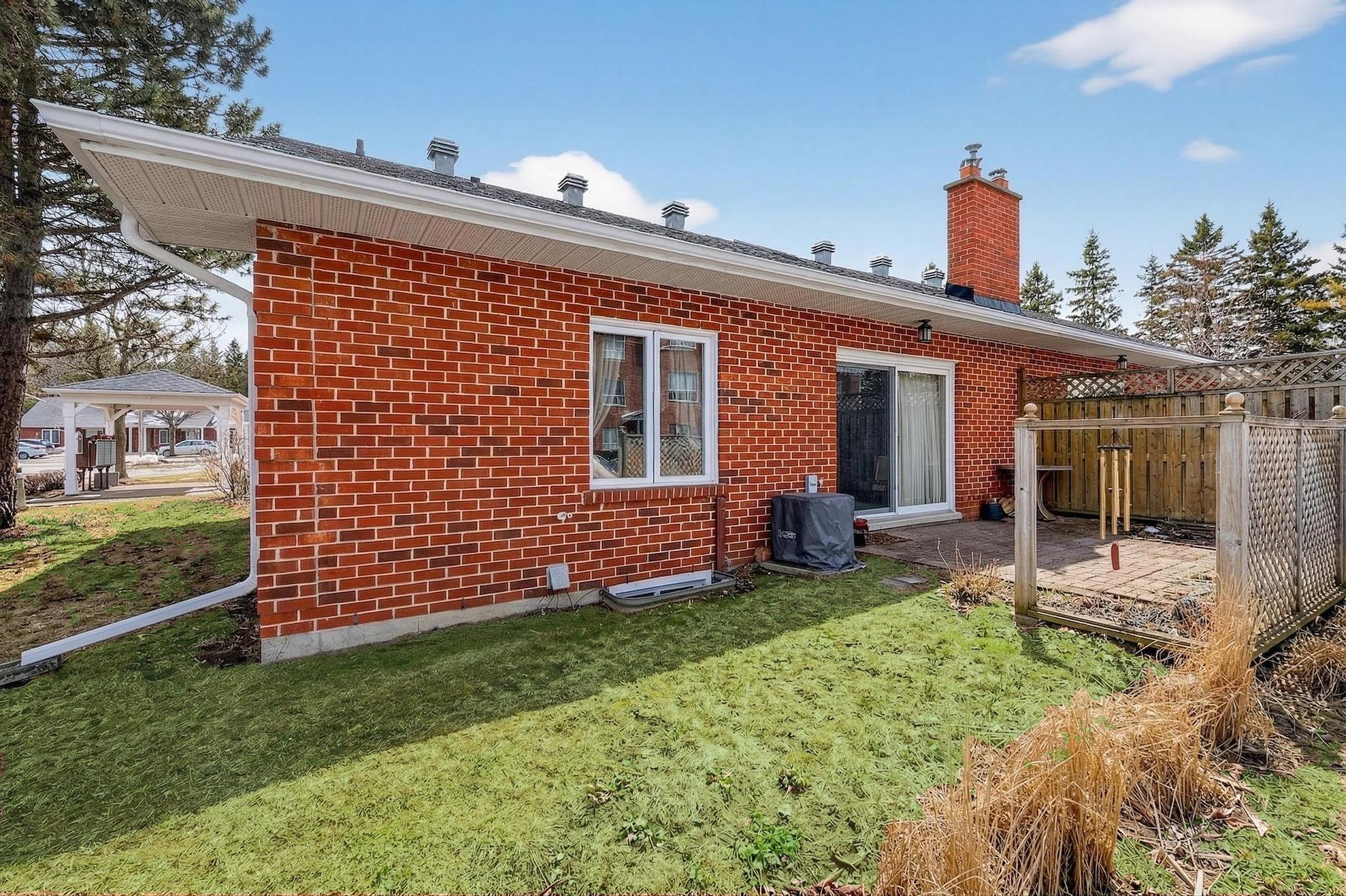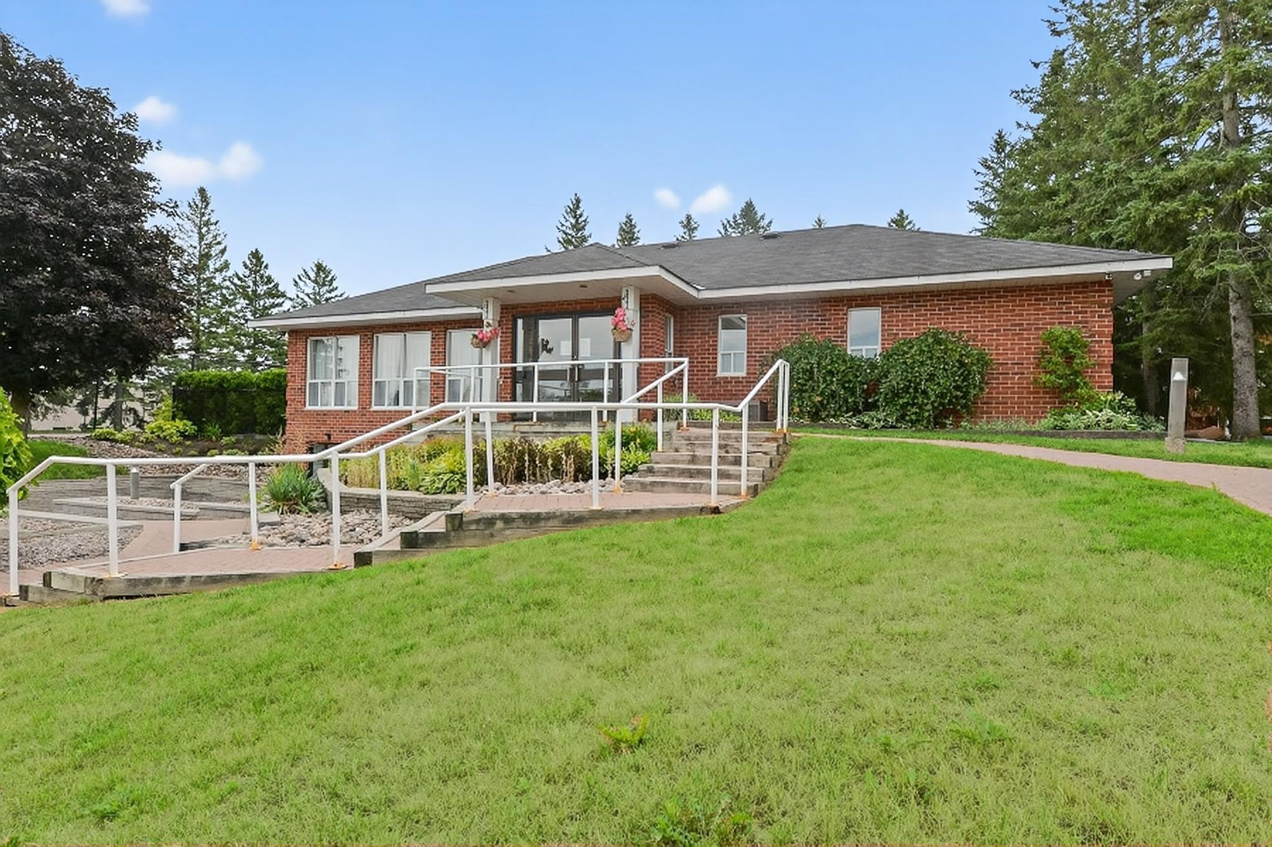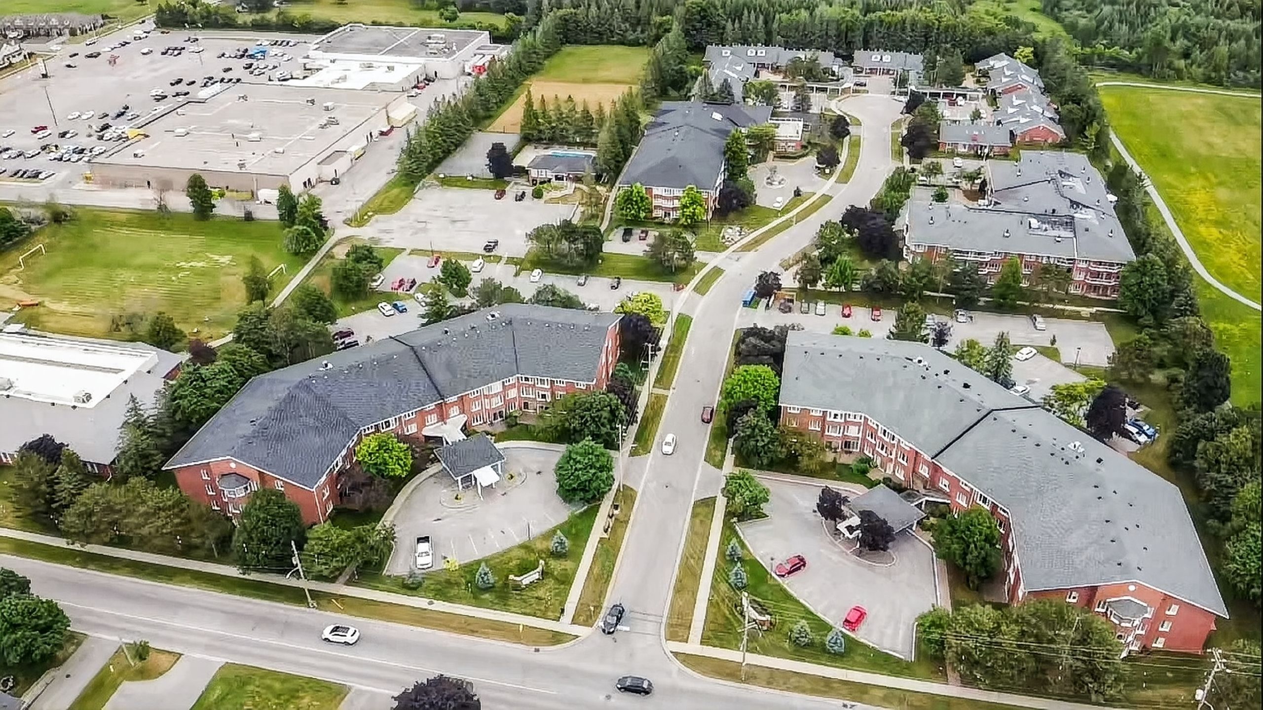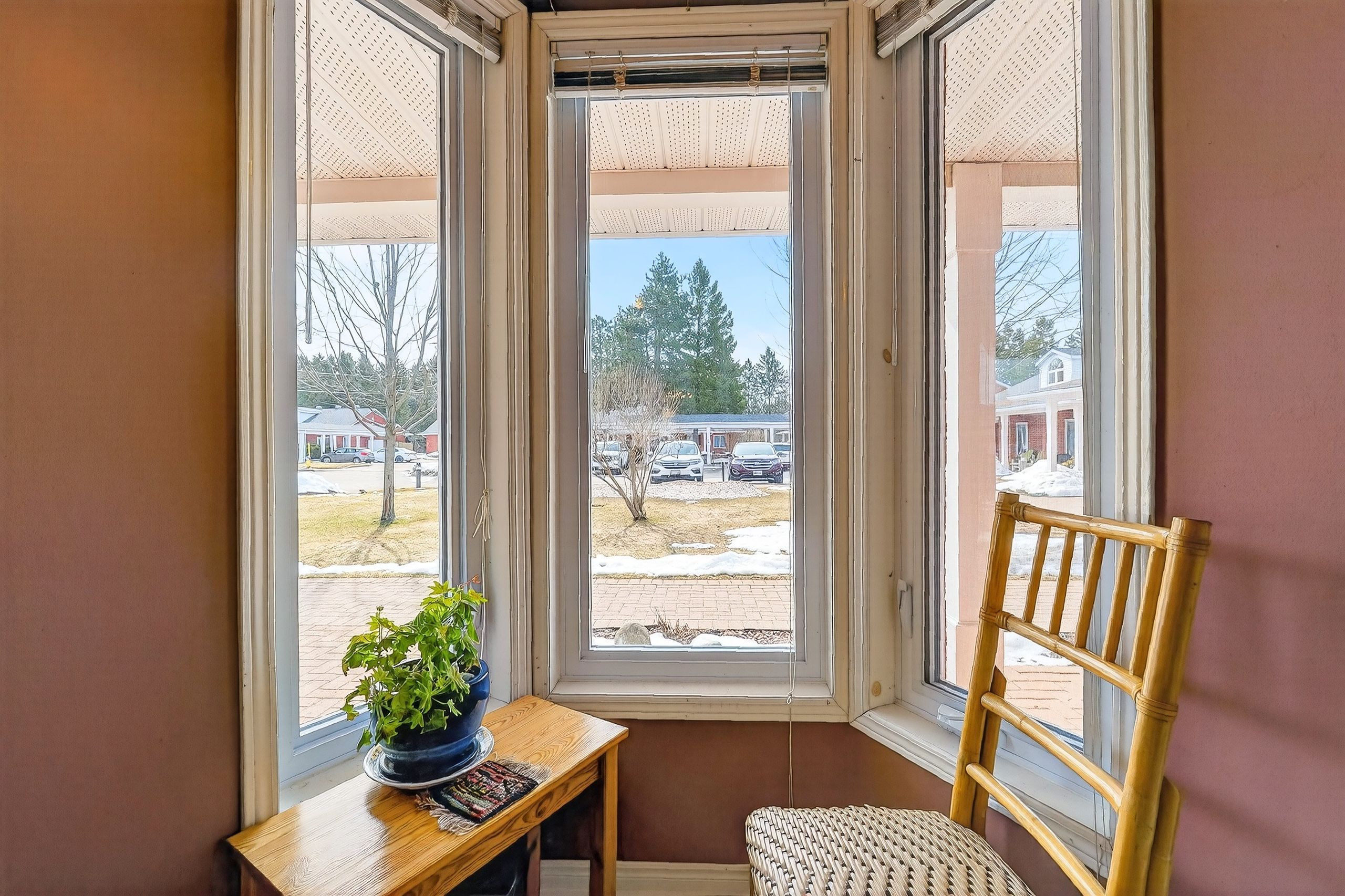 Elevate your everyday in this centrally located end-unit bungaloft, where 'downsizing' truly means upgrading your lifestyle. Peace, quiet & perfect proximity! A few blocks from ross memorial hospital, transit, shopping, restaurants & parks to walk your pet. Just leave your car at home. Tucked away in a serene townhouse cluster, this 1400 sqft. + 2- bedroom 3 - bath bungaloft offers a fabulous maintenance-free lifestyle. Soaring vaulted ceilings & open loft with 2 skylights. Oversized dining/living area easily fits your hutch & dining table. Warm ambience: modern flooring, calming décor, a classic brick gas fireplace & a walkout to a brick patio. Easy living: two main-floor bedrooms, primary suite with ensuite. Basement: two finished rooms plus extensive workshop space. 5-star amenities: large party room, games room (pool & shuffleboard), and a sparkling inground pool. Think downsizing means leaving your treasures behind? Think again. Infinite possibilities! If you've been waiting for the perfect pet-friendly, 'lock-and-leave' lifestyle, this is your moment.