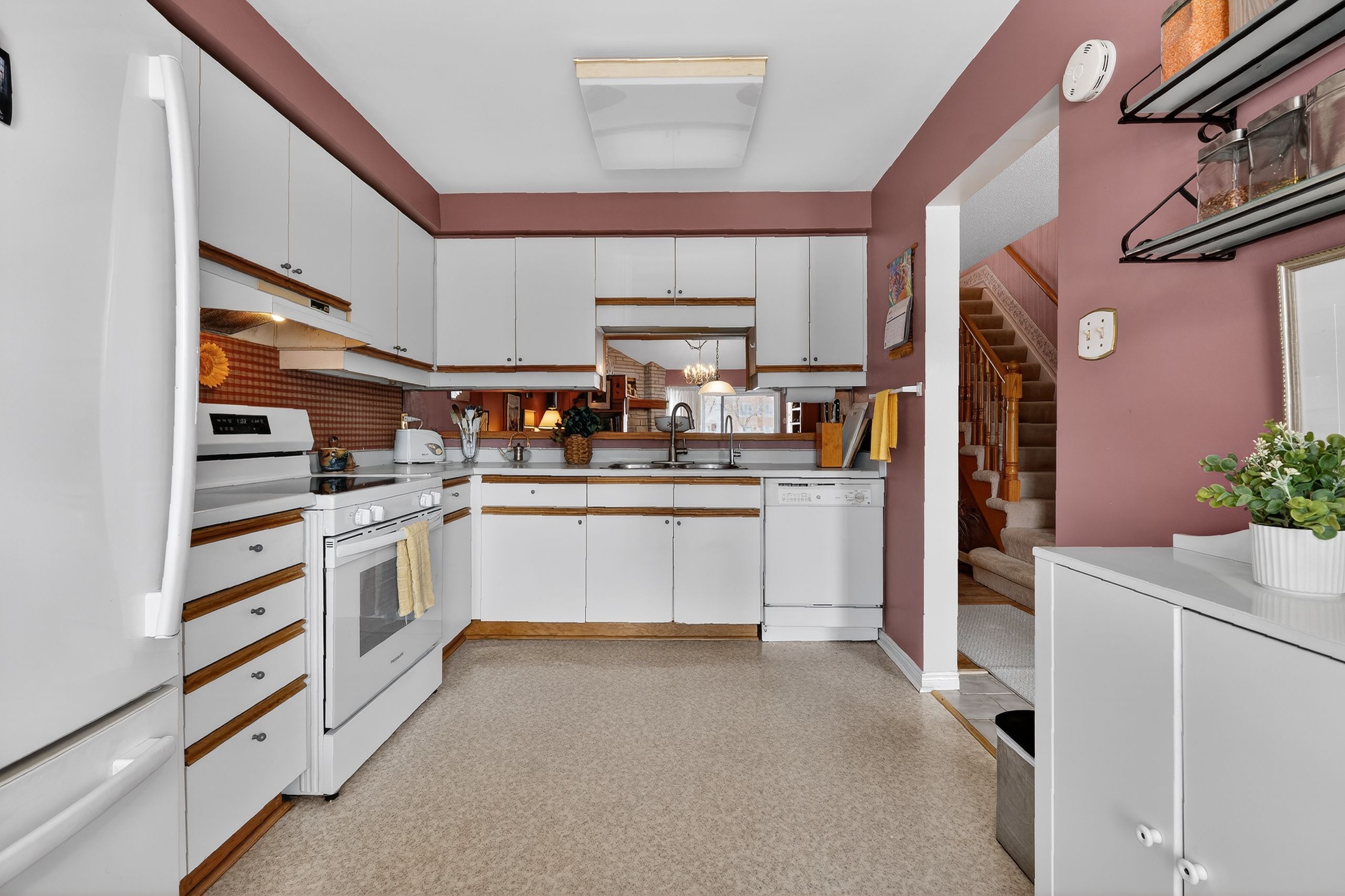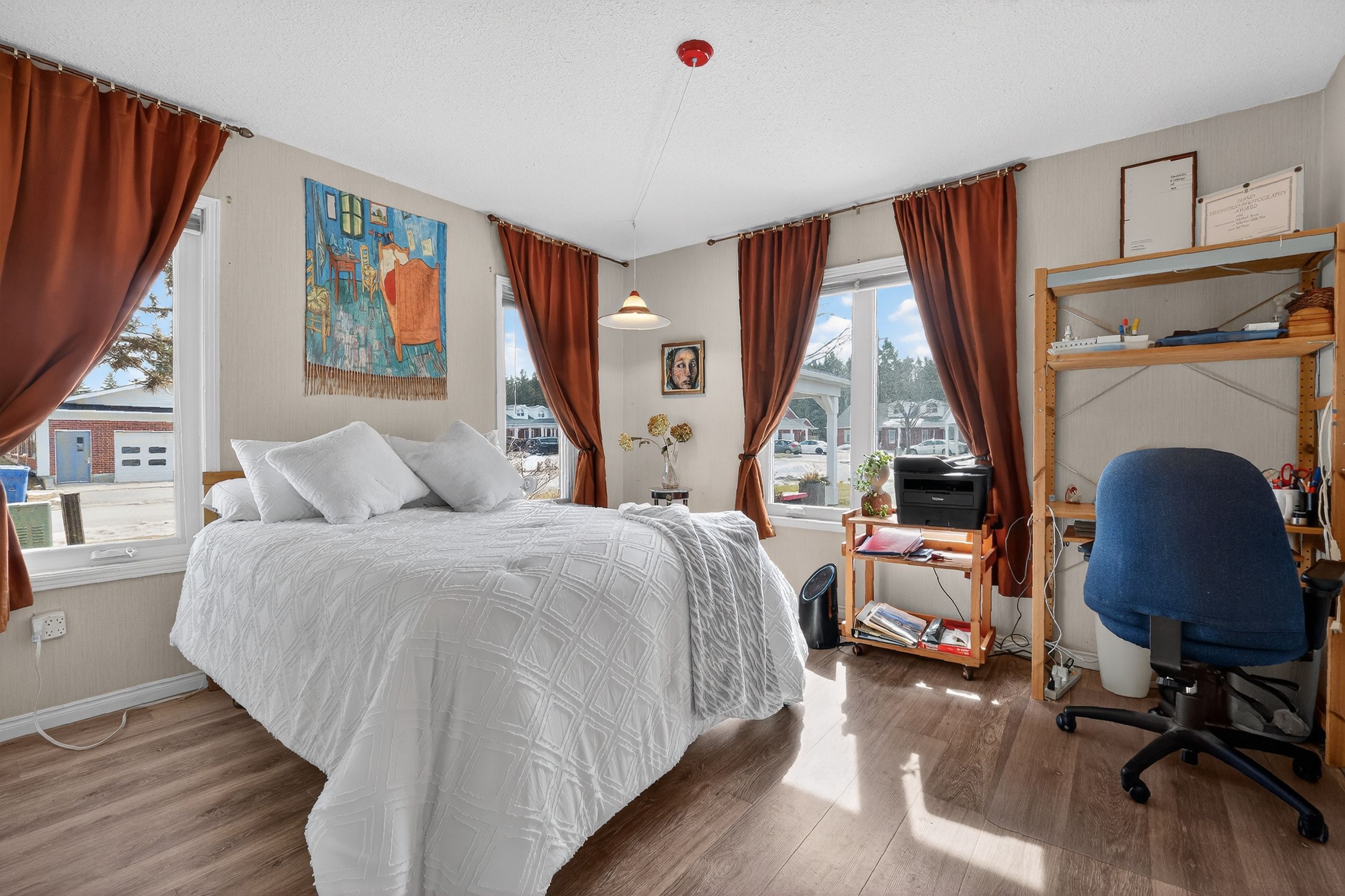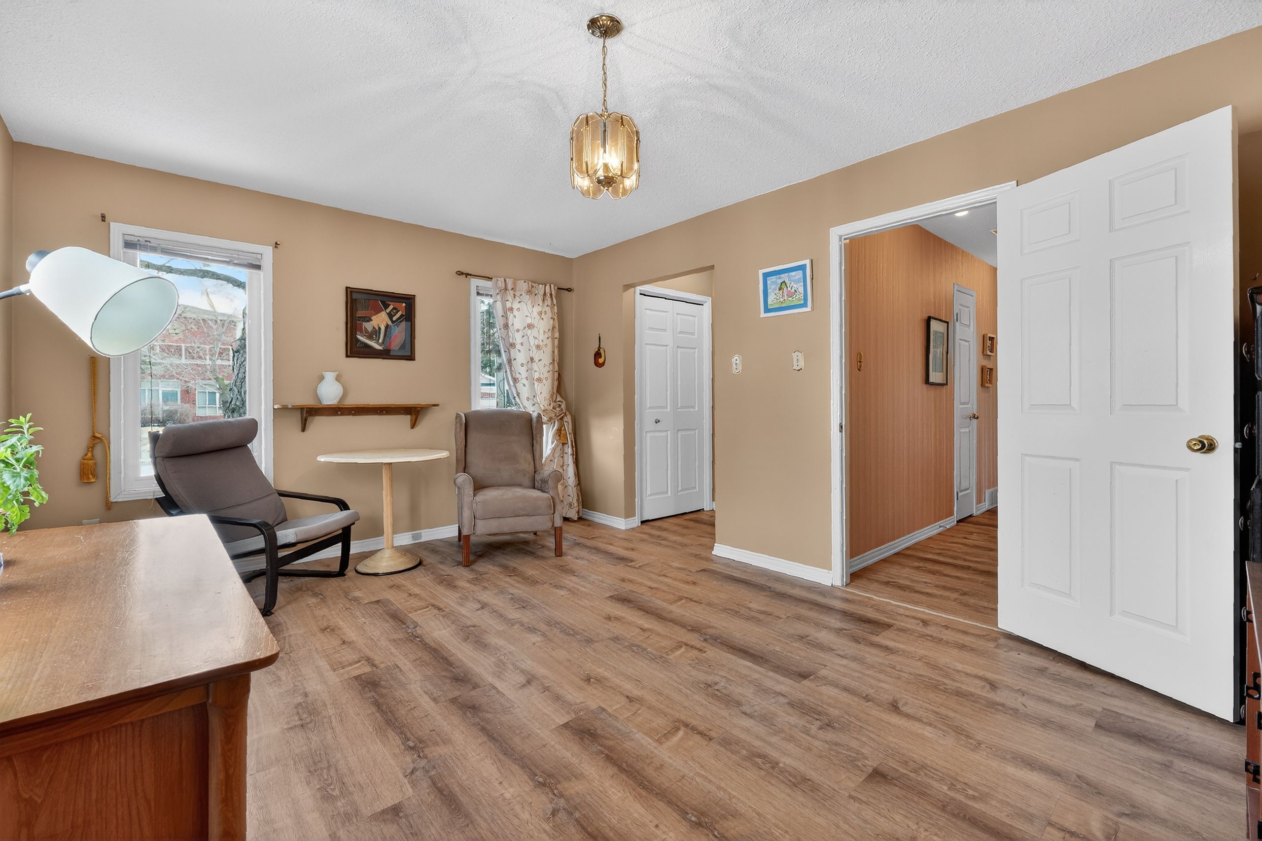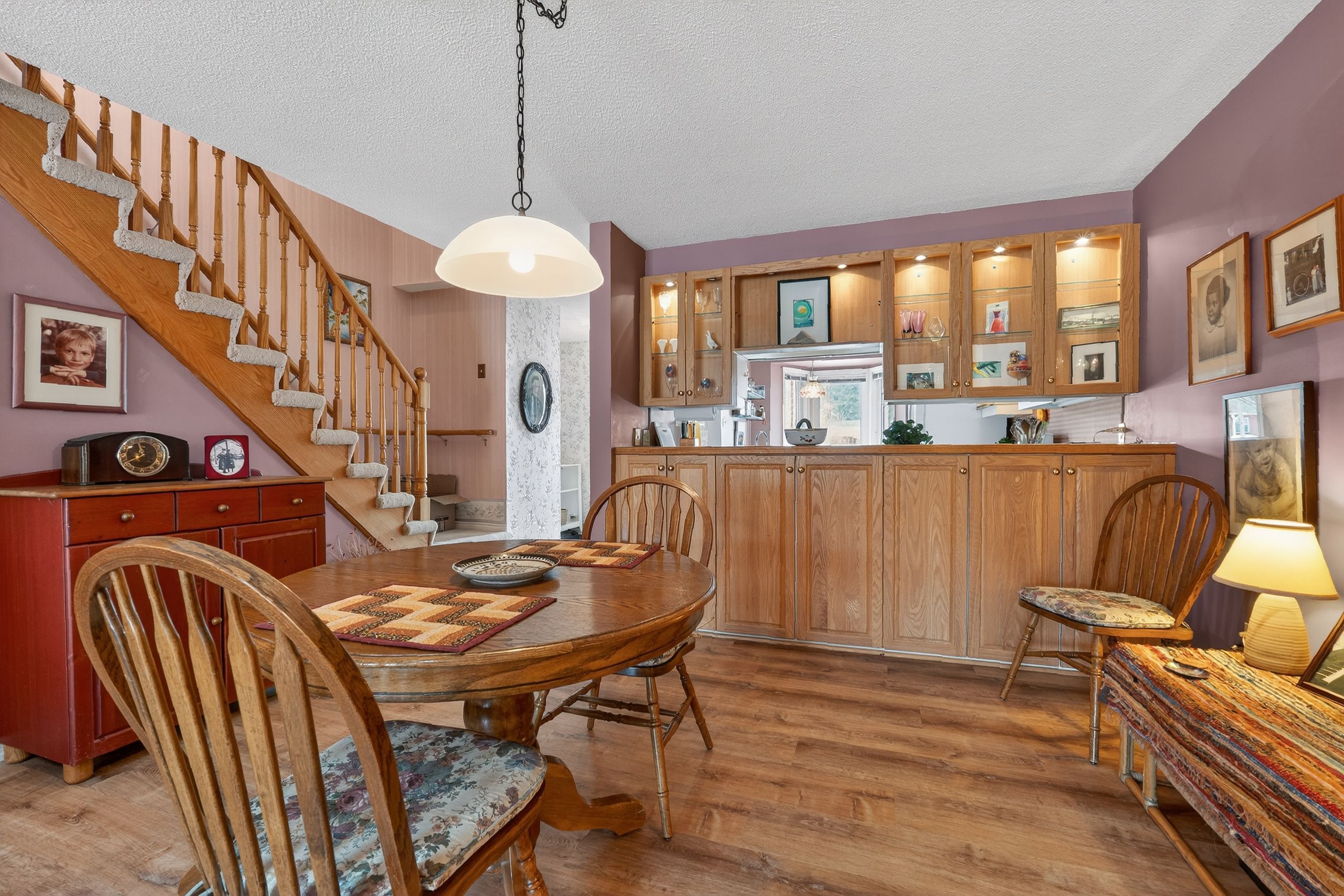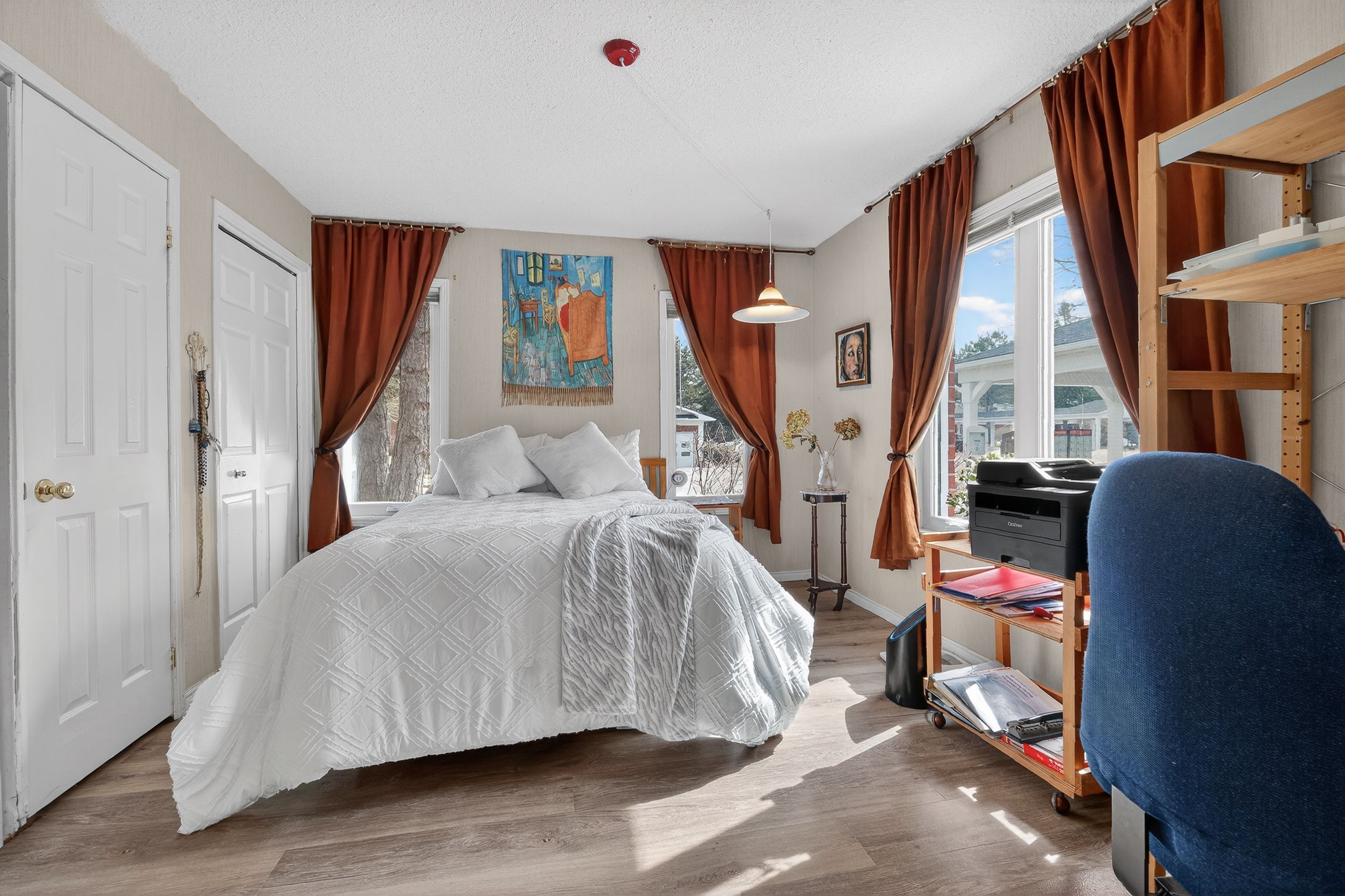 Elevate your everyday in this centrally located end-unit bungaloft, where 'downsizing' truly means upgrading your lifestyle. Peace, quiet & perfect proximity! A few blocks from ross memorial hospital, transit, shopping, restaurants & parks to walk your pet. Just leave your car at home. Tucked away in a serene townhouse cluster, this 1400 sqft. + 2- bedroom 3 - bath bungaloft offers a fabulous maintenance-free lifestyle. Soaring vaulted ceilings & open loft with 2 skylights. Oversized dining/living area easily fits your hutch & dining table. Warm ambience: modern flooring, calming décor, a classic brick gas fireplace & a walkout to a brick patio. Easy living: two main-floor bedrooms, primary suite with ensuite. Basement: two finished rooms plus extensive workshop space. 5-star amenities: large party room, games room (pool & shuffleboard), and a sparkling inground pool. Think downsizing means leaving your treasures behind? Think again. Infinite possibilities! If you've been waiting for the perfect pet-friendly, 'lock-and-leave' lifestyle, this is your moment.