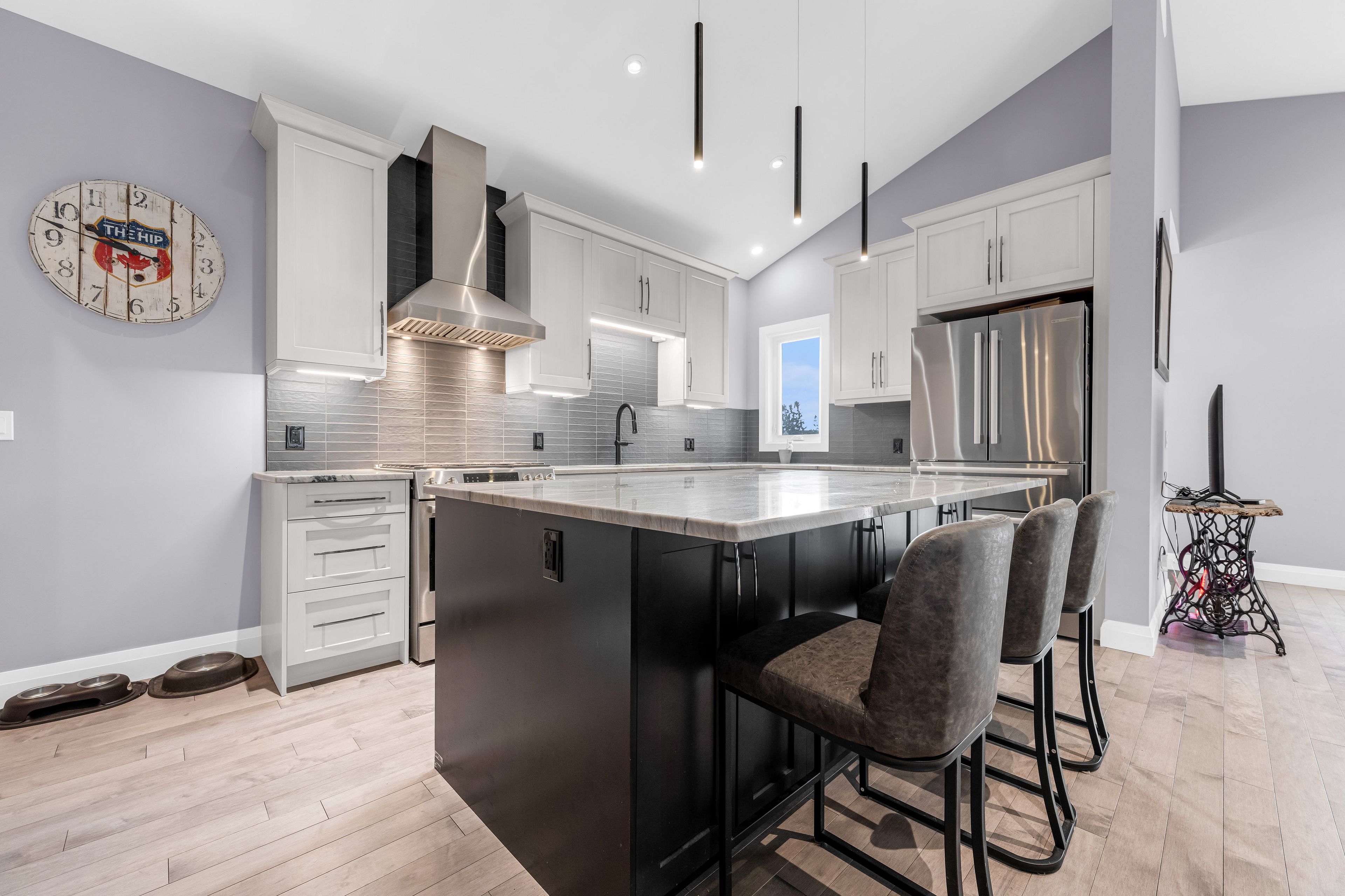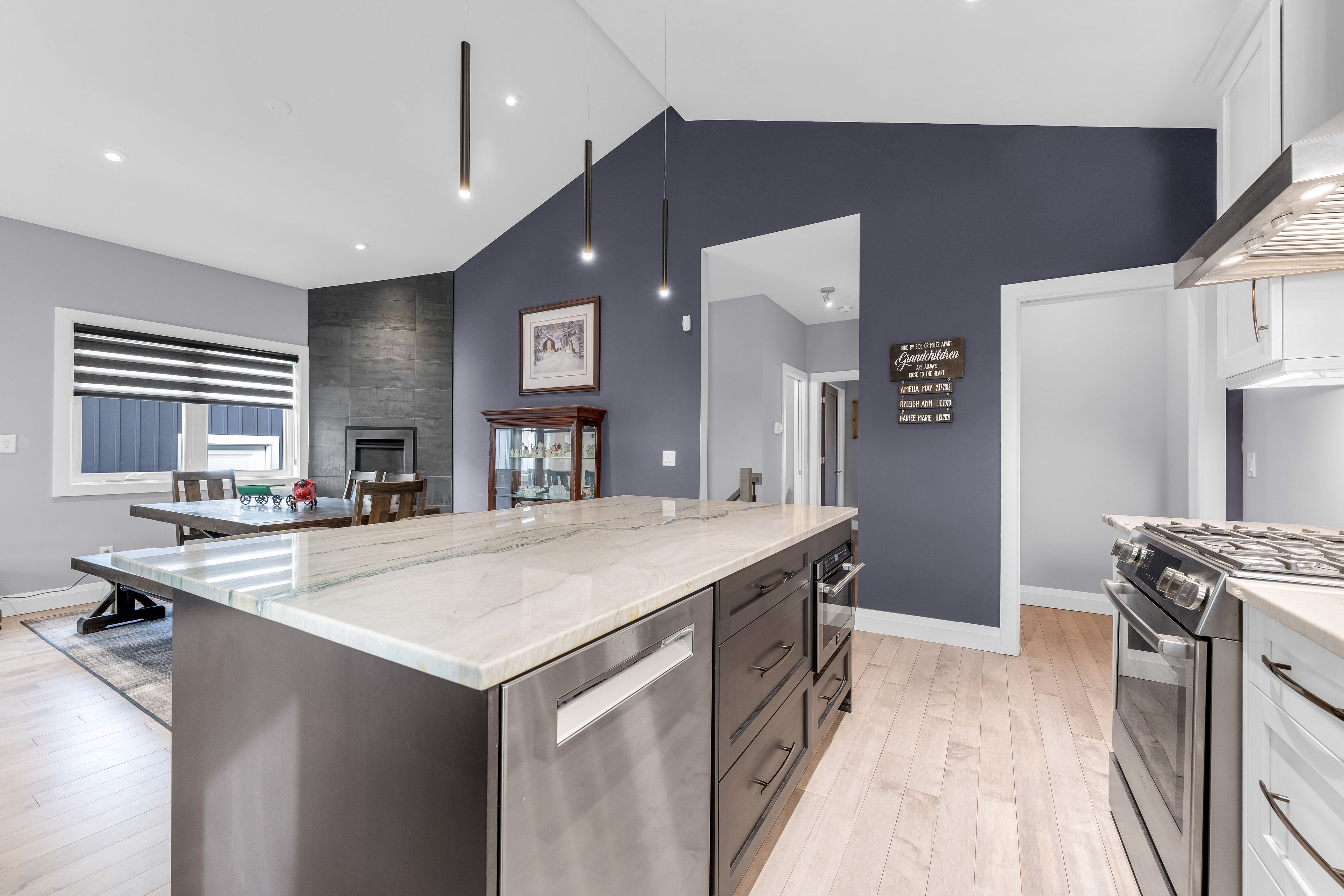 Beautiful 4-bedroom home on a quiet cul-de-sac in the charming lakeside town of port colborne, just a short walk to lake erie. Built in 2019 and enhanced with even more recent upgrades. This home offers a functional layout with modern finishes throughout. Updates include hardwood flooring, paint, custom barn doors, and an updated kitchen with granite countertops, centre island, gas stove(2025), built-in microwave, and cabinetry. The kitchen flows into the dining area with a gas fireplace and bright living room with vaulted ceilings. The primary suite includes patio access to the rear deck, walk-in closet, and a 4-piece ensuite. A second bedroom offers its own 3-piece ensuite, while a third main-floor room is ideal as a den, office, or exercise space. Main-floor laundry and direct access to the 1. 5-car garage add convenience. The finished basement features two additional bedrooms, a spacious rec room with dry bar and wall-mounted electric fireplace, a 3-piece bath with glass shower, storage areas, and space for a home theatre or gym. Vinyl flooring, 100-amp panel, and gas furnace complete the lower level. The modern exterior, fully fenced yard, rear deck access, and custom window coverings add to this incredible home. Exceptional value in a sought-after lakefront community.