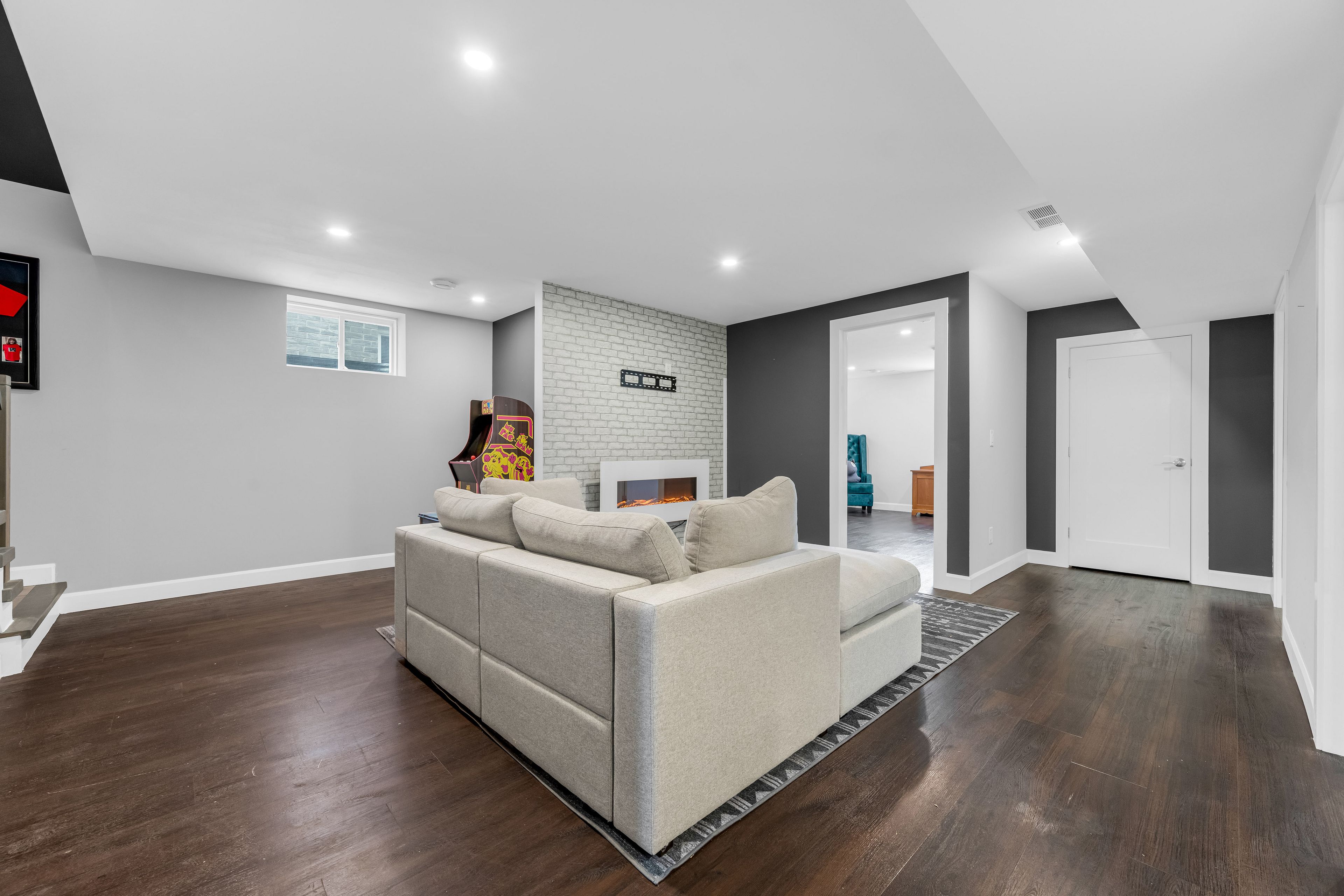 • Finished basement with rec room, additional bedrooms, and dry bar.