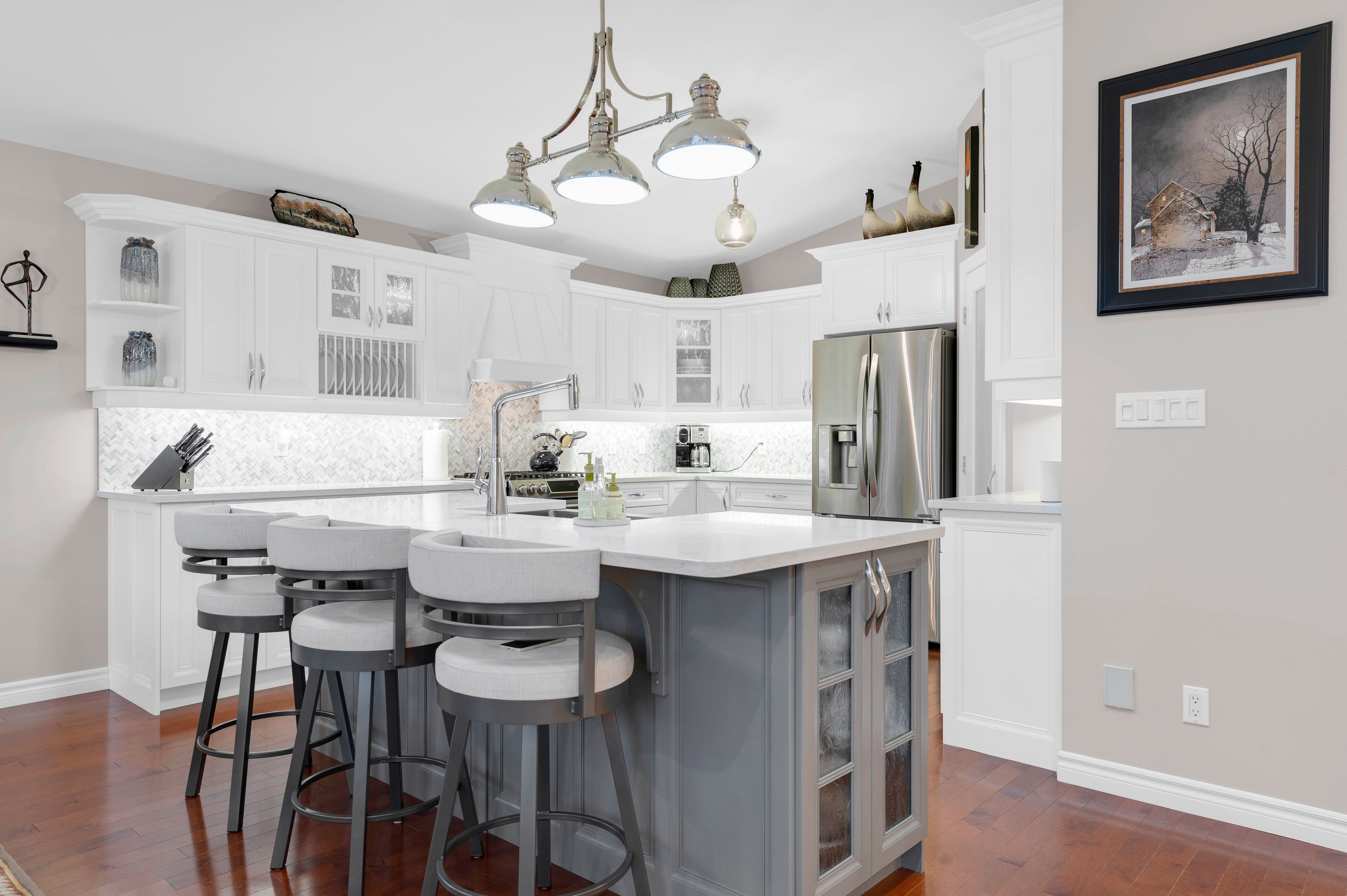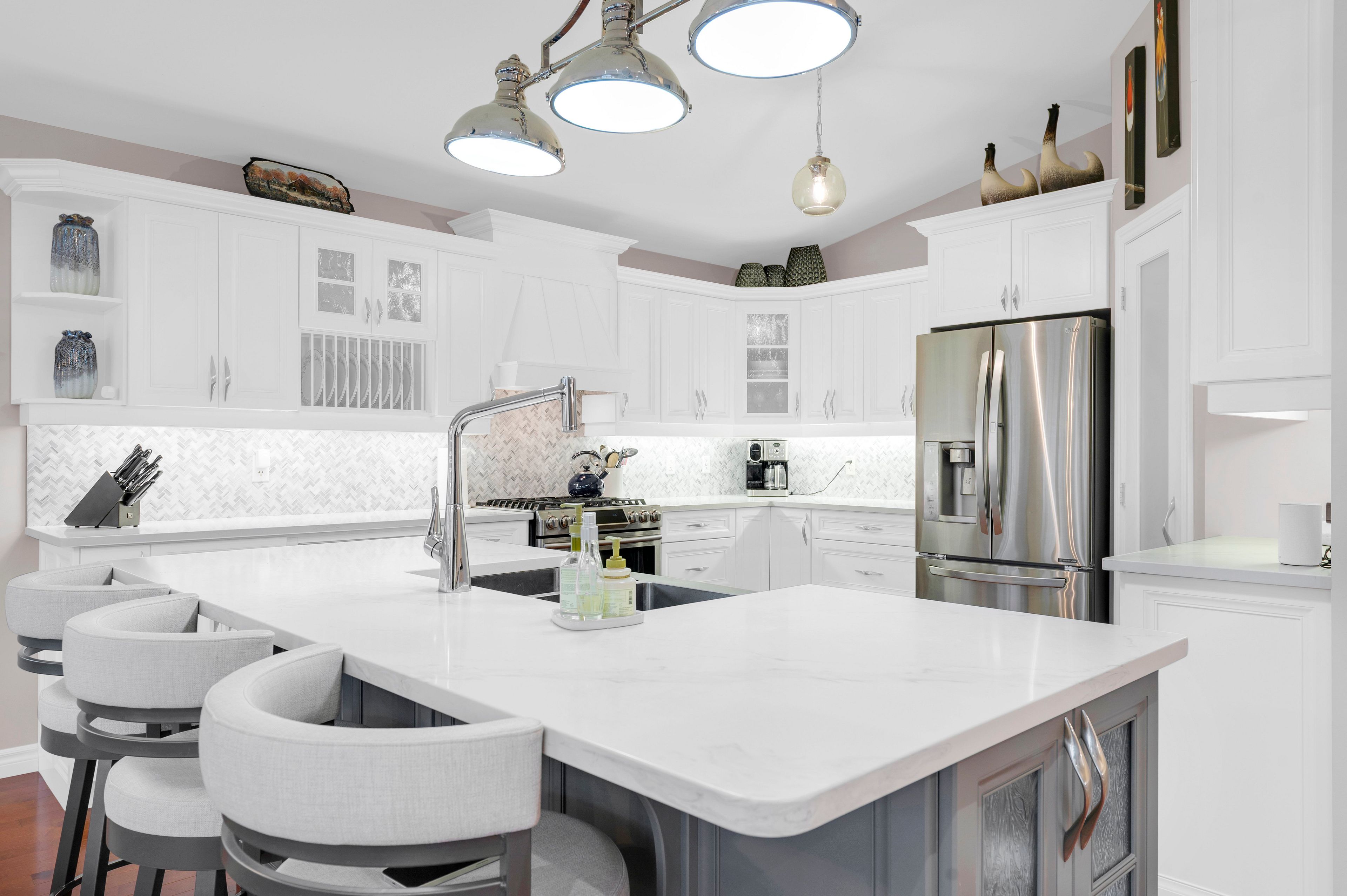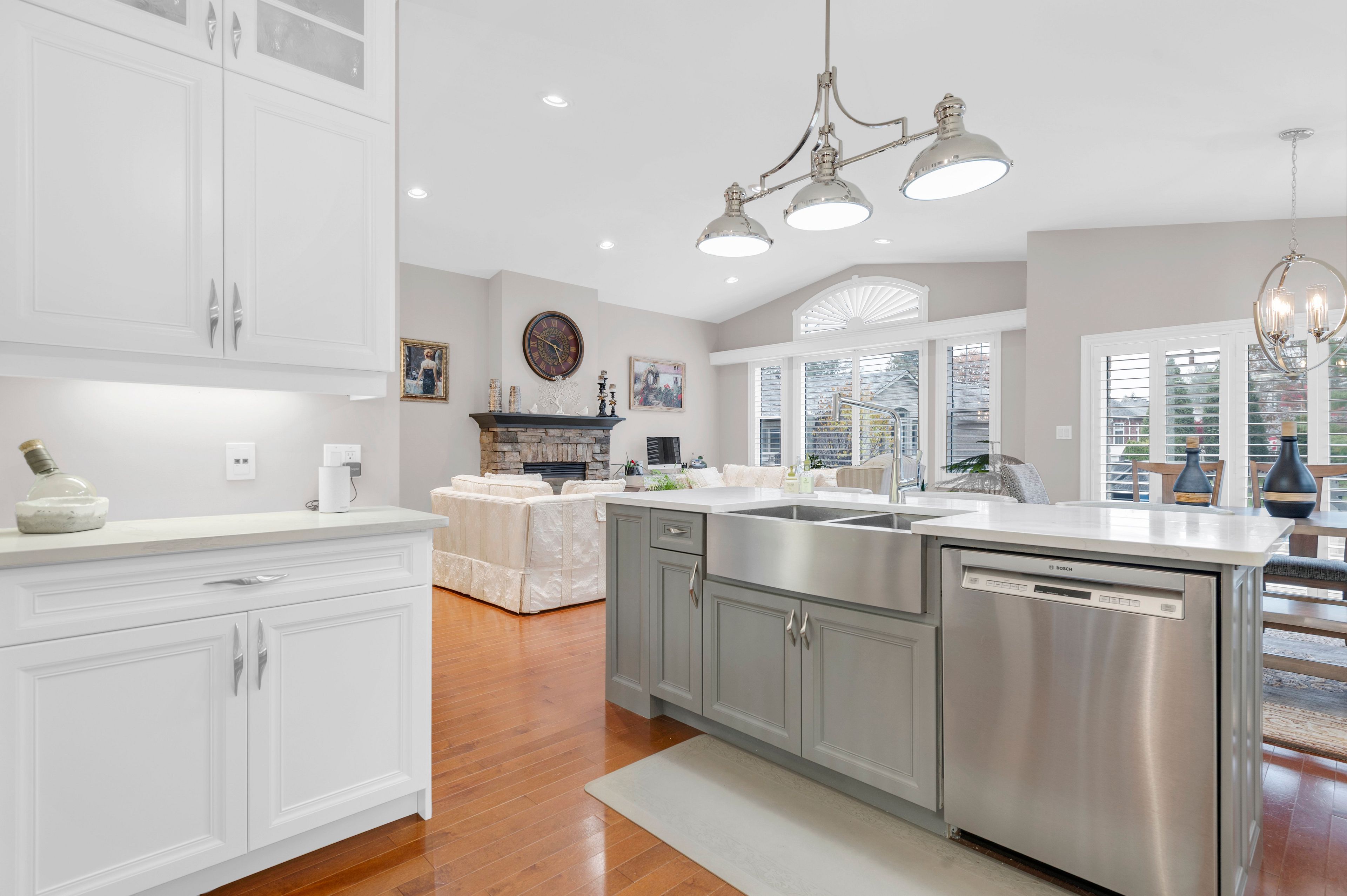• Open-concept layout with a large updated kitchen and natural light.
