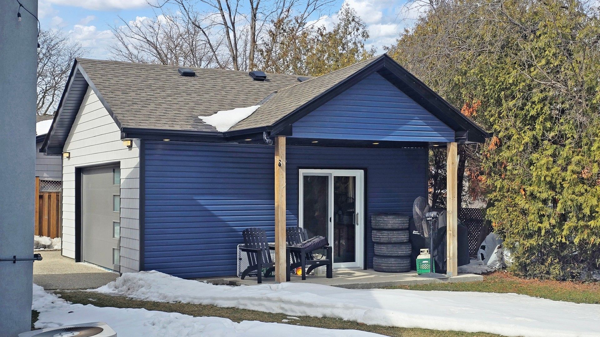 • Heated and air-conditioned garage for versatile uses or hobbies.