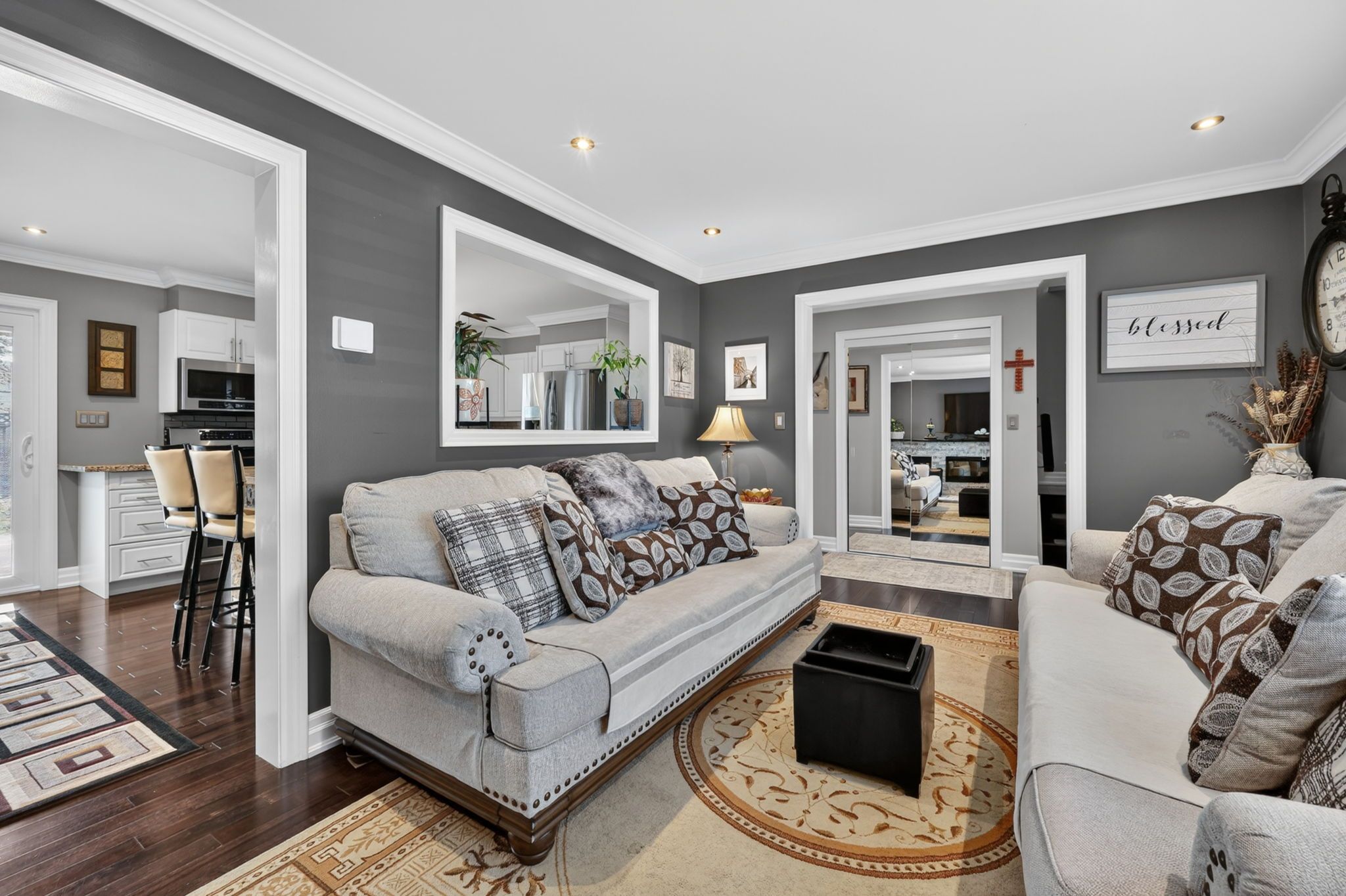 Welcome to 5 jills court! Built in 2015, this beautiful 3-bedroom, 3 bath home offers quality finishes and thoughtful design throughout. Thekitchen and all three bathrooms feature granite countertops, while hardwood and tile flooring run throughout the home, creating a clean andupscale feel. Crown moulding and led pot lights add elegance and modern style throughout. The large heated garage is a standout feature,complete with convenient drive-thru access to the backyard. Outside, you'll find a spacious fully fenced yard and a covered back porch, perfectfor relaxing or entertaining. With separate garage access to two areas of the home and a basement rough-in already in place, this property alsooffers excellent potential for extended family living or a future in-law suite. Ideally located close to the hospital, everyday amenities, and witheasy access to highway 400 and highway 11, this home is a great option for commuters and families alike. Book your showing today!