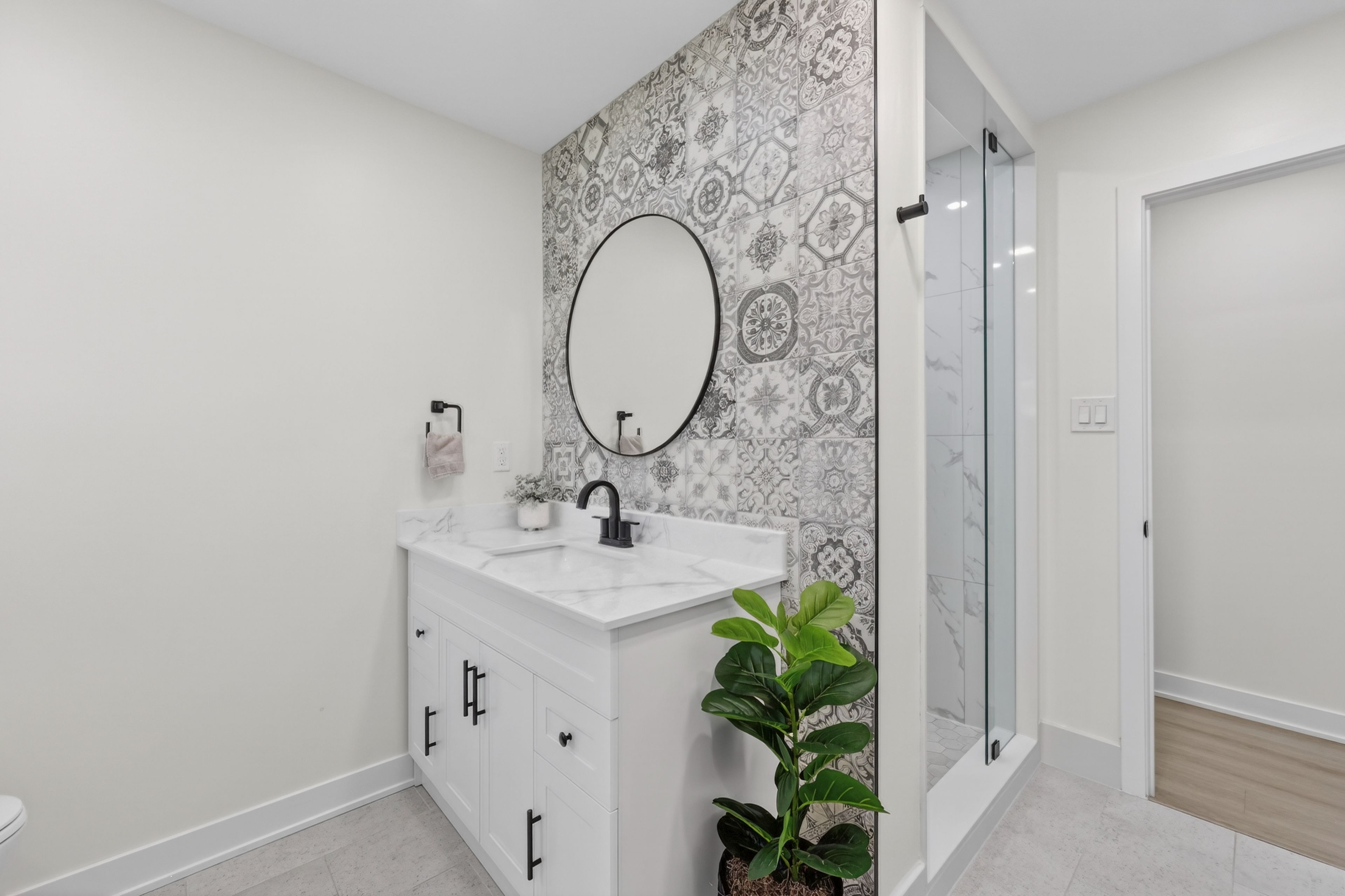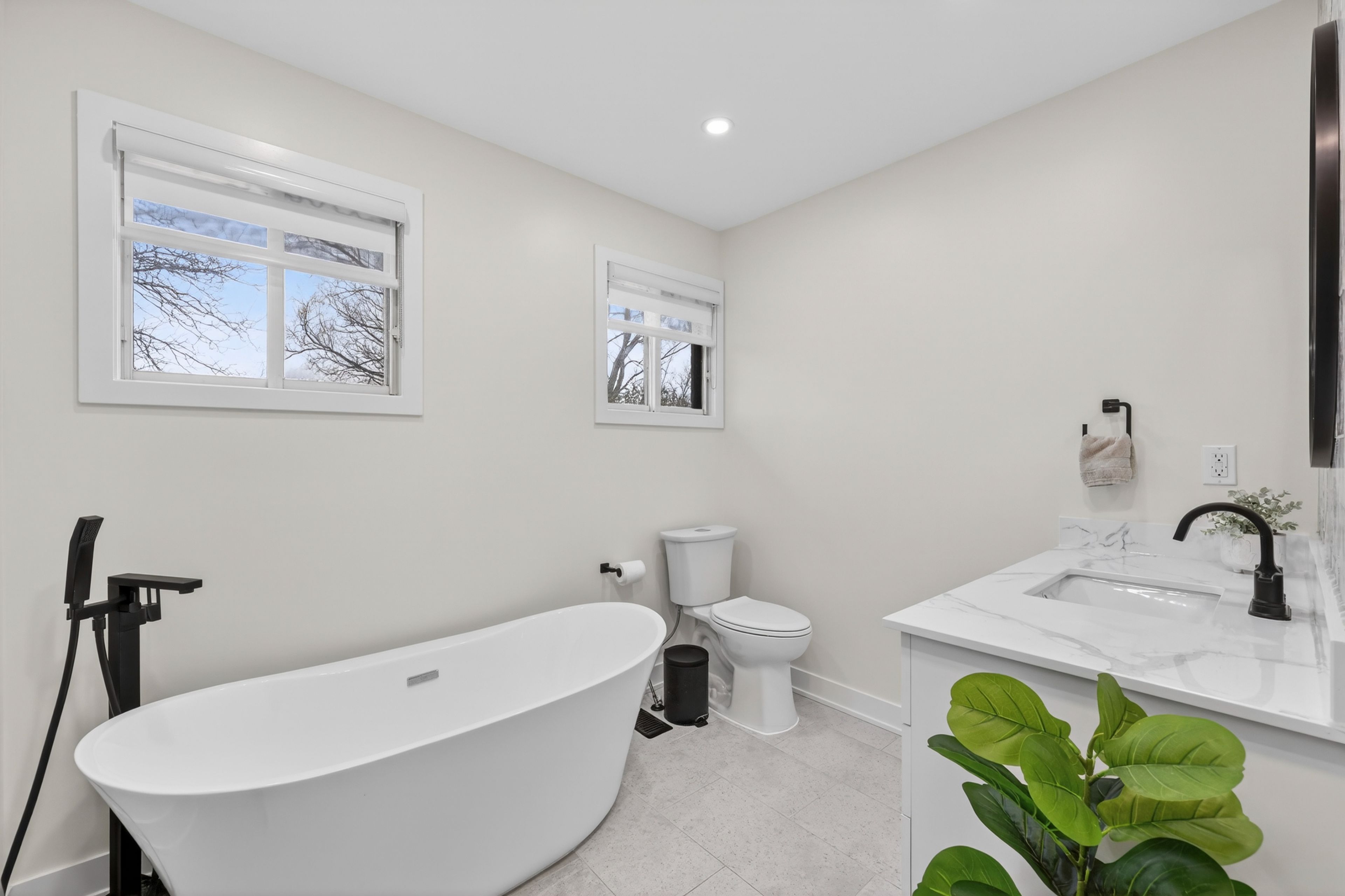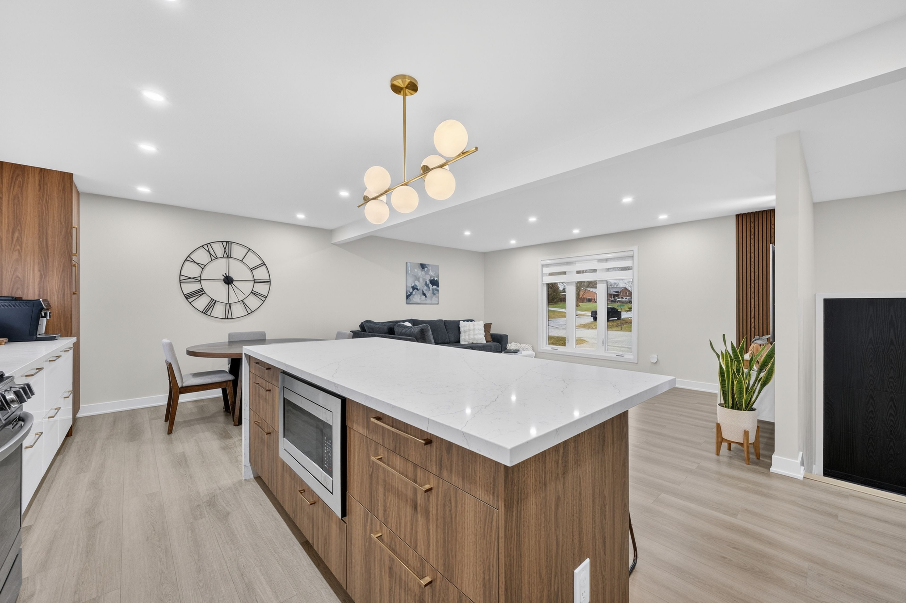 • Modern chef's kitchen with premium appliances and center island for convenience.