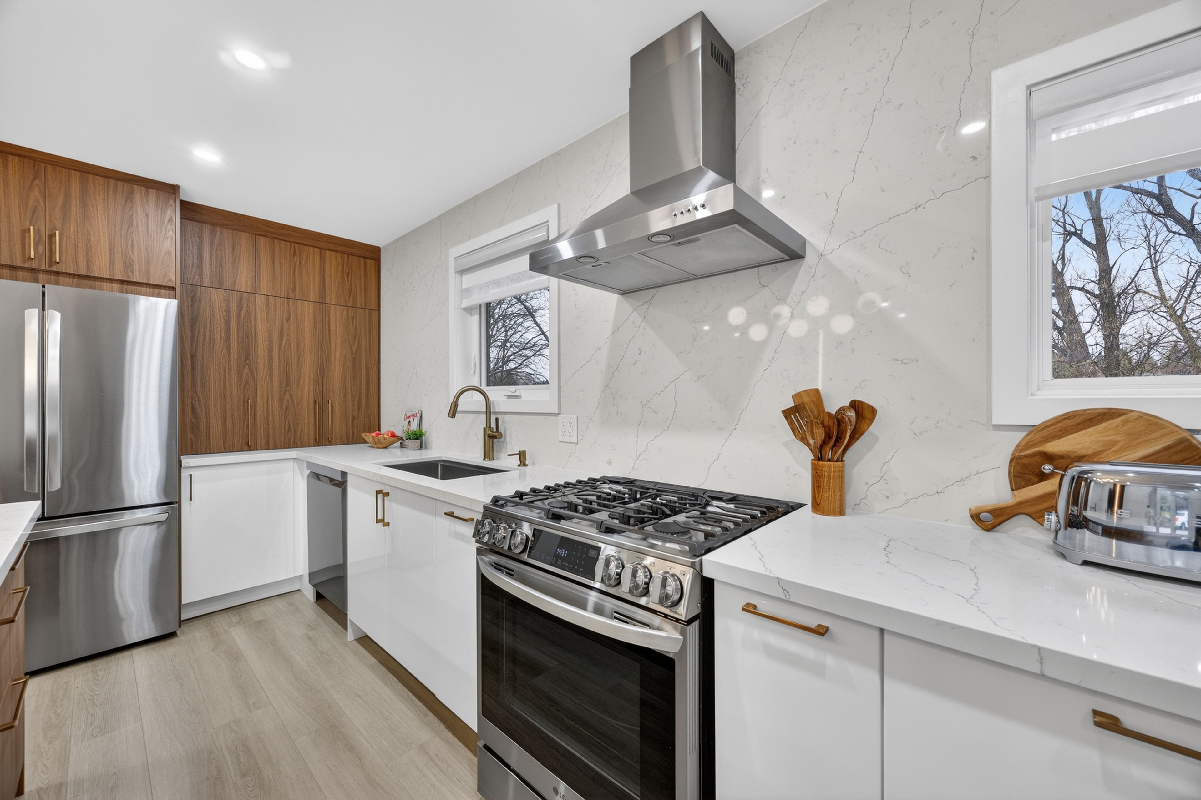 • Fully finished basement features a second kitchen and additional living spaces.