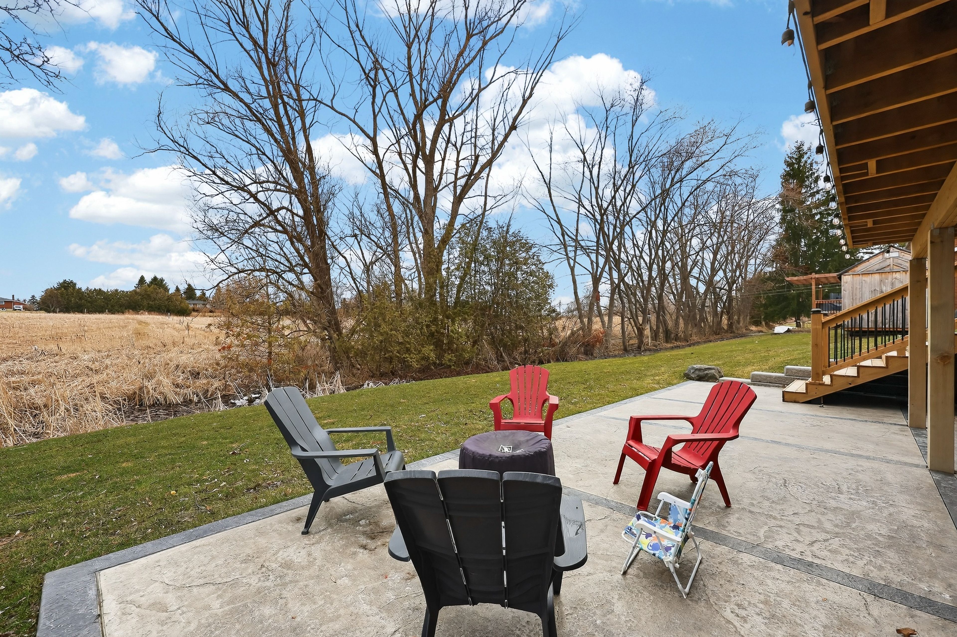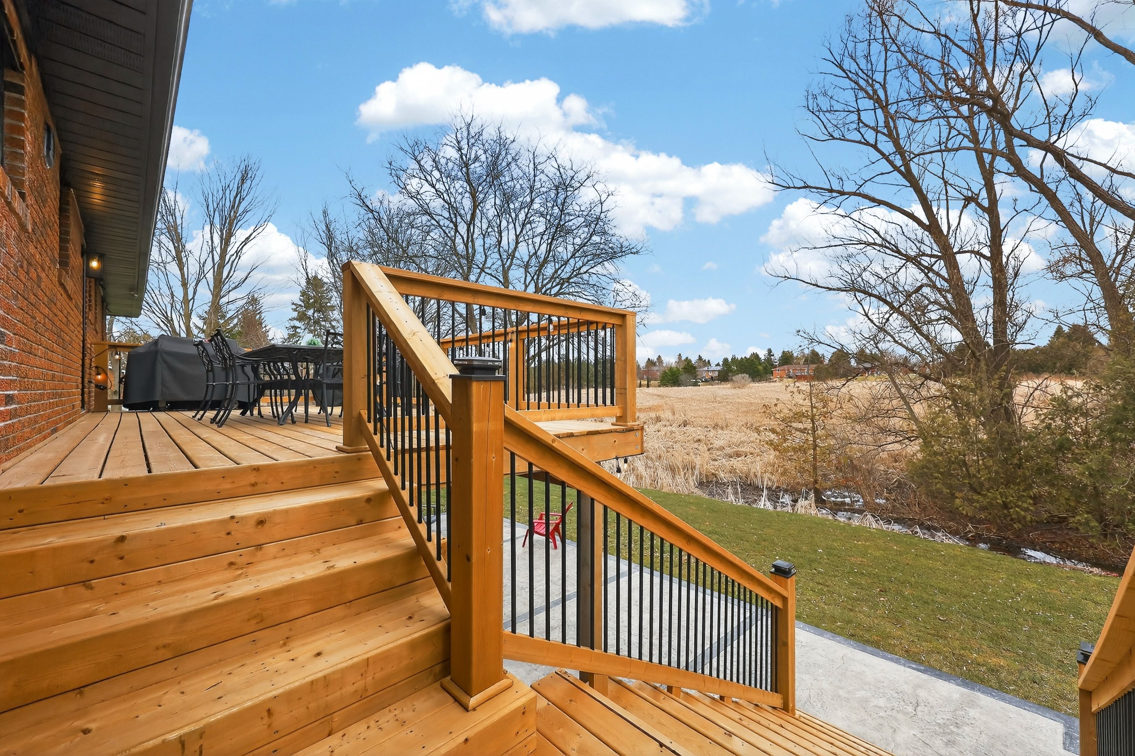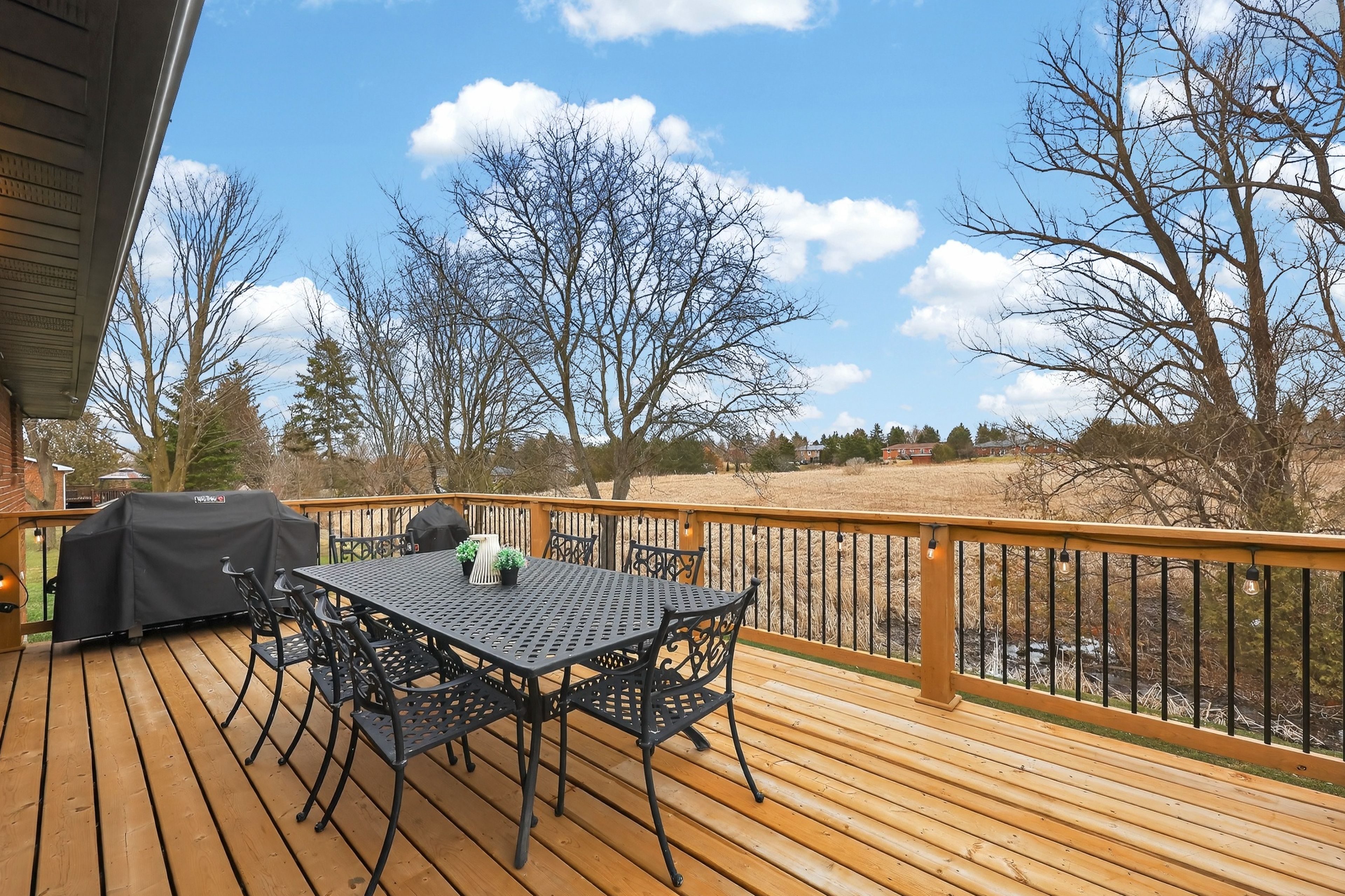 • Spacious half-acre lot with no direct neighbors behind for added privacy.