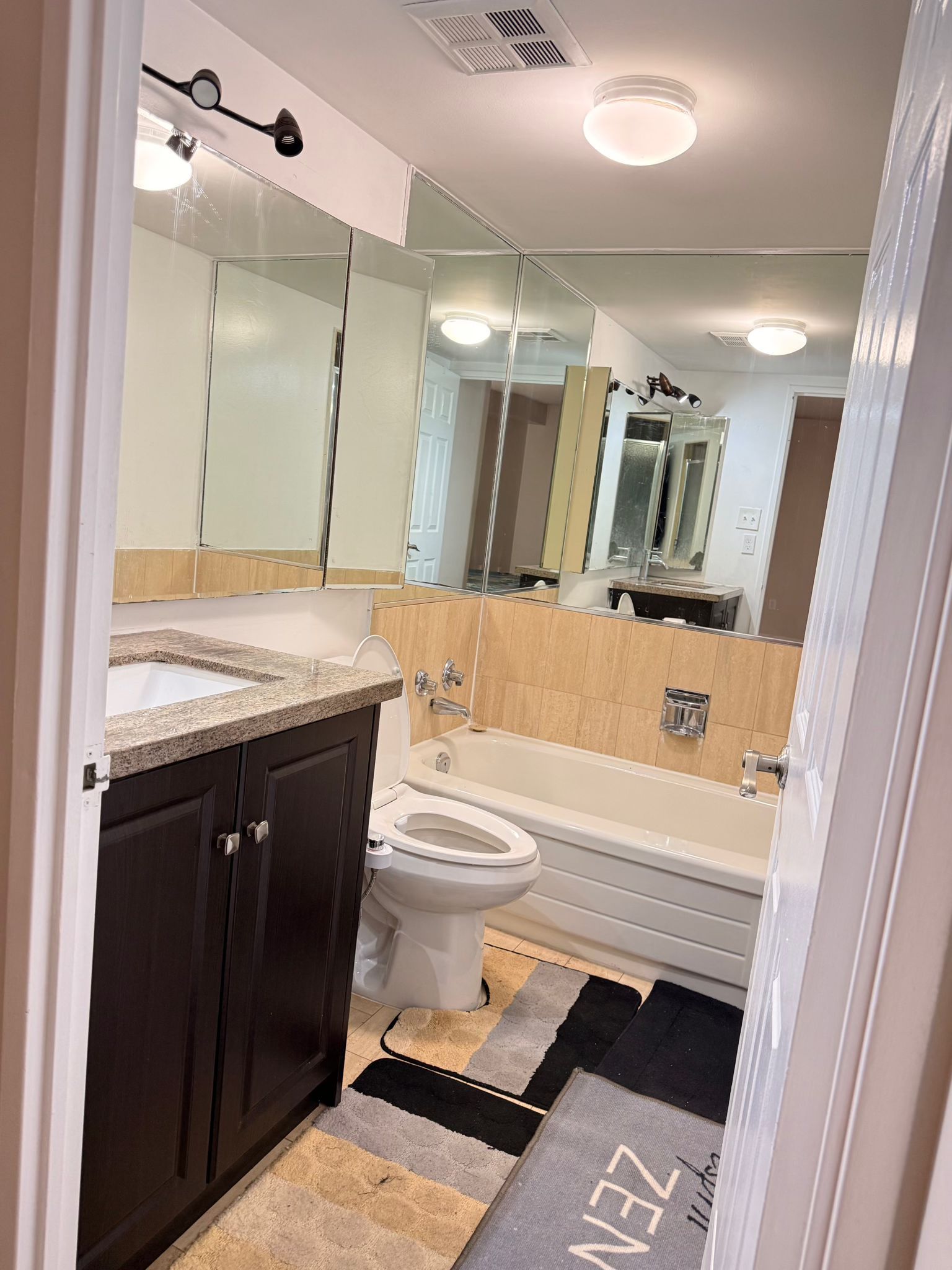 • Upgraded kitchen with modern flooring and stylish bathroom vanities.