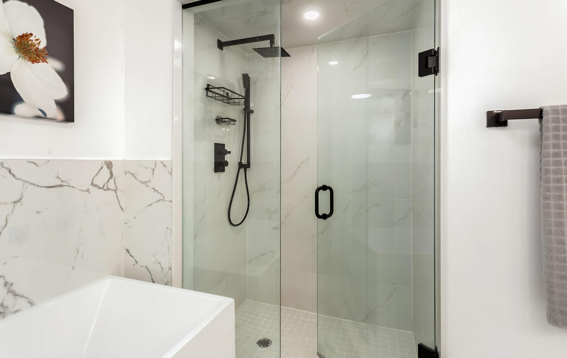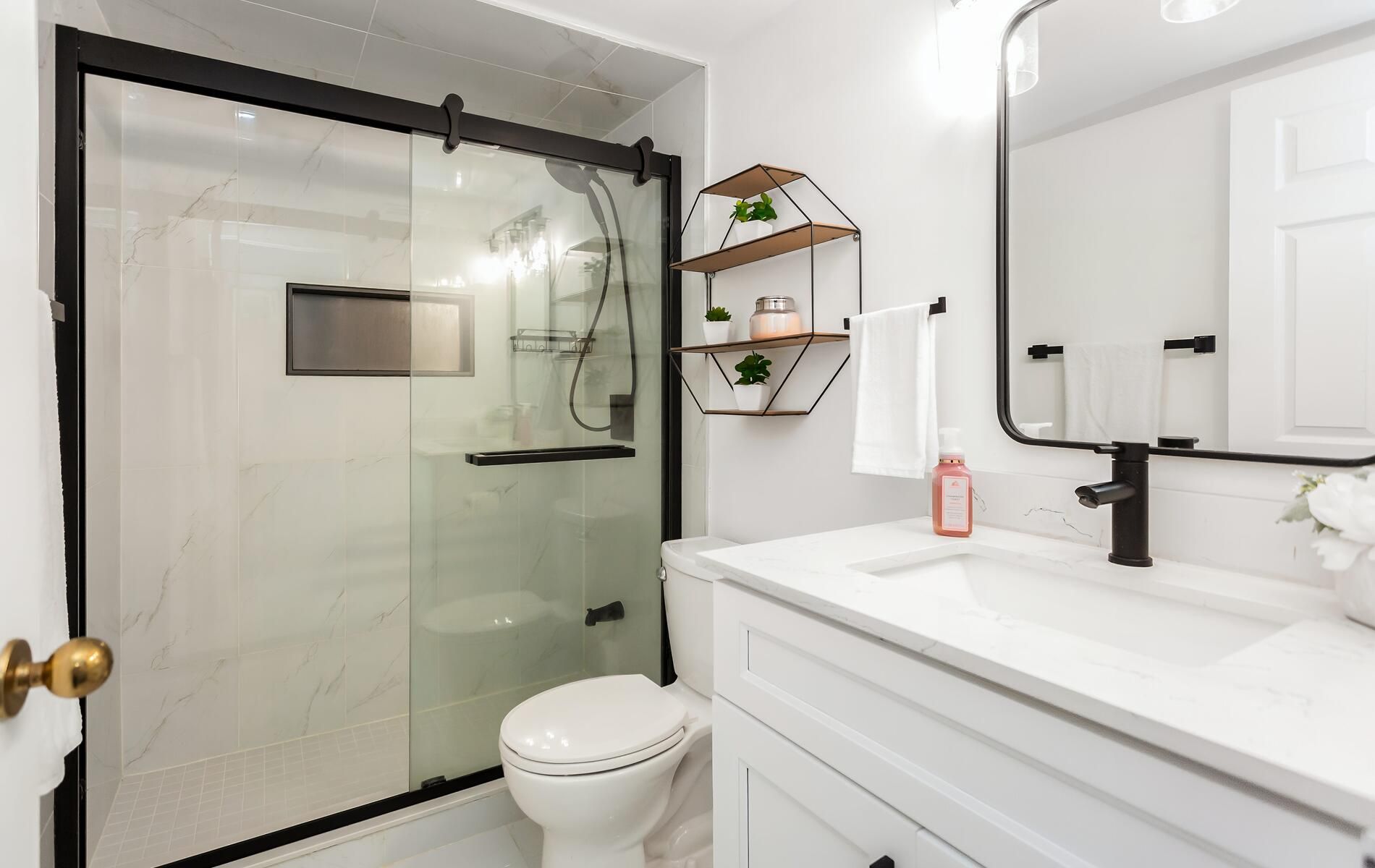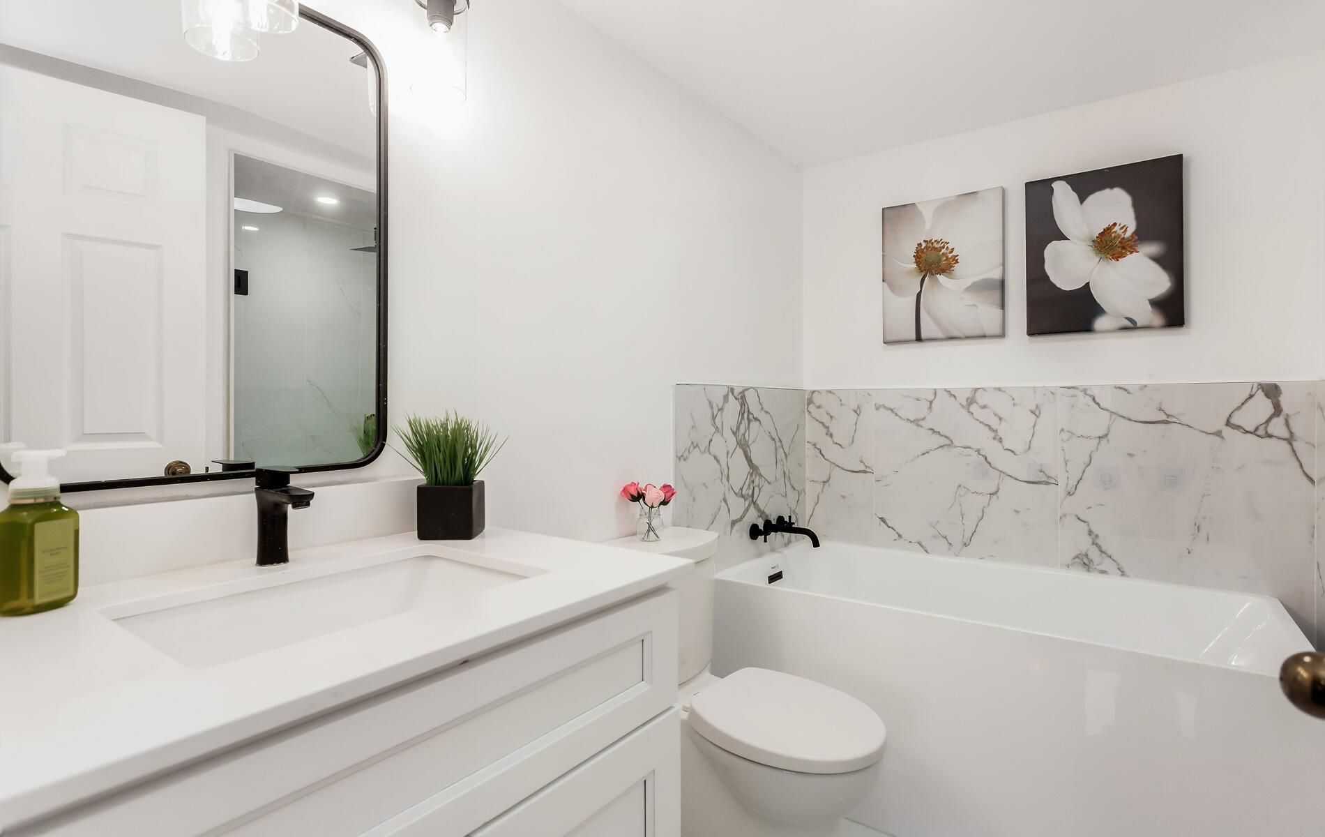 • Completely new kitchen with modern cabinets, quartz countertops, and fixtures.