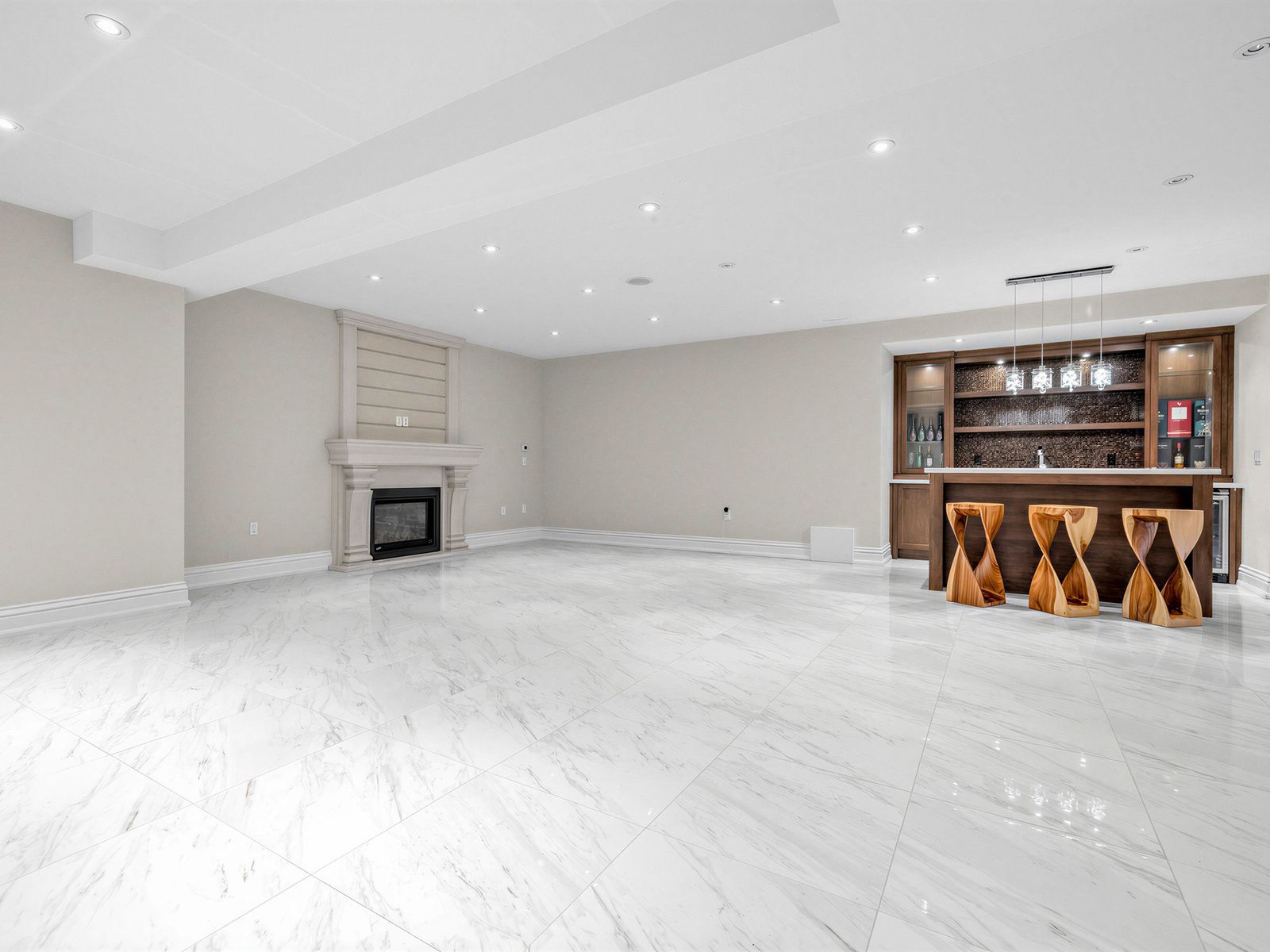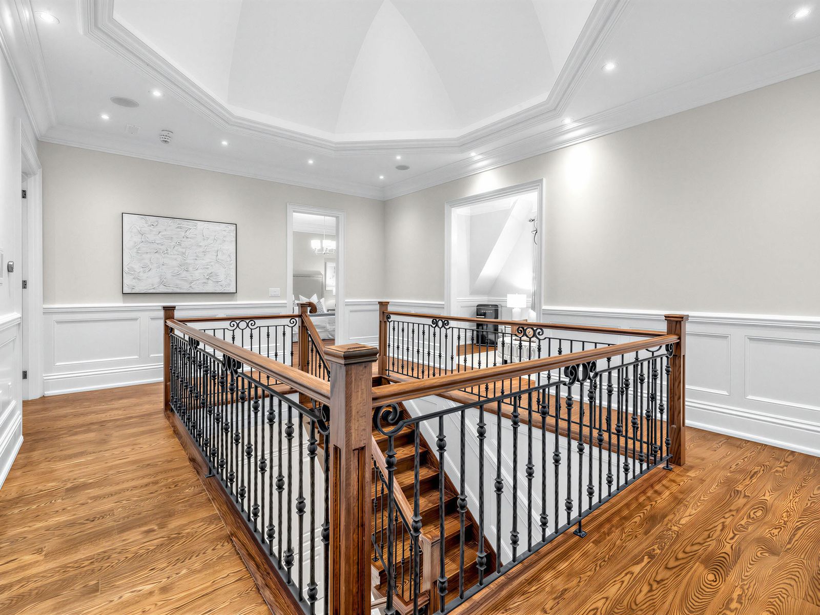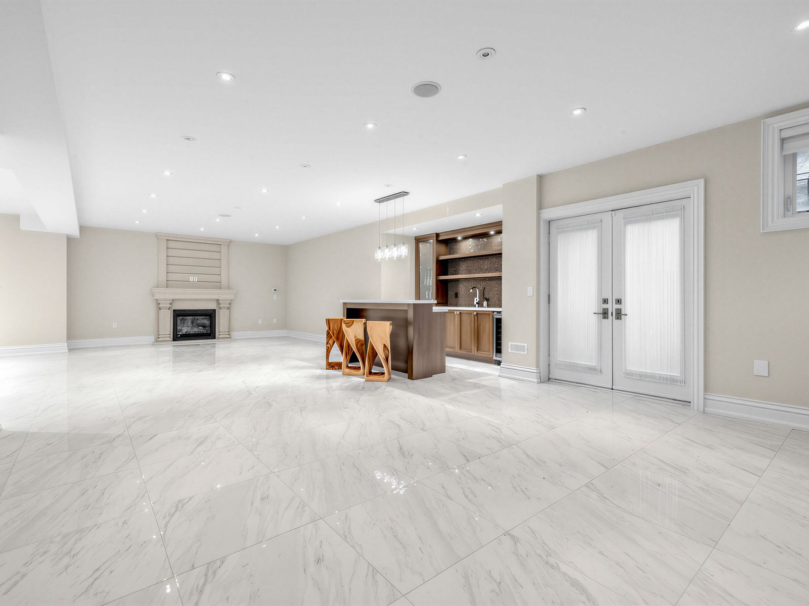 An exceptional custom-built residence on a rare oversized pie-shaped lot in one of north york's most prestigious crescents, offering over 6,300 sq. Ft. Of refined living space with a remarkable 61-foot frontage widening to 100 feet at the rear-creating a truly expansive and private backyard rarely found in the area. Designed to impress, the home features soaring 11-foot ceilings on the main level and 10-foot ceilings above, enhanced by elegant wainscoting, a full-panel walnut library, and a dramatic cathedral skylight that fills the space with natural light and warmth. The designer kitchen is equipped with calacatta quartz surfaces, premium commercial-grade thermador appliances, and an oversized island, seamlessly flowing into expansive principal rooms ideal for both grand entertaining and everyday family living. Upstairs, a highly functional layout offers a secondary family lounge and generously sized bedrooms, each with its own private ensuite and custom closets. The primary suite is a true retreat, featuring a spa-inspired ensuite with heated floors and an oversized walk-in closet with skylight. The walk-out lower level is designed for lifestyle and flexibility, complete with heated floors, one of four fireplaces, a wet bar, and a spacious nanny suite-ideal for extended family or live-in support. A rare 3. 5-car tandem garage with high ceilings, epoxy floors, and ev charger-ready setup offers flexibility for luxury vehicles and lift potential. Smart home integration, dual hvac systems, water softener, central humidifier, and enhanced sound insulation provide modern comfort throughout. Set on a premium lot with an interlocked driveway and sprinkler system, and located near top-ranking schools, parks, and upscale amenities, this is a rare turnkey offering in one of north york's most sought-after communities.