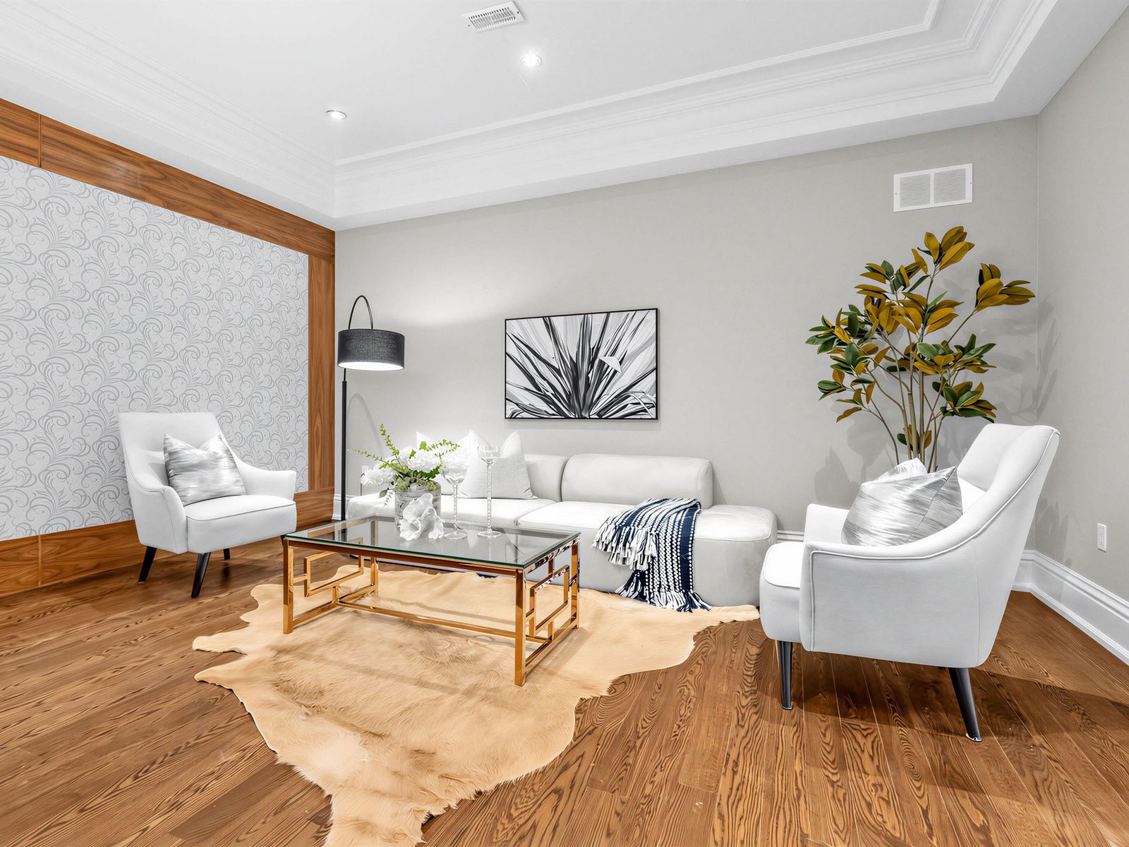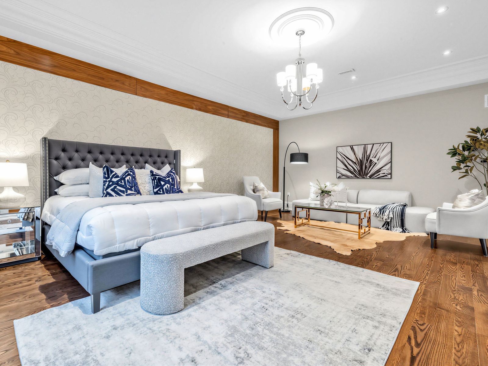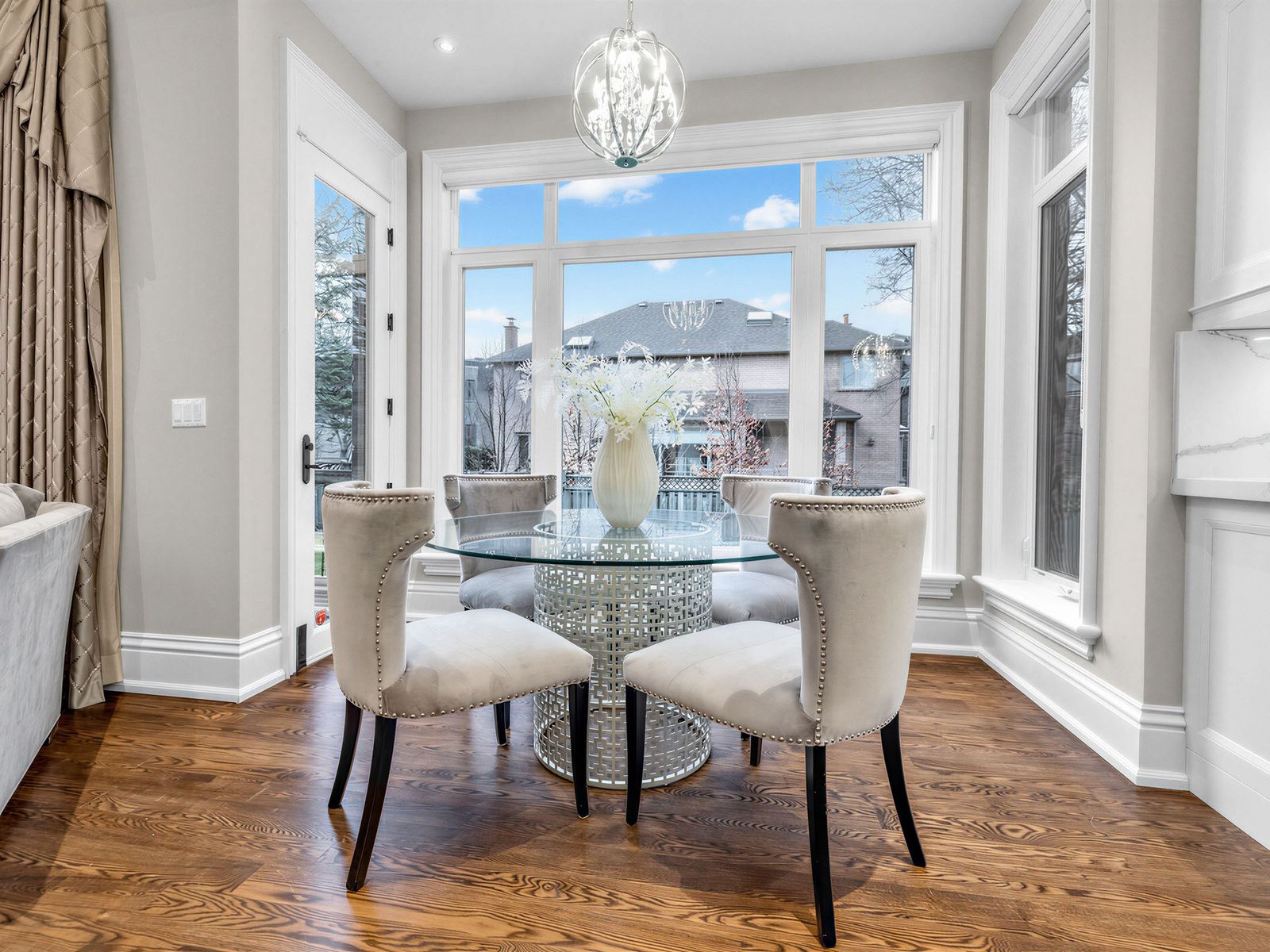 An exceptional custom-built residence on a rare oversized pie-shaped lot in one of north york's most prestigious crescents, offering over 6,300 sq. Ft. Of refined living space with a remarkable 61-foot frontage widening to 100 feet at the rear-creating a truly expansive and private backyard rarely found in the area. Designed to impress, the home features soaring 11-foot ceilings on the main level and 10-foot ceilings above, enhanced by elegant wainscoting, a full-panel walnut library, and a dramatic cathedral skylight that fills the space with natural light and warmth. The designer kitchen is equipped with calacatta quartz surfaces, premium commercial-grade thermador appliances, and an oversized island, seamlessly flowing into expansive principal rooms ideal for both grand entertaining and everyday family living. Upstairs, a highly functional layout offers a secondary family lounge and generously sized bedrooms, each with its own private ensuite and custom closets. The primary suite is a true retreat, featuring a spa-inspired ensuite with heated floors and an oversized walk-in closet with skylight. The walk-out lower level is designed for lifestyle and flexibility, complete with heated floors, one of four fireplaces, a wet bar, and a spacious nanny suite-ideal for extended family or live-in support. A rare 3. 5-car tandem garage with high ceilings, epoxy floors, and ev charger-ready setup offers flexibility for luxury vehicles and lift potential. Smart home integration, dual hvac systems, water softener, central humidifier, and enhanced sound insulation provide modern comfort throughout. Set on a premium lot with an interlocked driveway and sprinkler system, and located near top-ranking schools, parks, and upscale amenities, this is a rare turnkey offering in one of north york's most sought-after communities.