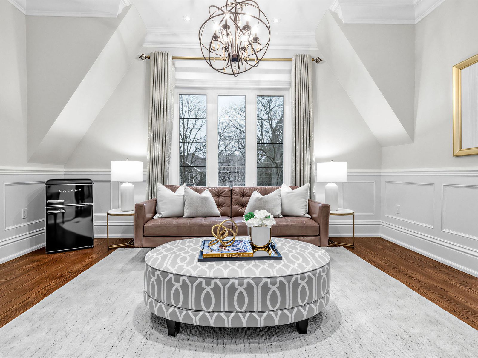 • Designer kitchen with premium appliances and oversized island for gatherings.