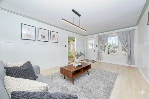 Down by the river you will find the unique community of norval, halton hills (contrary to google maps) - located 4 minutes to home hardware, 5 minutes to georgetown market place mall, 9 minutes to georgetown go, 7 minutes to mount pleasant go, 20 minutes to costco business centre, 401 & 407 yet with that rural feel in the natural setting you crave. There is parking for your pickup and more in the private driveway with a detached oversized garage with newer garage door and power. This 4 bedroom bungalow is bigger than it looks. With a large footprint of approximately 25 x 45 it sits on a 50' x 129' lot so you can realize your improvements. Bring your tlc to make this house your own. Some photos have been virtually enhanced.