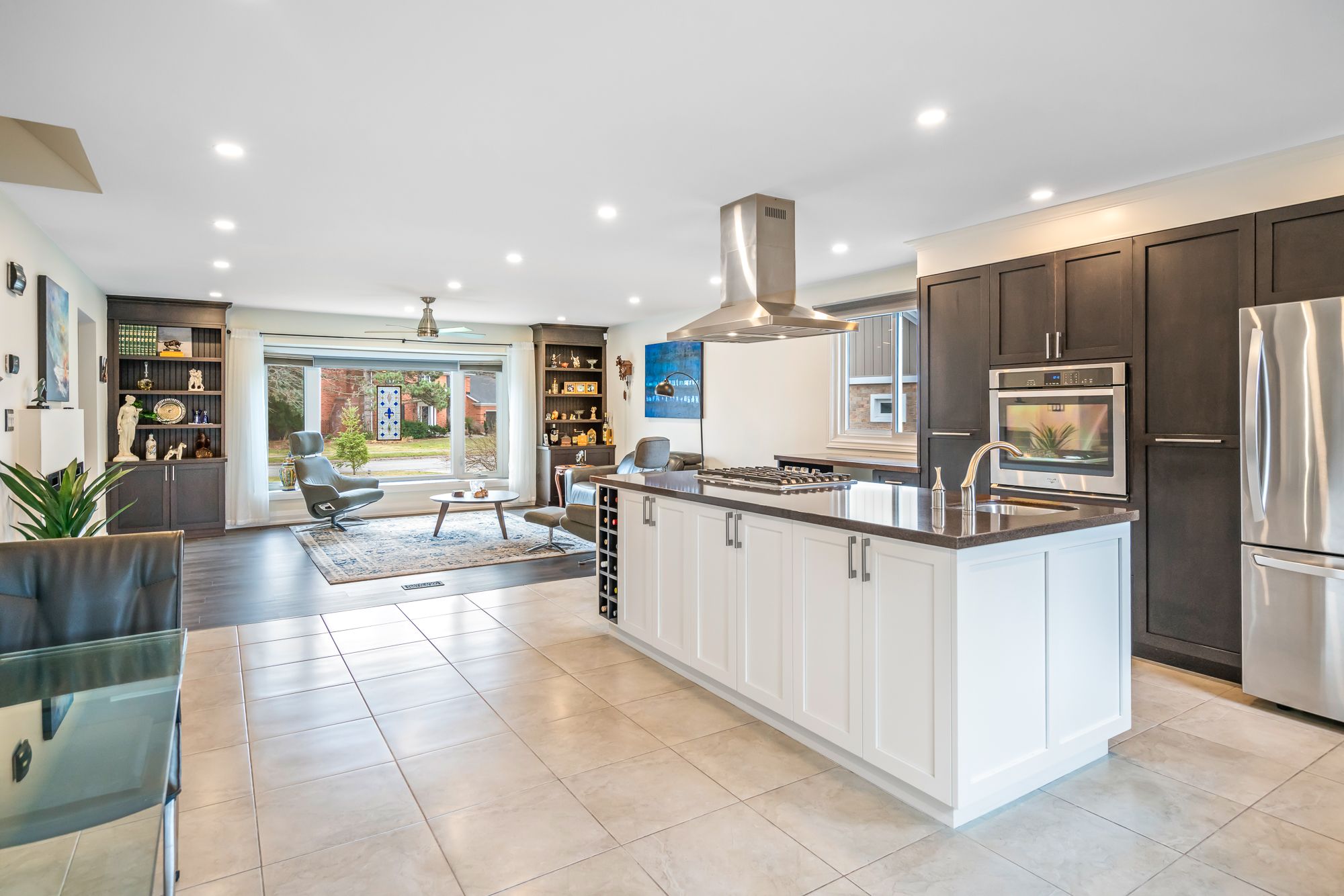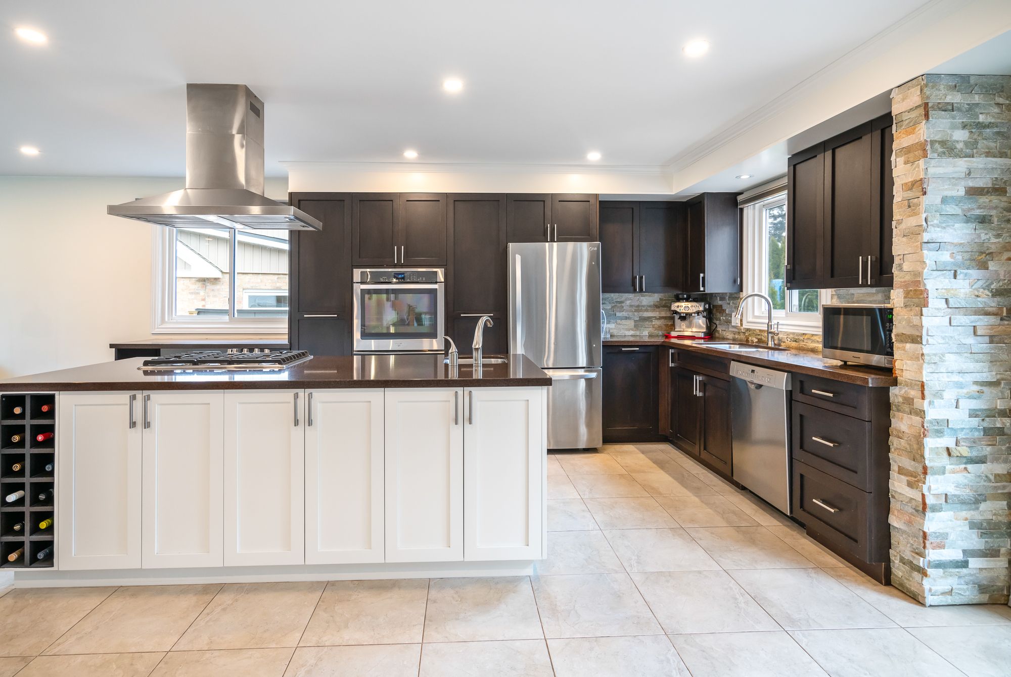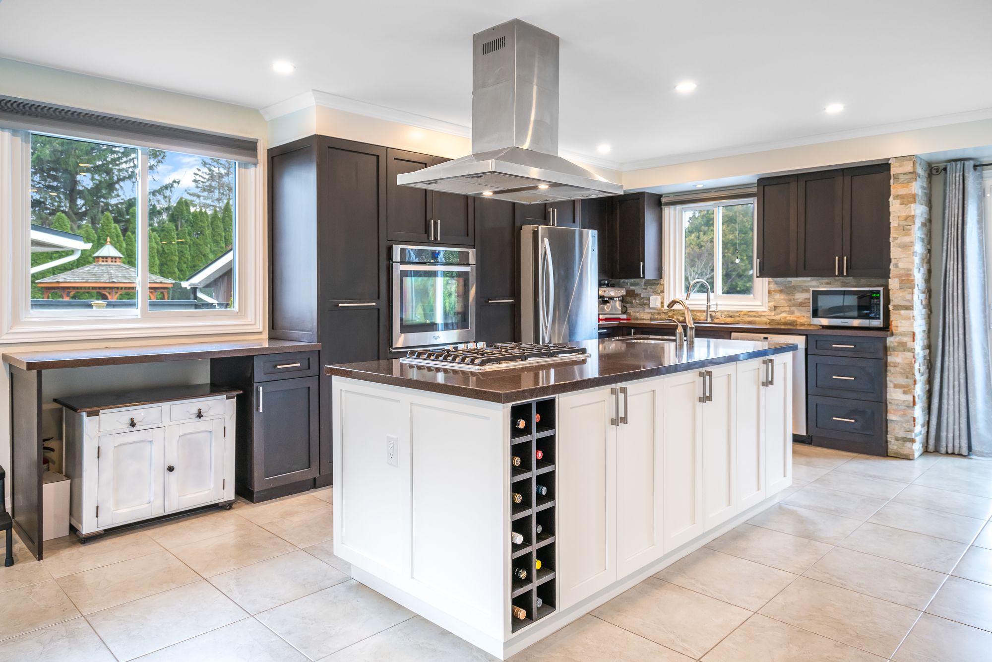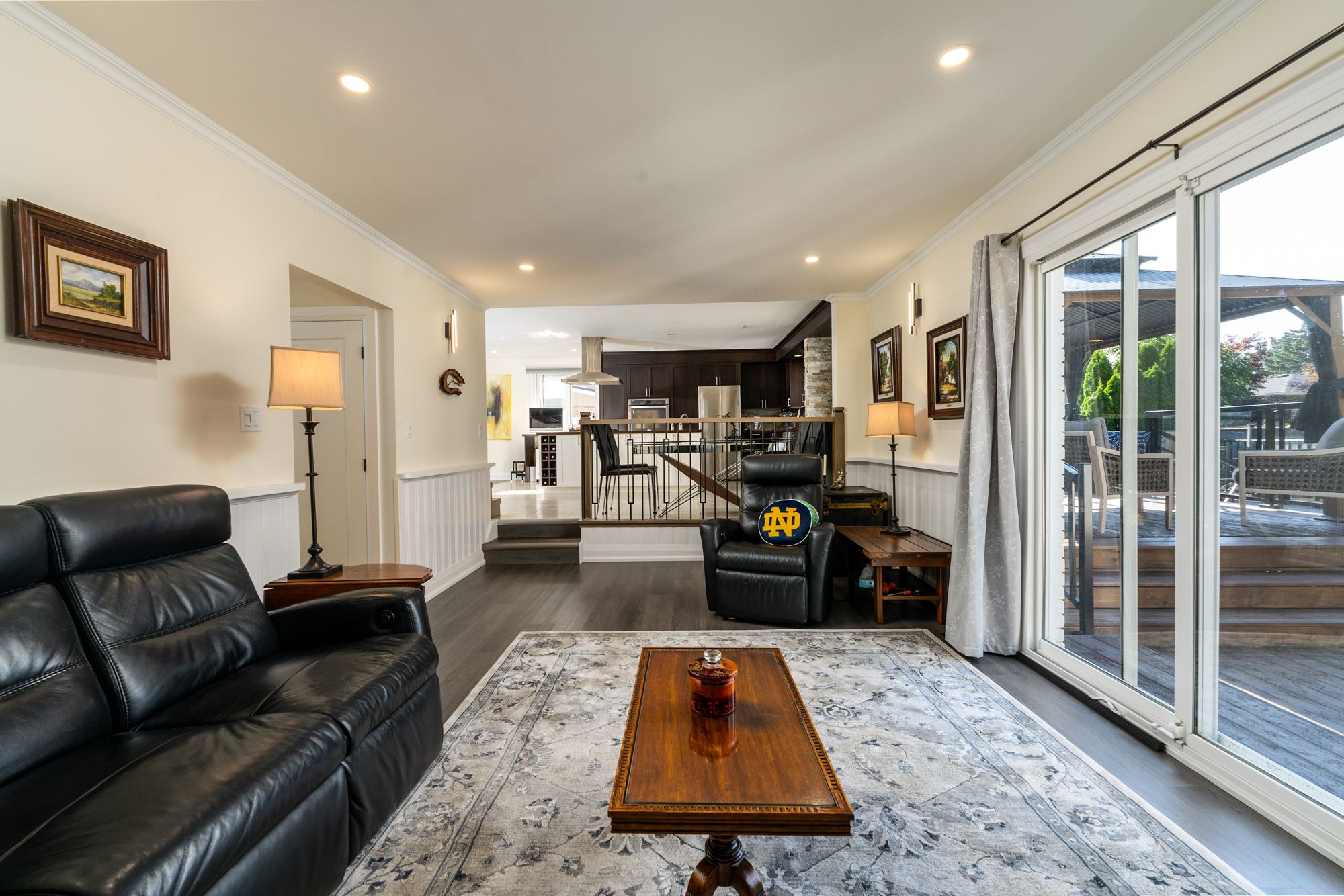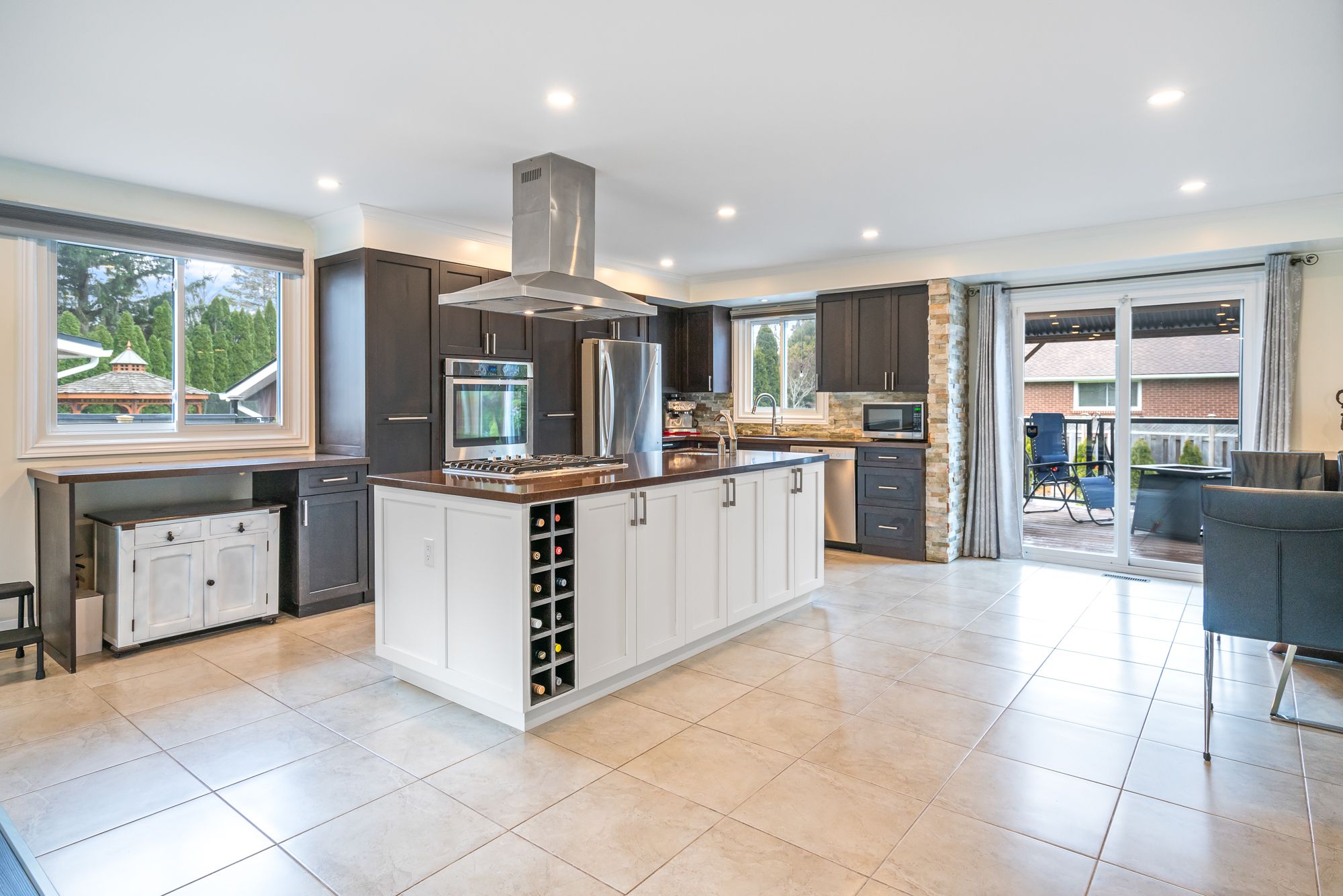 • Renovated kitchen with quartz countertops and a large island for entertaining.