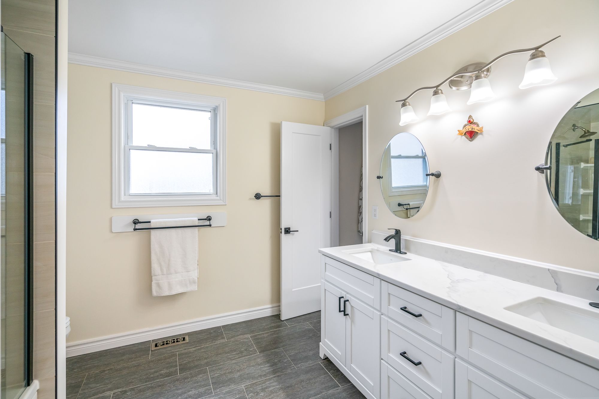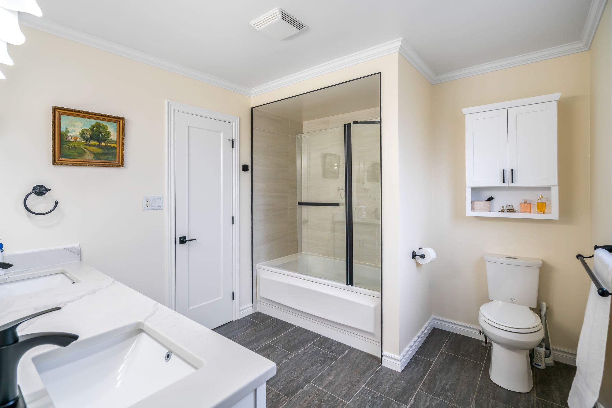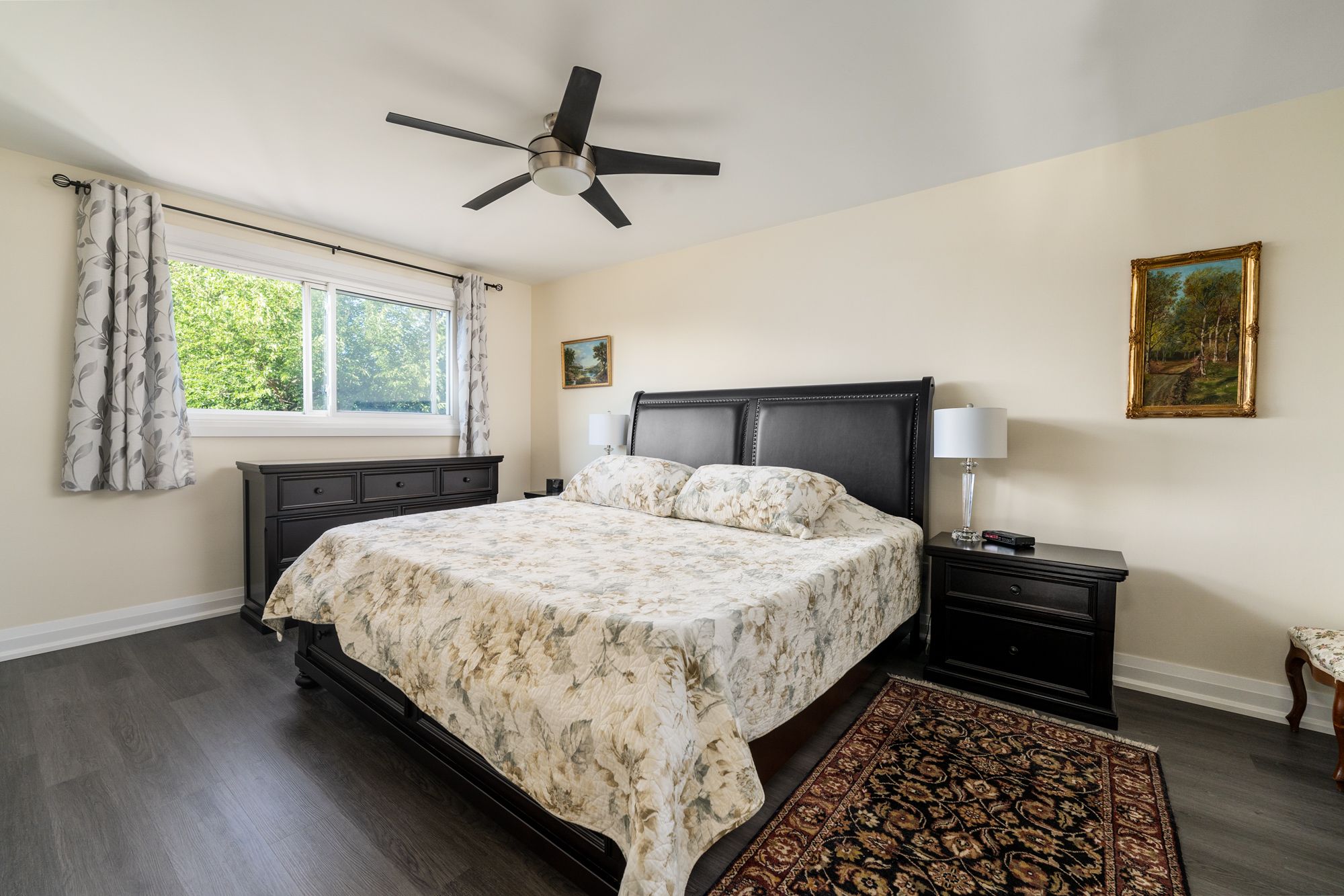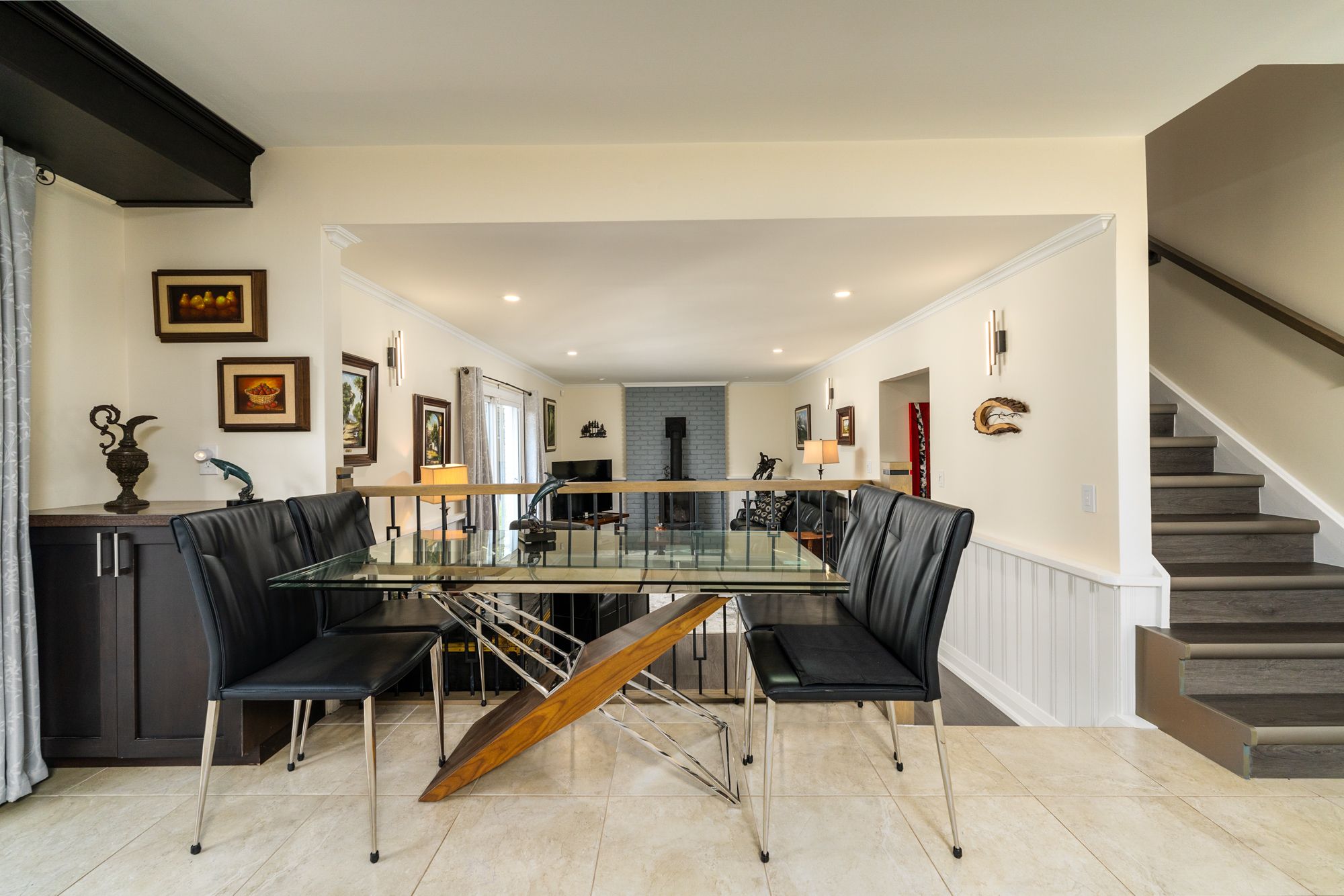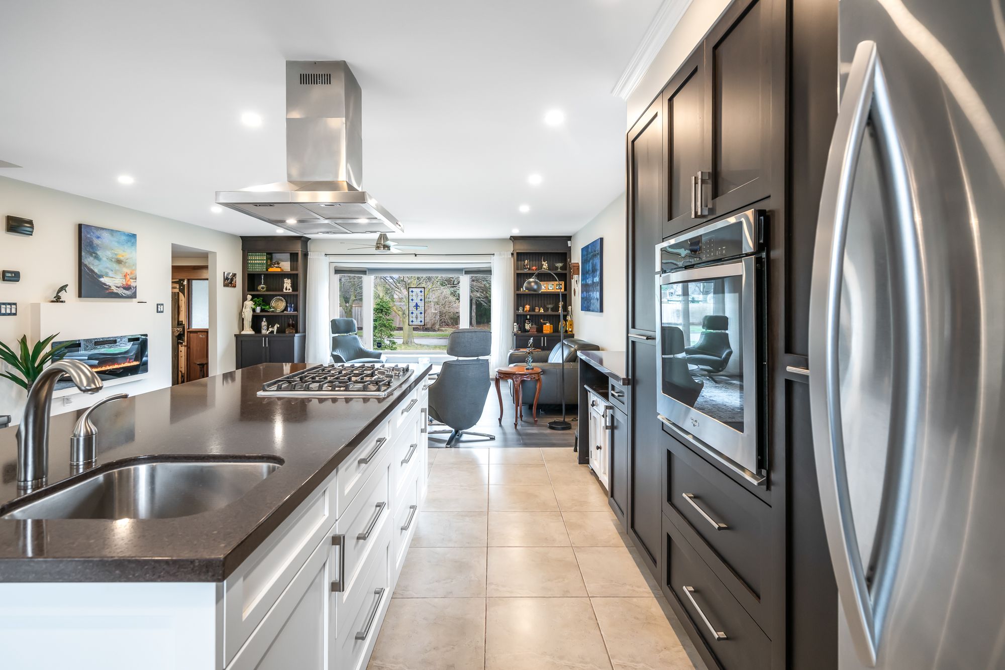 • Renovated kitchen with quartz countertops and a large island for entertaining.