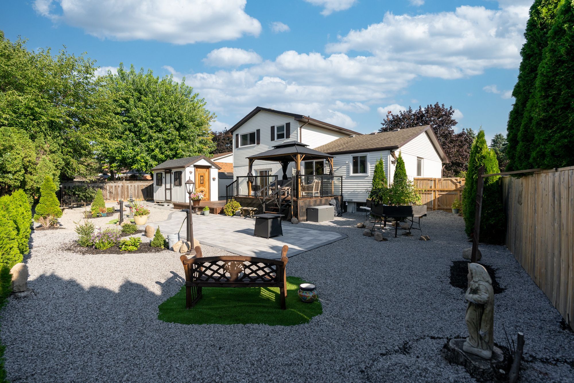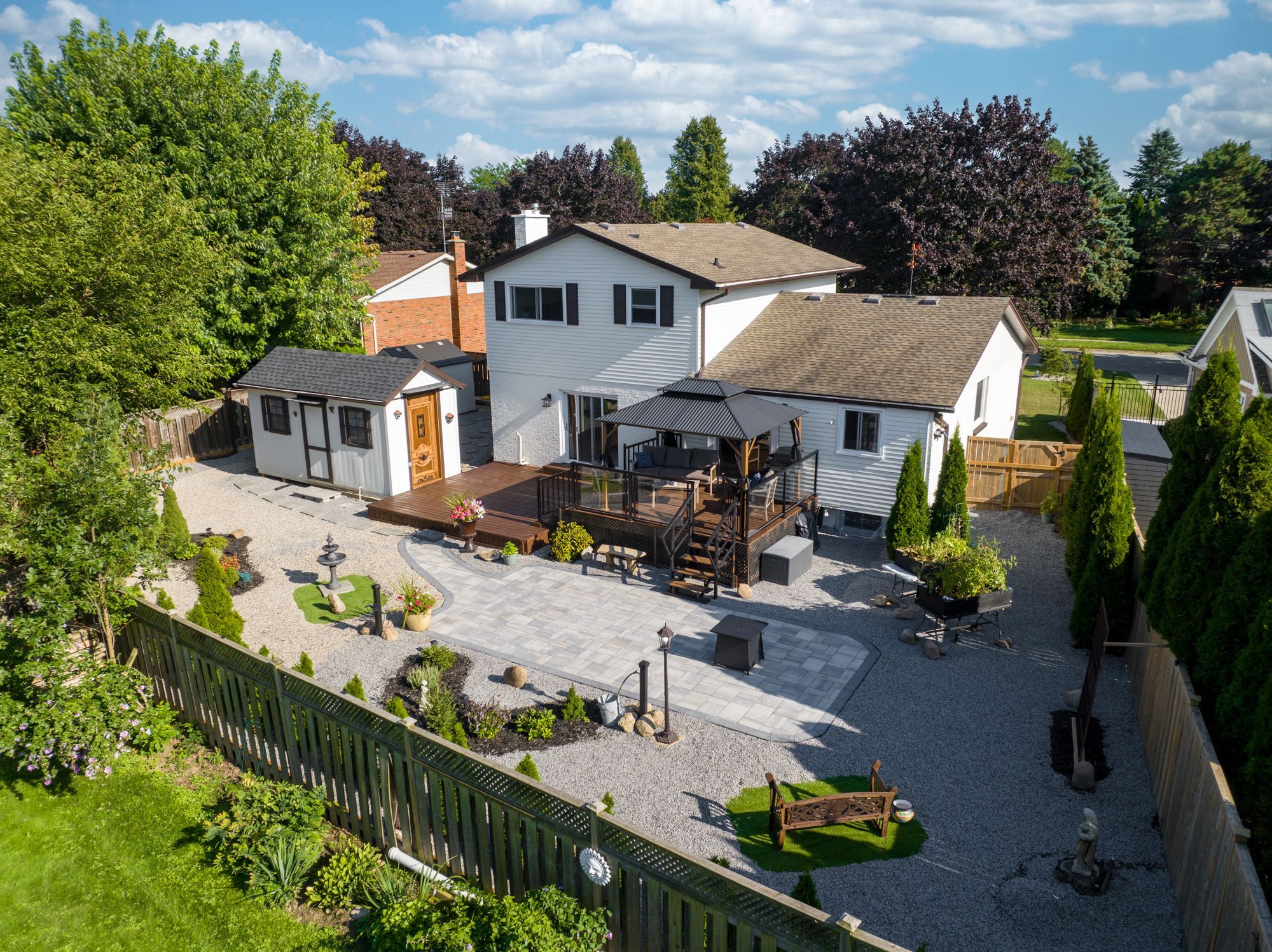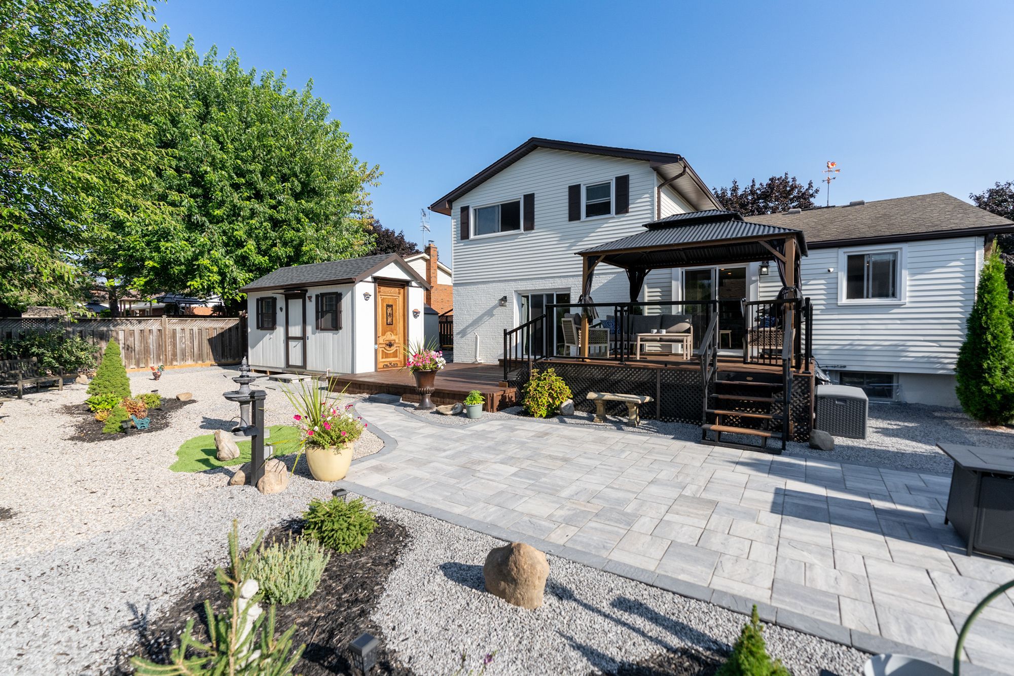 • Beautiful backyard with a deck, pergola, and low-maintenance courtyard.