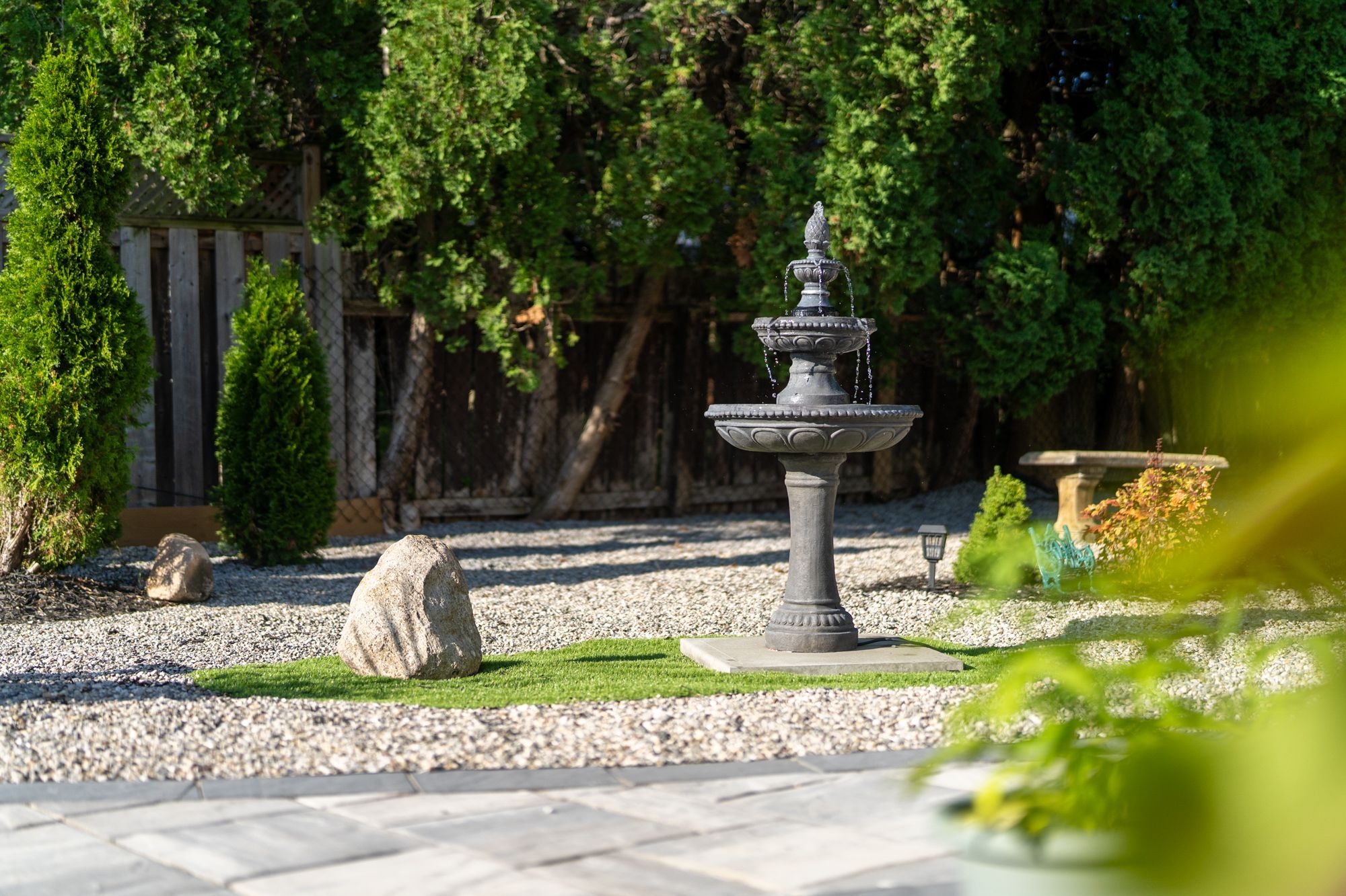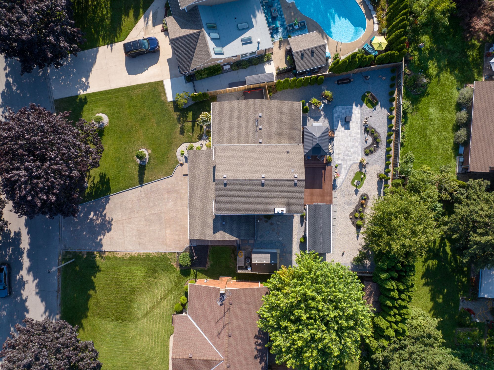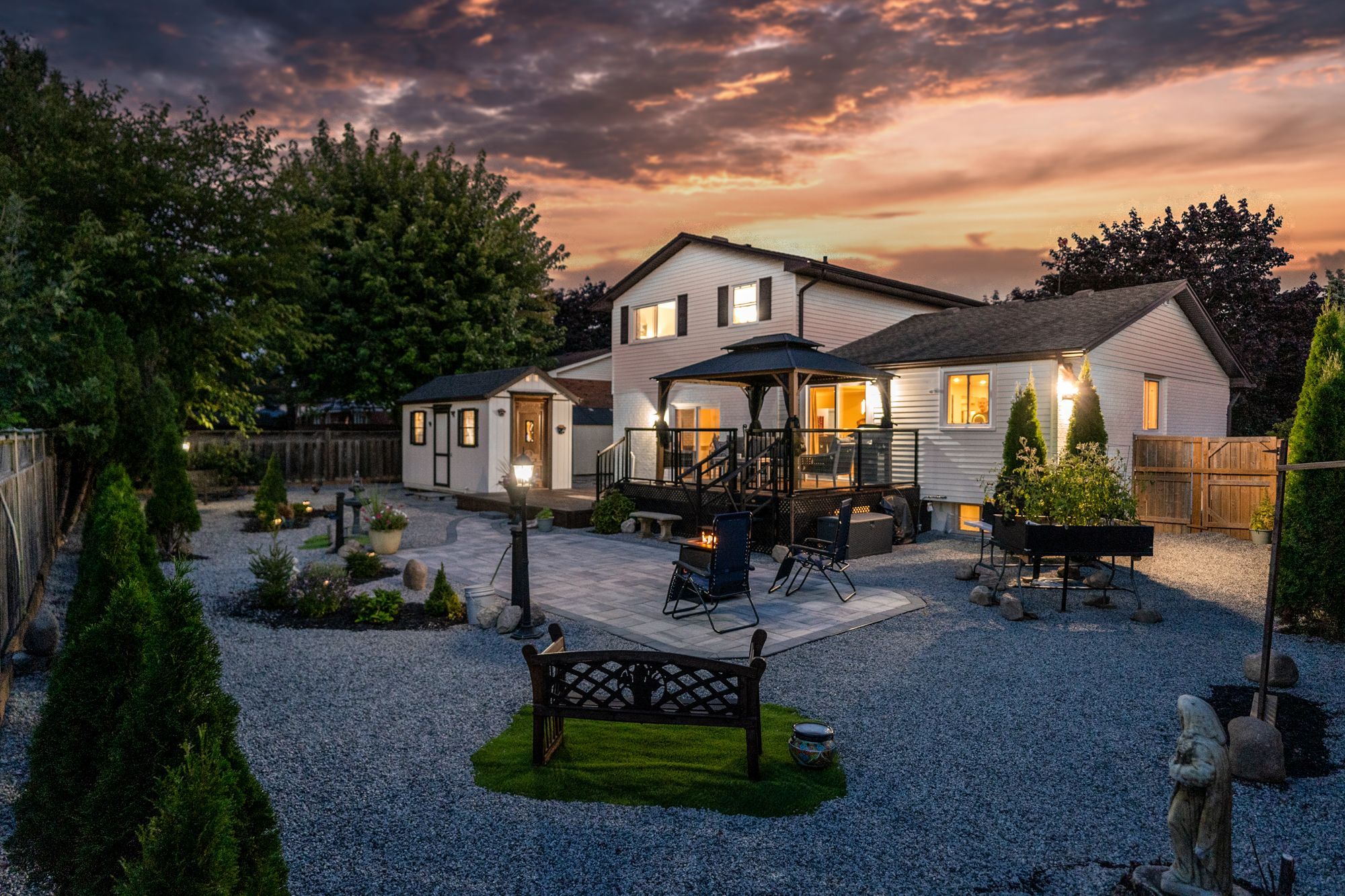 • Beautiful backyard with a deck, pergola, and low-maintenance courtyard.