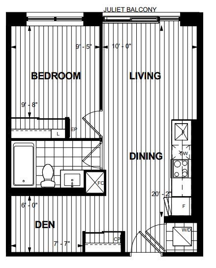 • Modern 1-bedroom plus den suite with a functional open-concept layout.
