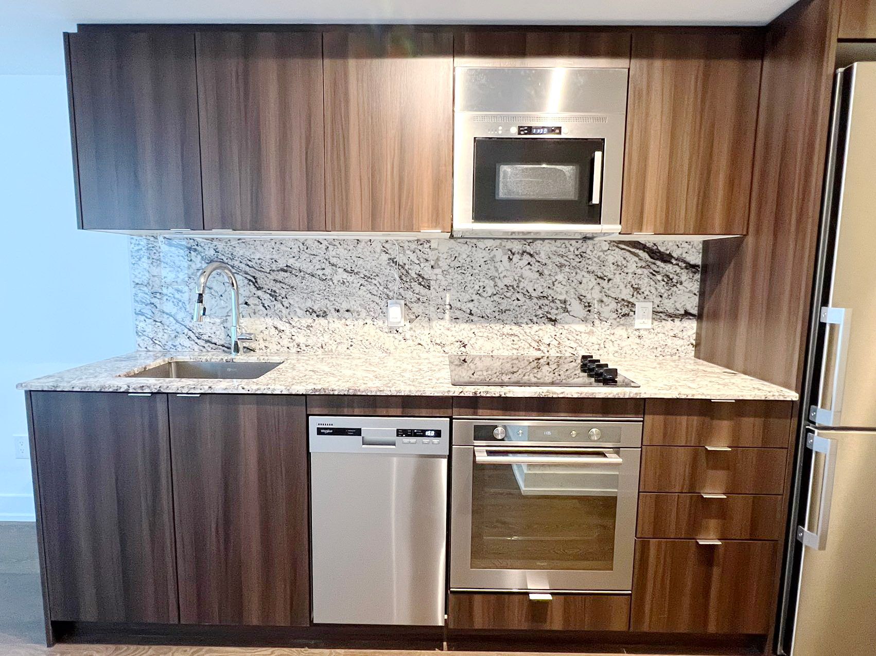 • Granite kitchen countertops and stainless steel appliances.